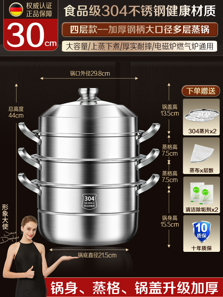 • [두꺼운 304 스테인리스] 찜기 30CM 4단