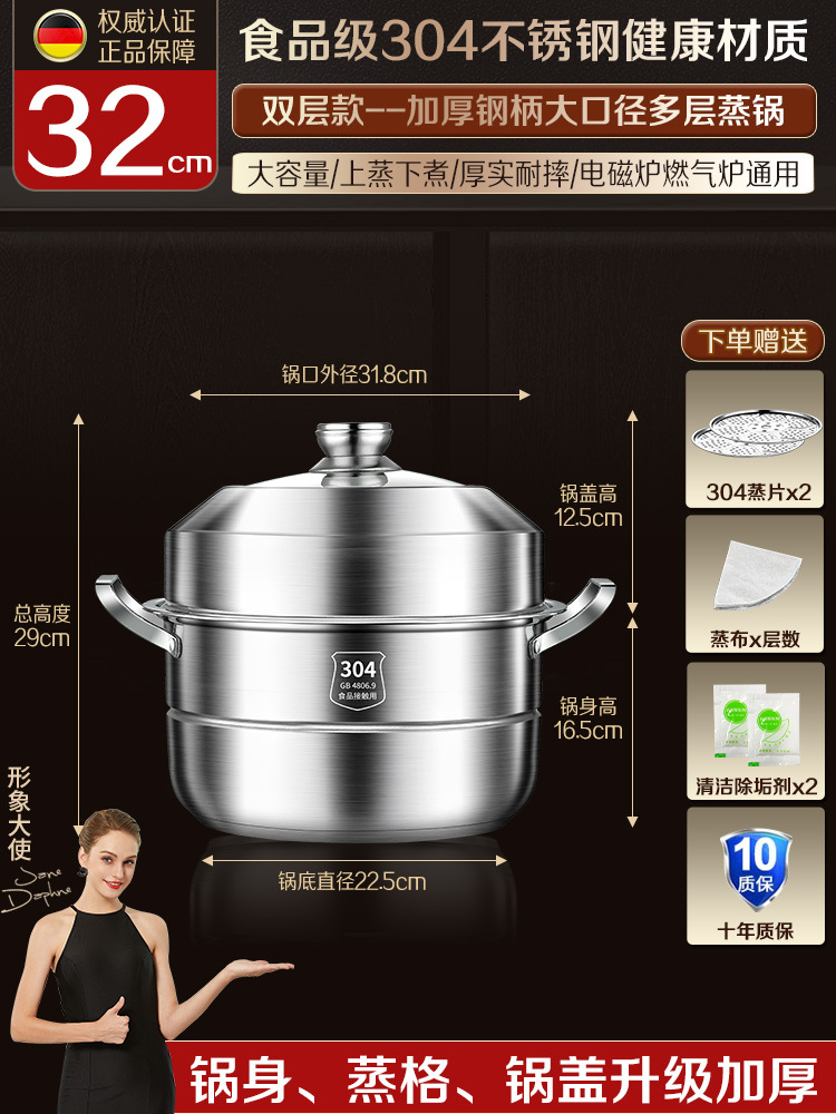 • [두꺼운 304 스테인리스] 찜기 32CM 더블 레이어