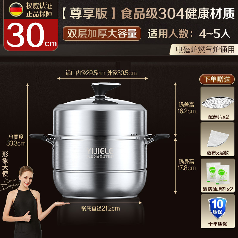 • [두꺼운 304 스테인리스] 찜기 30CM 더블 레이어
