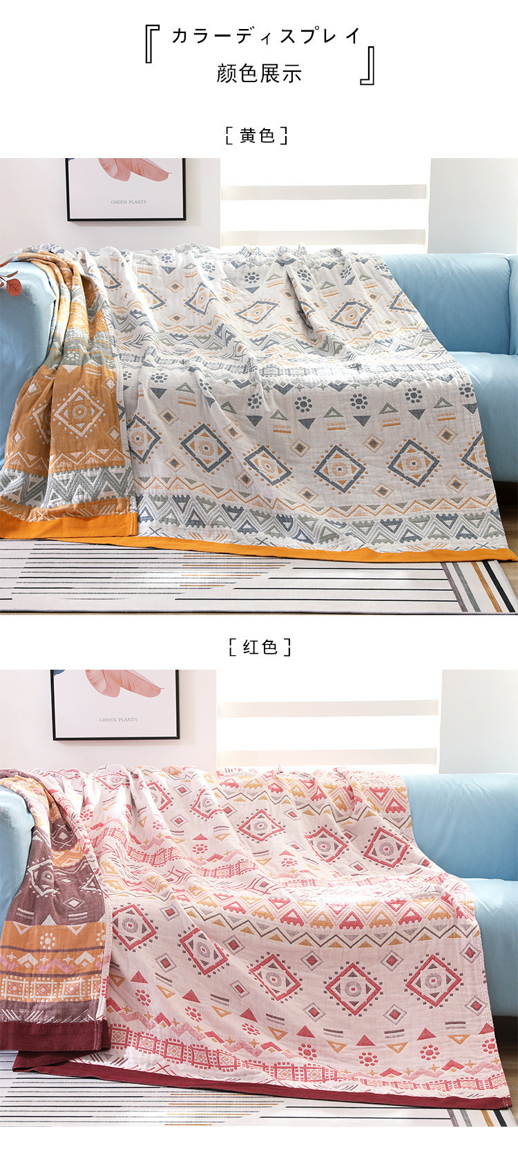 • 삼각형 보헤미안 타월 퀼트-옐로우