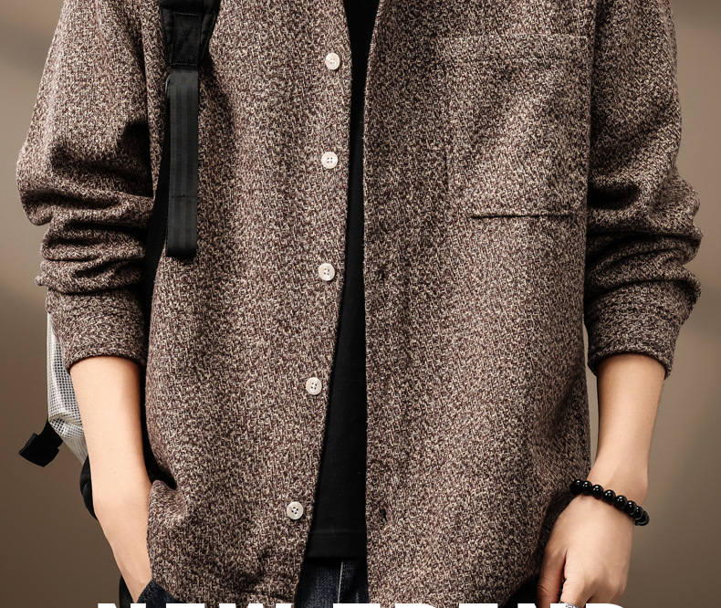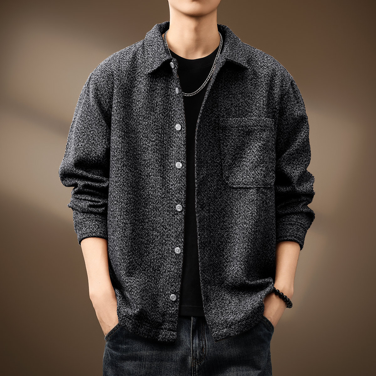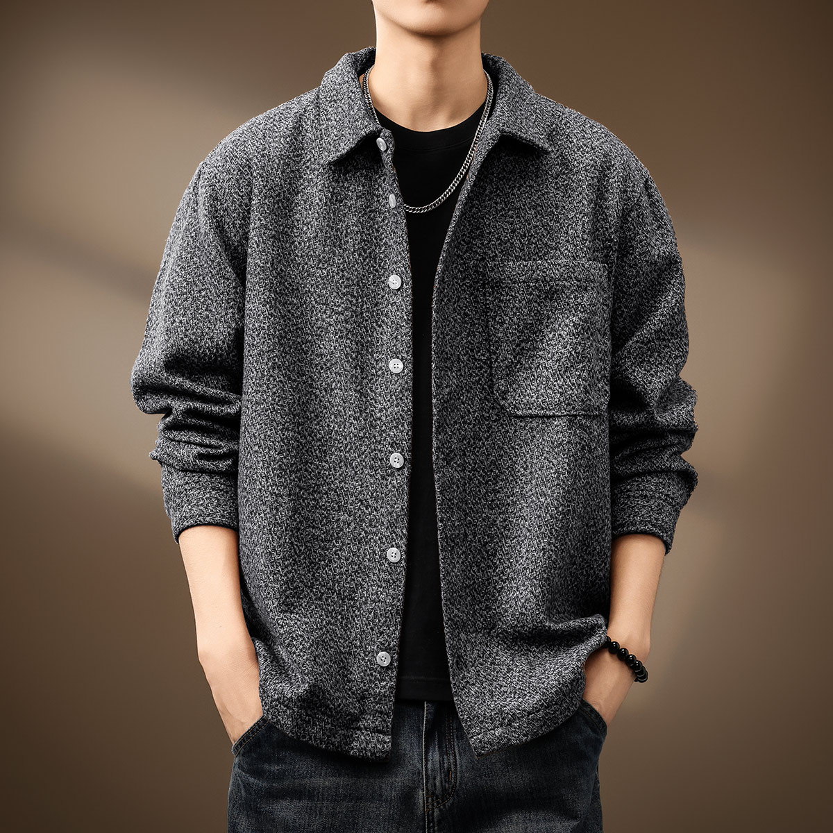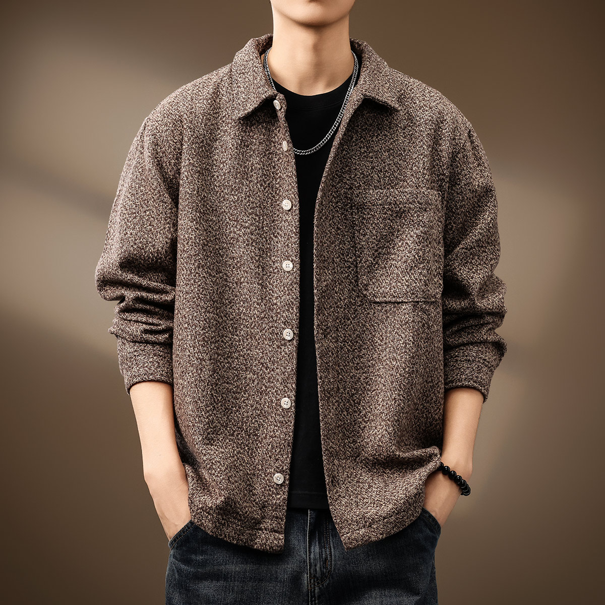 하이 엔드 아메리칸 스타일 레트로 자카드 셔츠 남자의 봄과 가을 새로운 캐주얼 루즈 하이 엔드 모직 재킷 셔츠