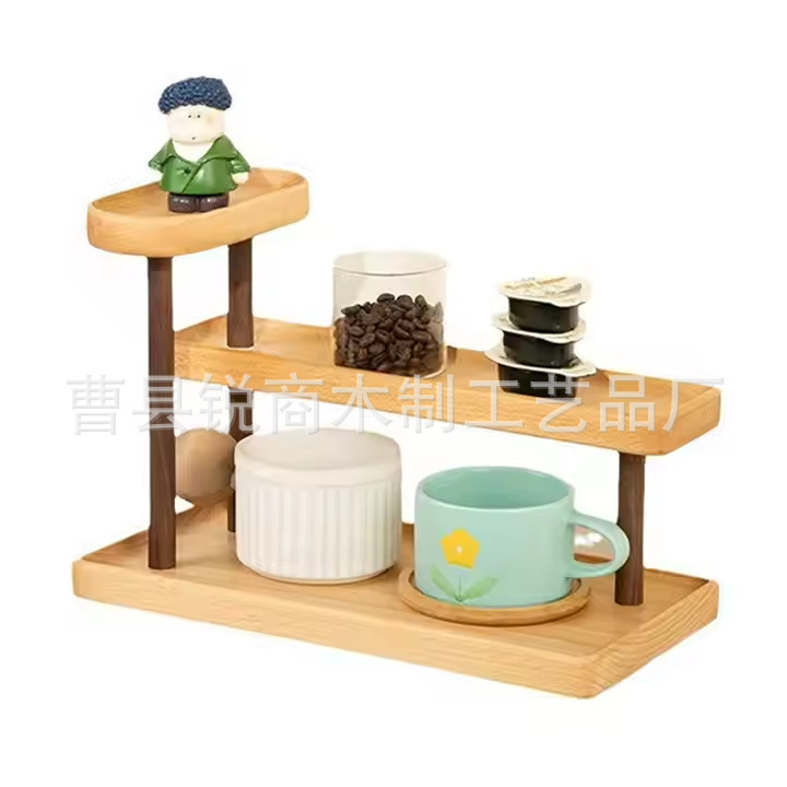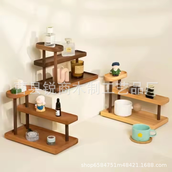 나무 디스플레이 랙 향수 스토리지 랙 데스크탑 테이블 화장품 핸드 헬드 티 세트 스토리지 랙 침실 커피 컵 랙스토어 가기