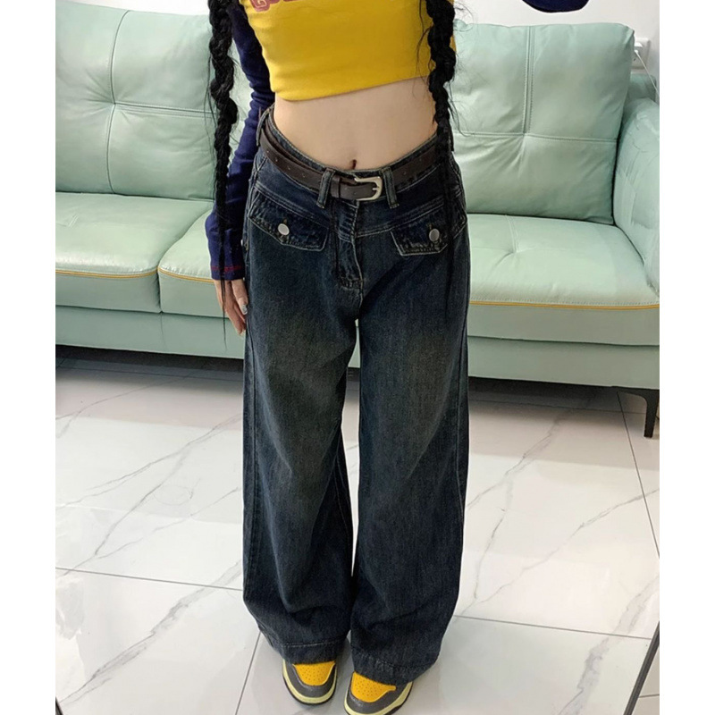 아메리칸 스타일 레트로 느슨한 청바지 디자인 센스 높은 허리 슬림 찾고 바지 봄 새로운 패션 올 매치 와이드 다리 바지스토어 가기