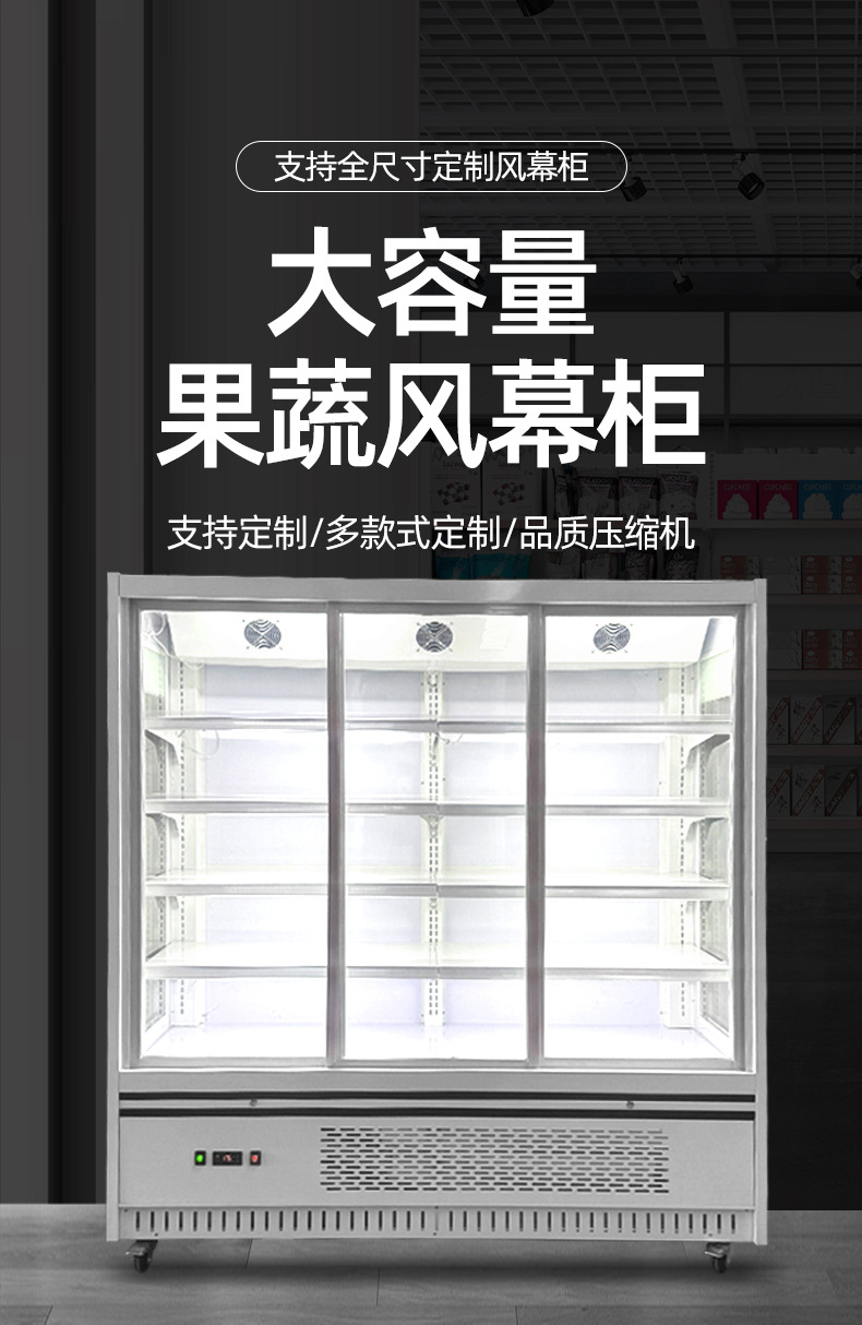 과일 및 야채 에어 커튼 캐비닛 상업용 편의점 슈퍼마켓 과일 및 야채 우유 음료 공냉식 신선 유지 냉장 디스플레이 캐비닛스토어 가기