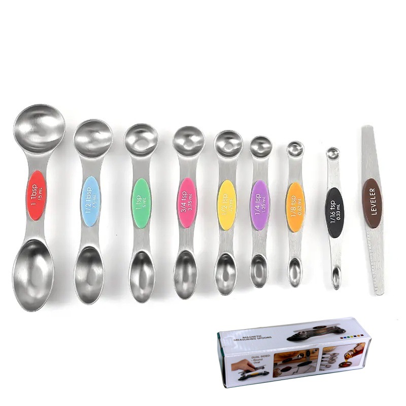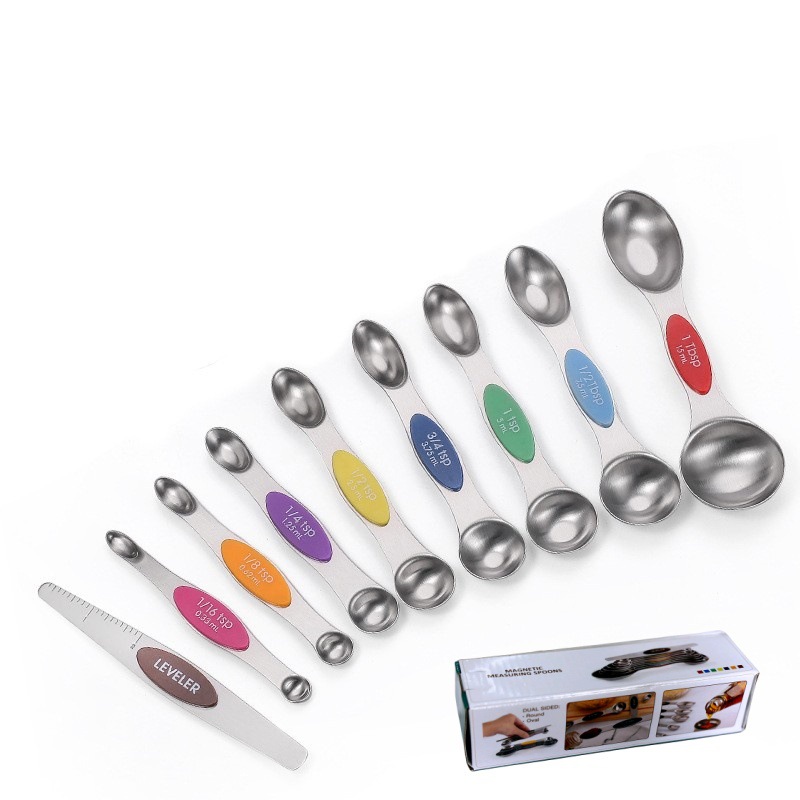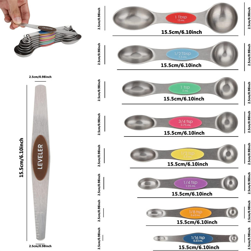 자석 스테인레스 스틸 양면 측정 스푼 9/10피스 베이킹 스케일 측정 스푼 커피 측정 스푼 측정 조미료 스푼 소금