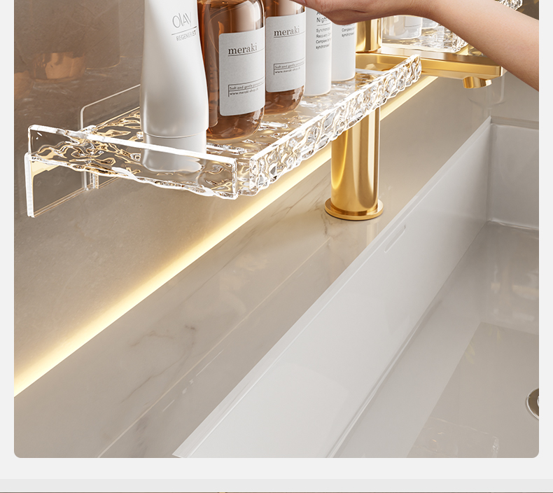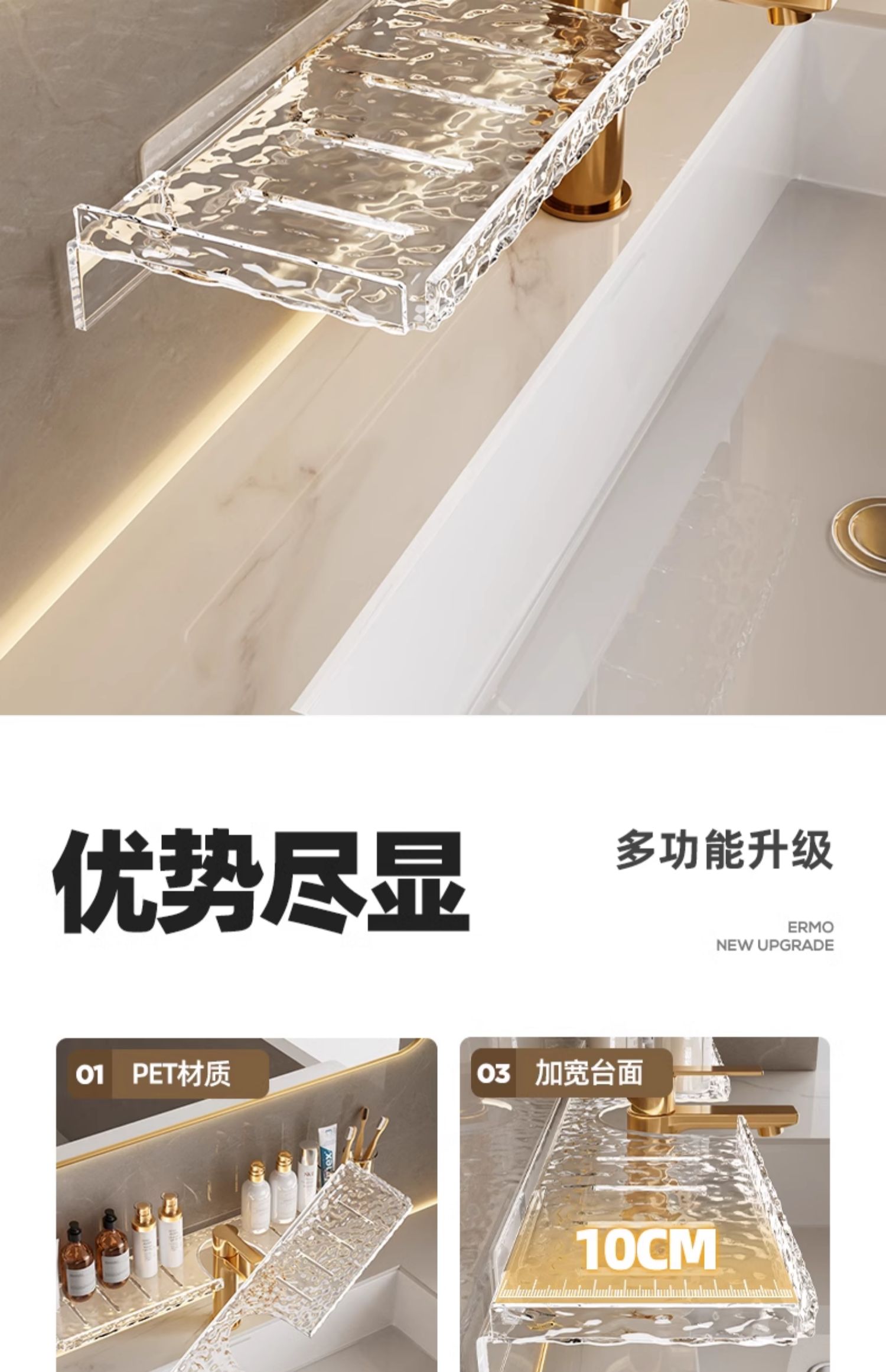 천공 세척 테이블 아크릴 비 저장 수도꼭지 저장 랙 욕실 화장실 세척 테이블 벽걸이