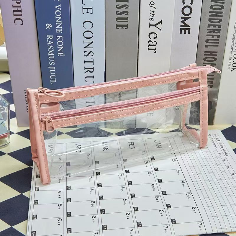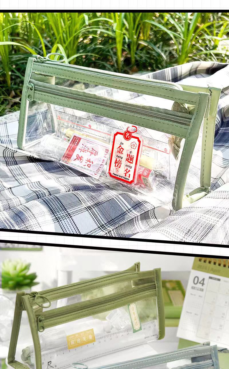 더블 레이어 투명 방수 삼각형 PVC 연필 가방 고등학교 입학 시험 대학 입학 시험 초등 학생 시험 연필 가방 간단한 편지지 보관 가방