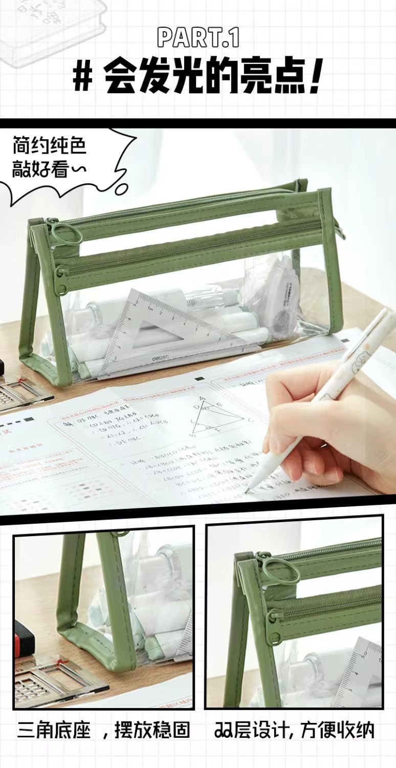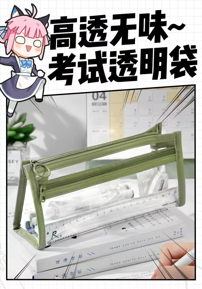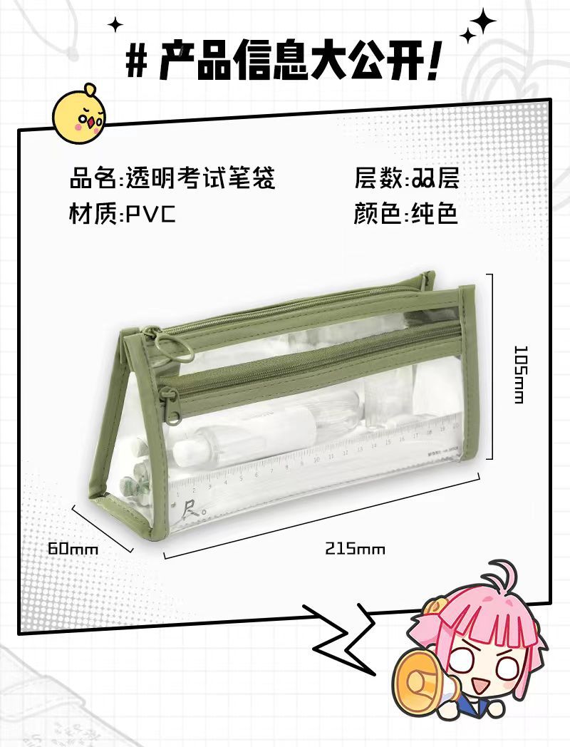 더블 레이어 투명 방수 삼각형 PVC 연필 가방 고등학교 입학 시험 대학 입학 시험 초등 학생 시험 연필 가방 간단한 편지지 보관 가방스토어 가기