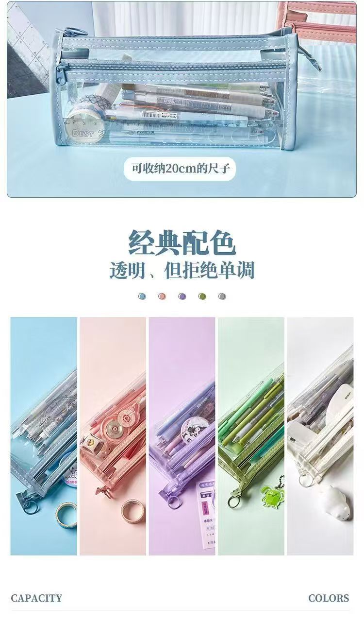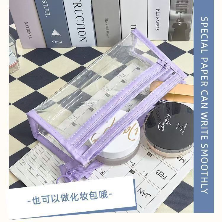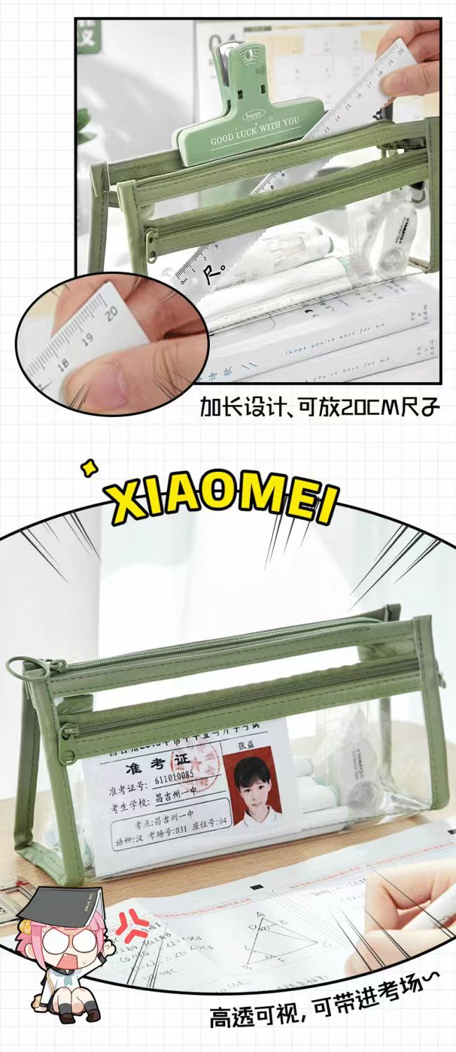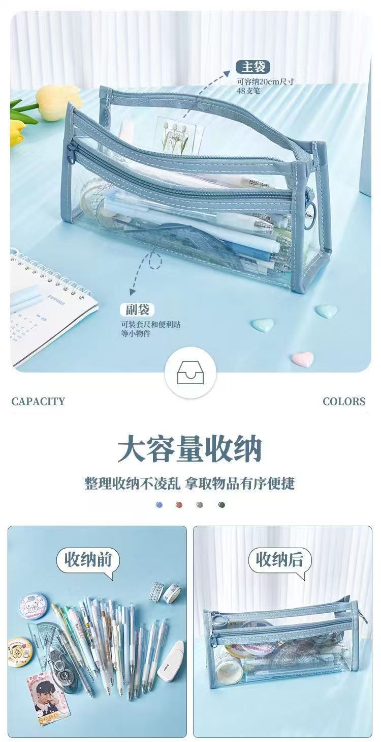 더블 레이어 투명 방수 삼각형 PVC 연필 가방 고등학교 입학 시험 대학 입학 시험 초등 학생 시험 연필 가방 간단한 편지지 보관 가방스토어 가기