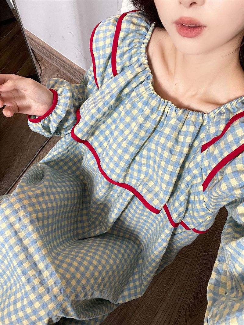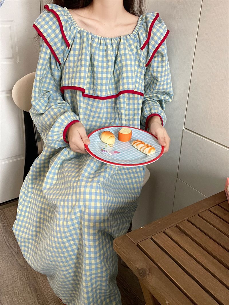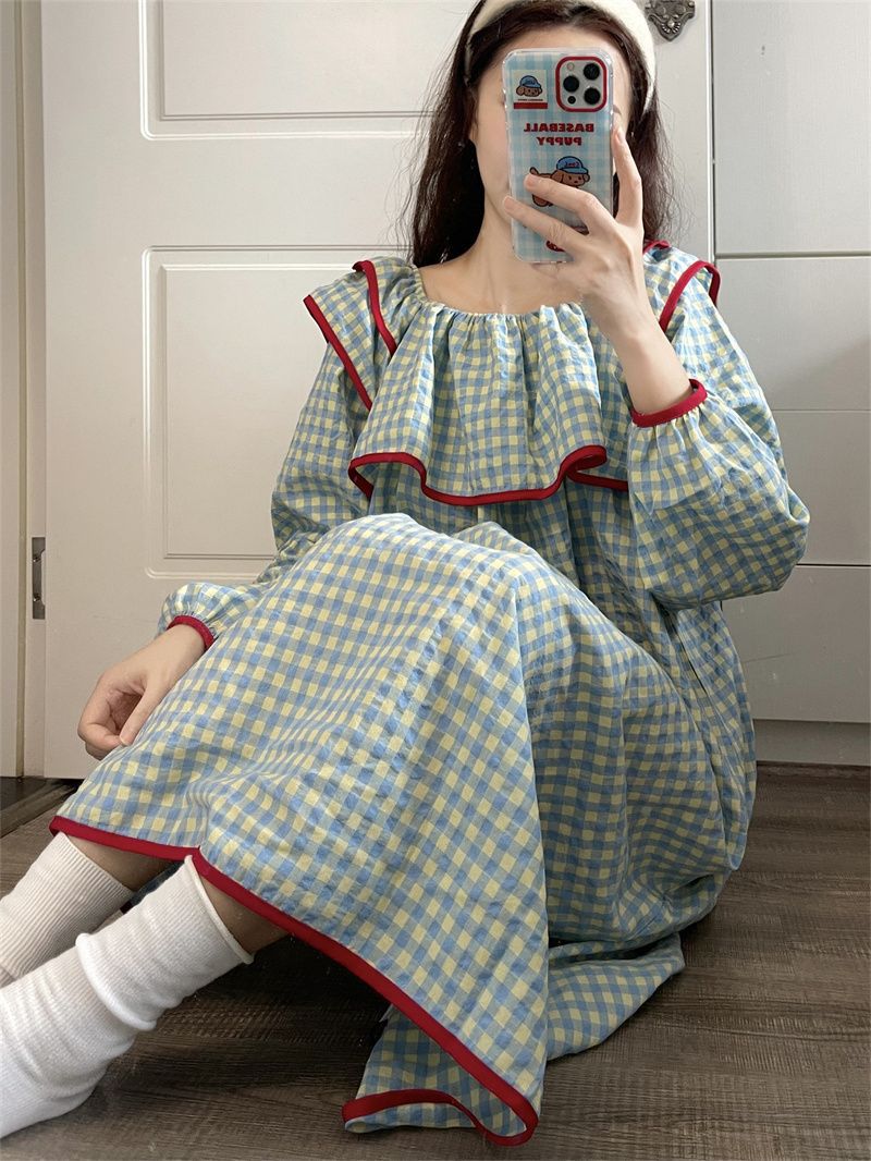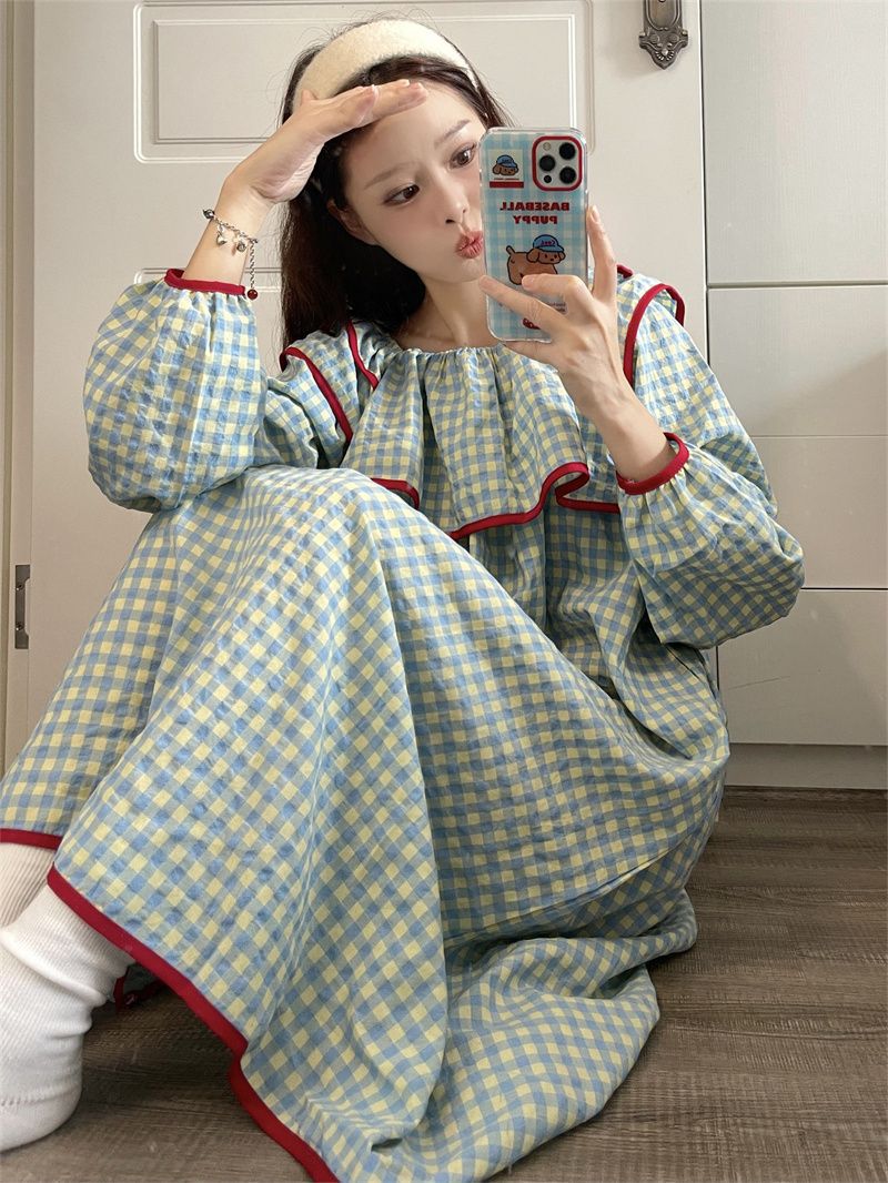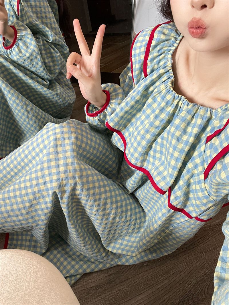 봄과 가을 새로운 잠옷 여성 인터넷 연예인 Ins 스타일 느슨한 긴 소매 레드 에지 옐로우 랭지 한국식 의류스토어 가기