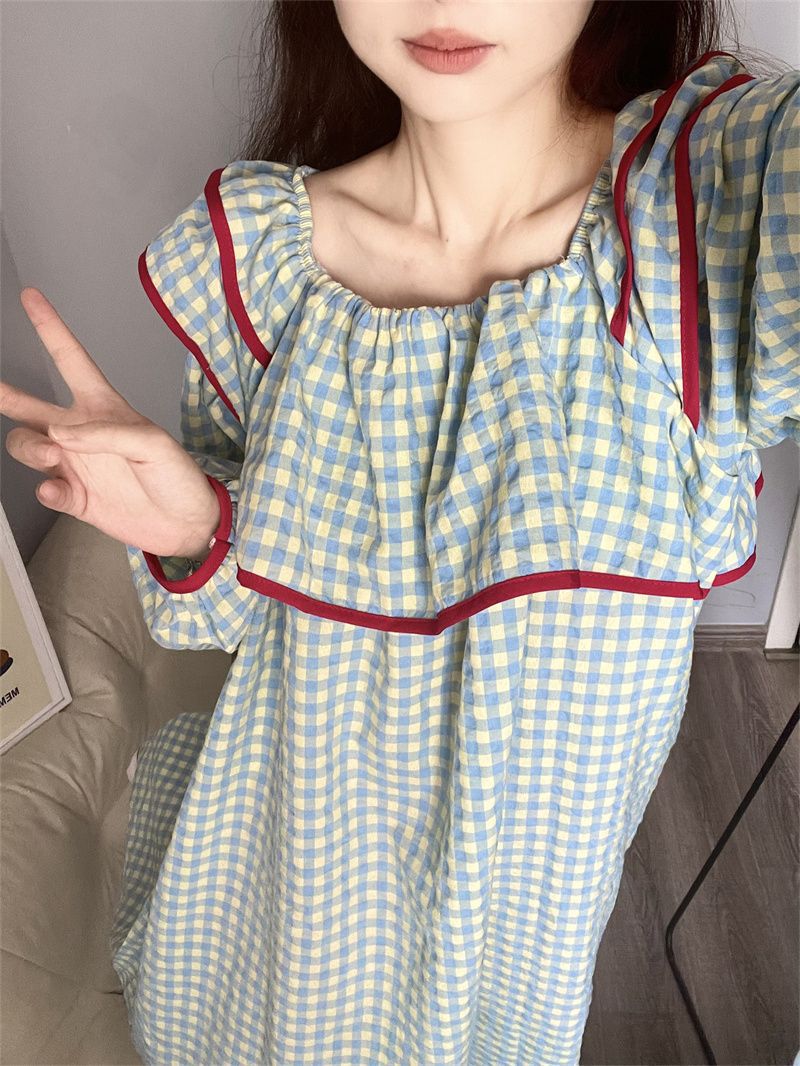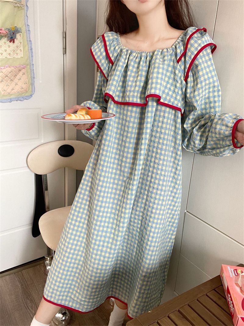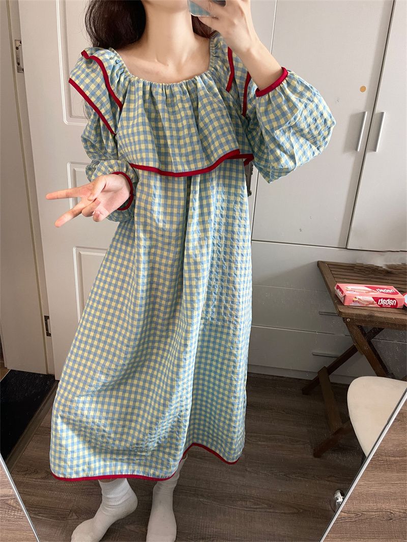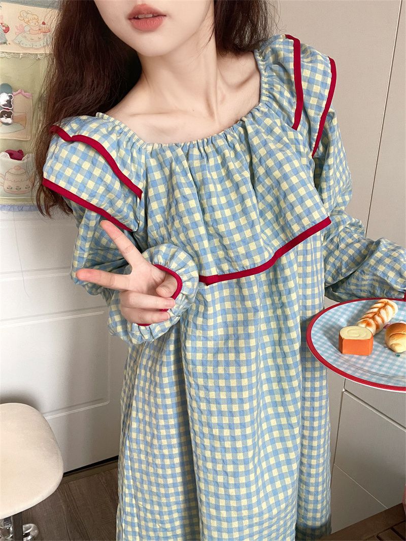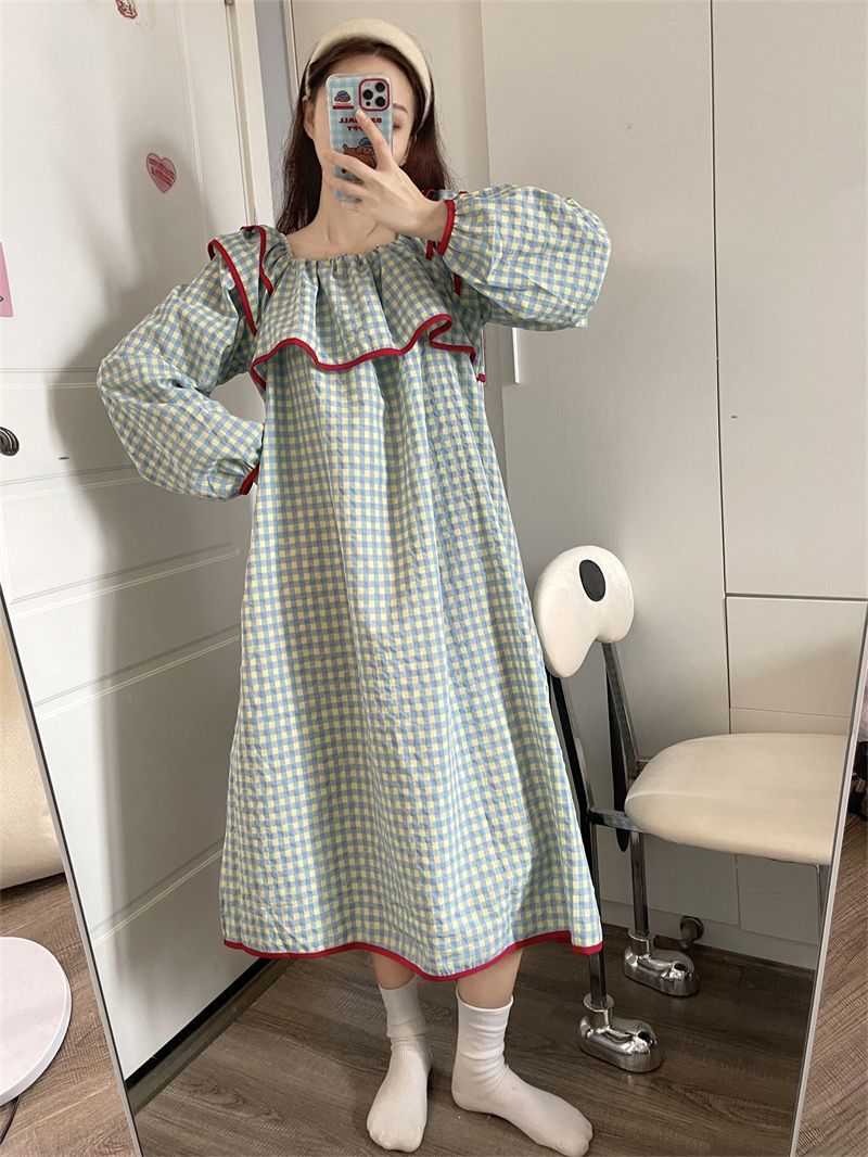 봄과 가을 새로운 잠옷 여성 인터넷 연예인 Ins 스타일 느슨한 긴 소매 레드 에지 옐로우 랭지 한국식 의류스토어 가기