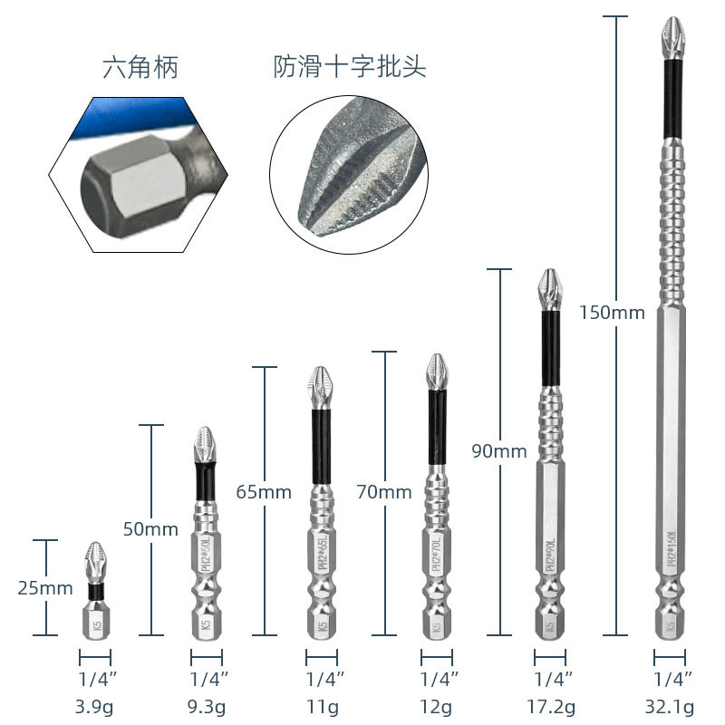 크로스보더 미끄럼 방지 충격 방지 크로스 드라이버 비트, 고경도 비트, 미끄럼 방지 전동 드라이버 비트, 자석 세트