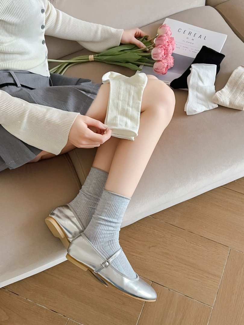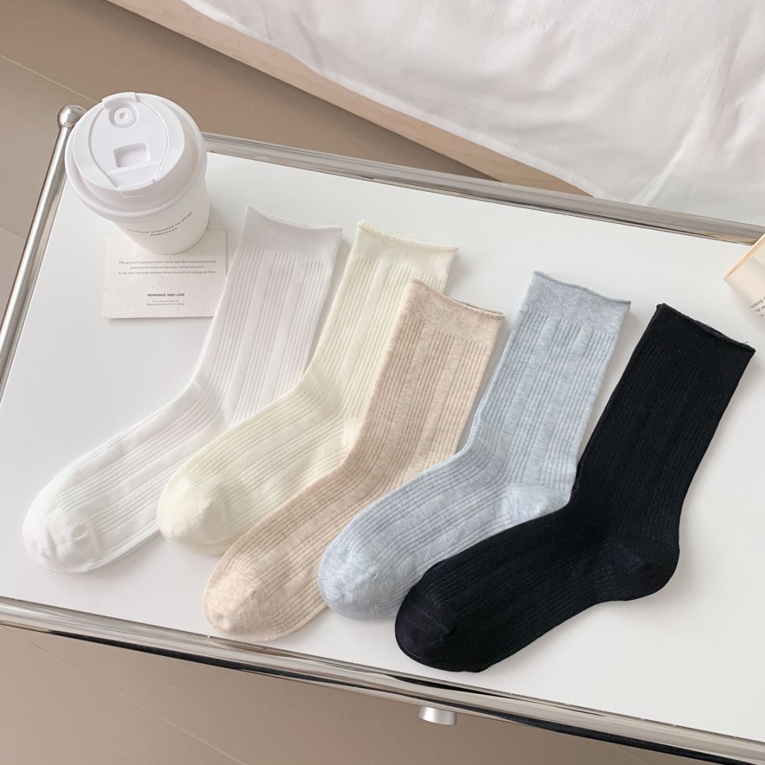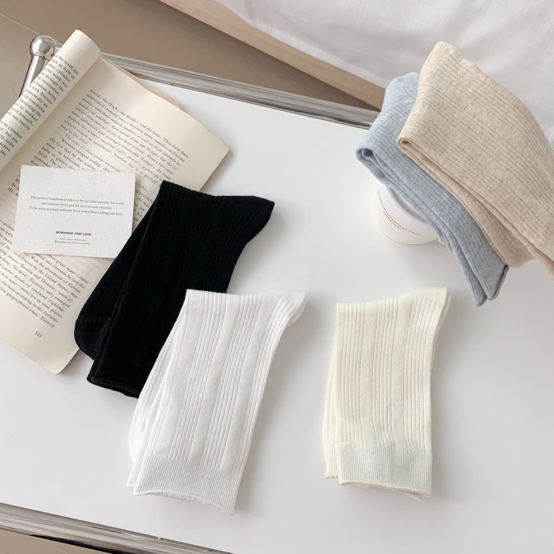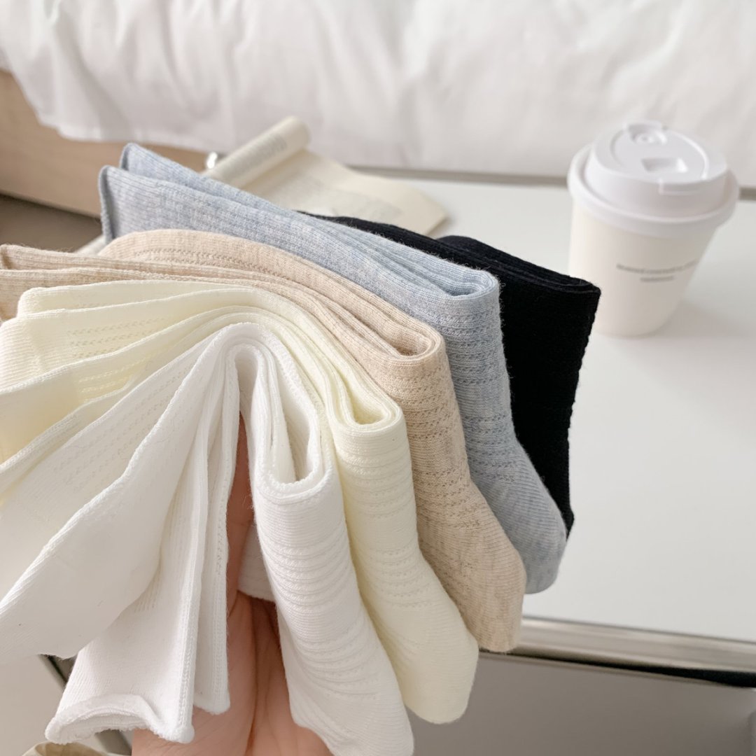 트렌디 한 봄과 여름 통기성 경량 미드 튜브 여성용 양말 여성용 솔리드 컬러 더미 양말 여성용 Ins Mesh 새로운 수직 단순스토어 가기