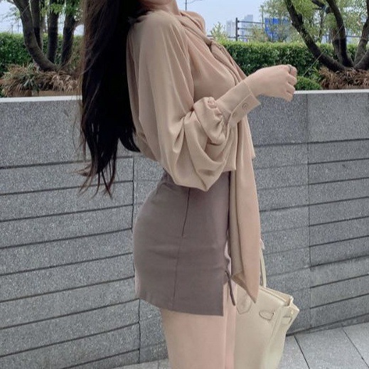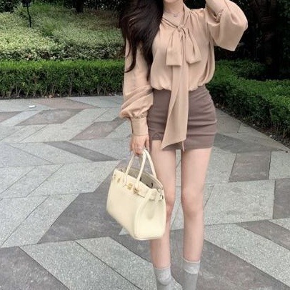 • 밀크티 컬러 셔츠 + 커피 컬러 스커트