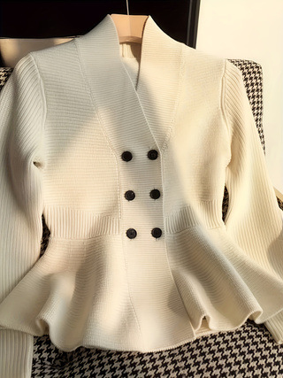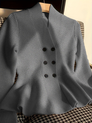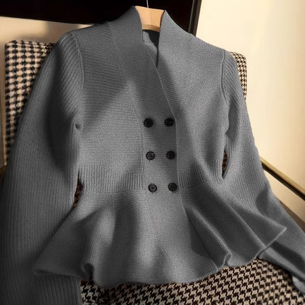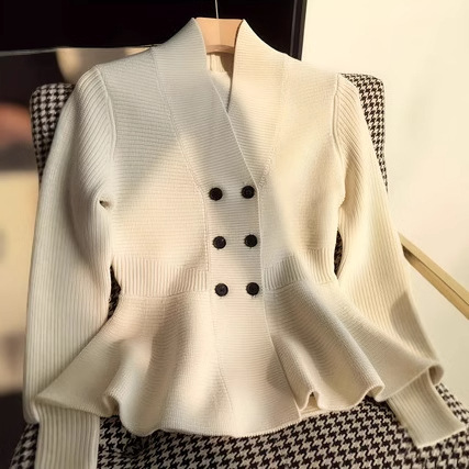 플러스 사이즈 샤넬 스타일 독특한 Chic 최고 가을 하이 엔드 슈퍼 잘 생긴 V 넥 게으른 통통녀 여성용 니트 스웨터스토어 가기