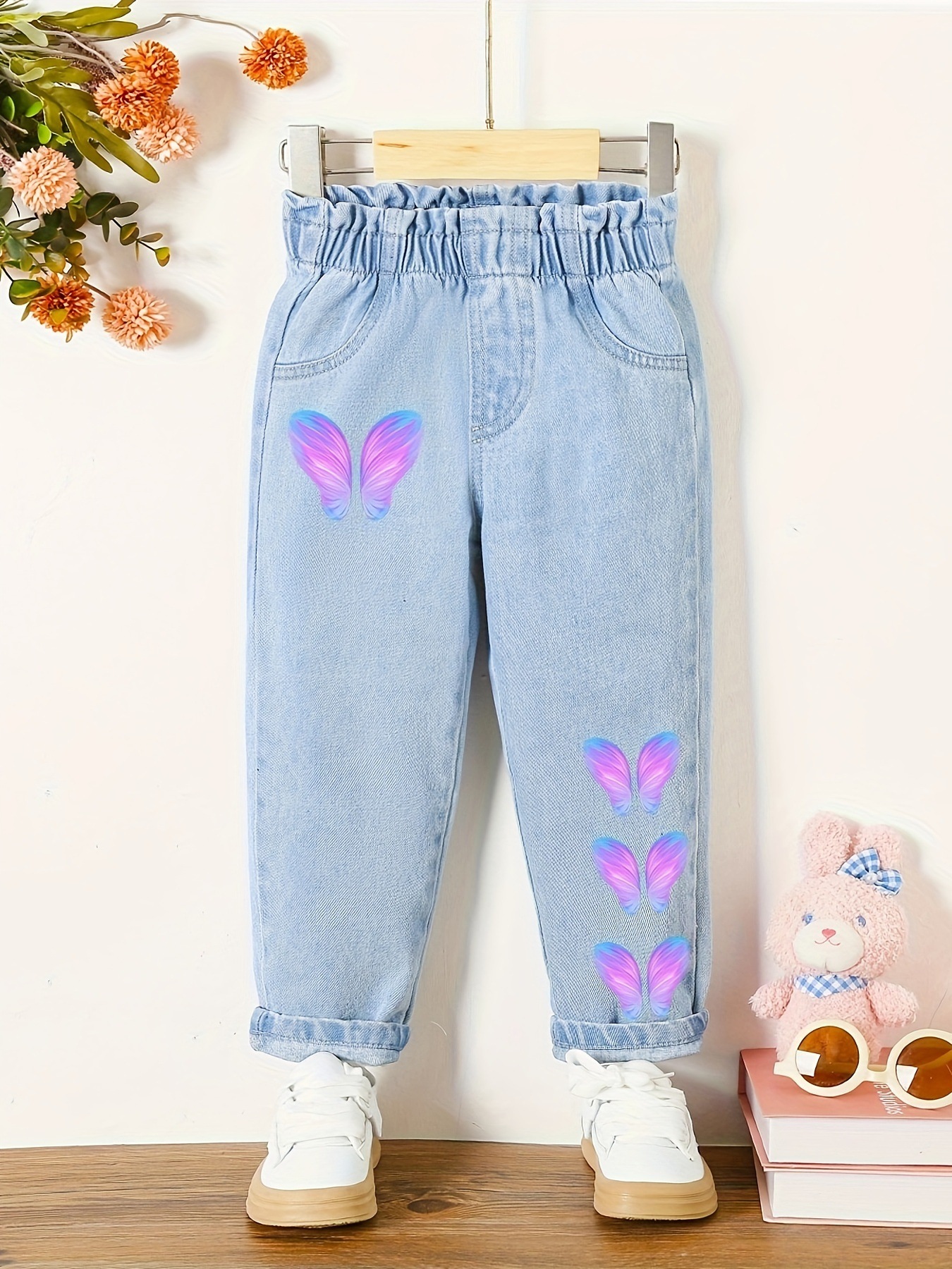 2025 새로운 밝은 색 어린이 씻은 청바지 중소 어린이 캐주얼 바지 유행 바지 여자 청바지스토어 가기