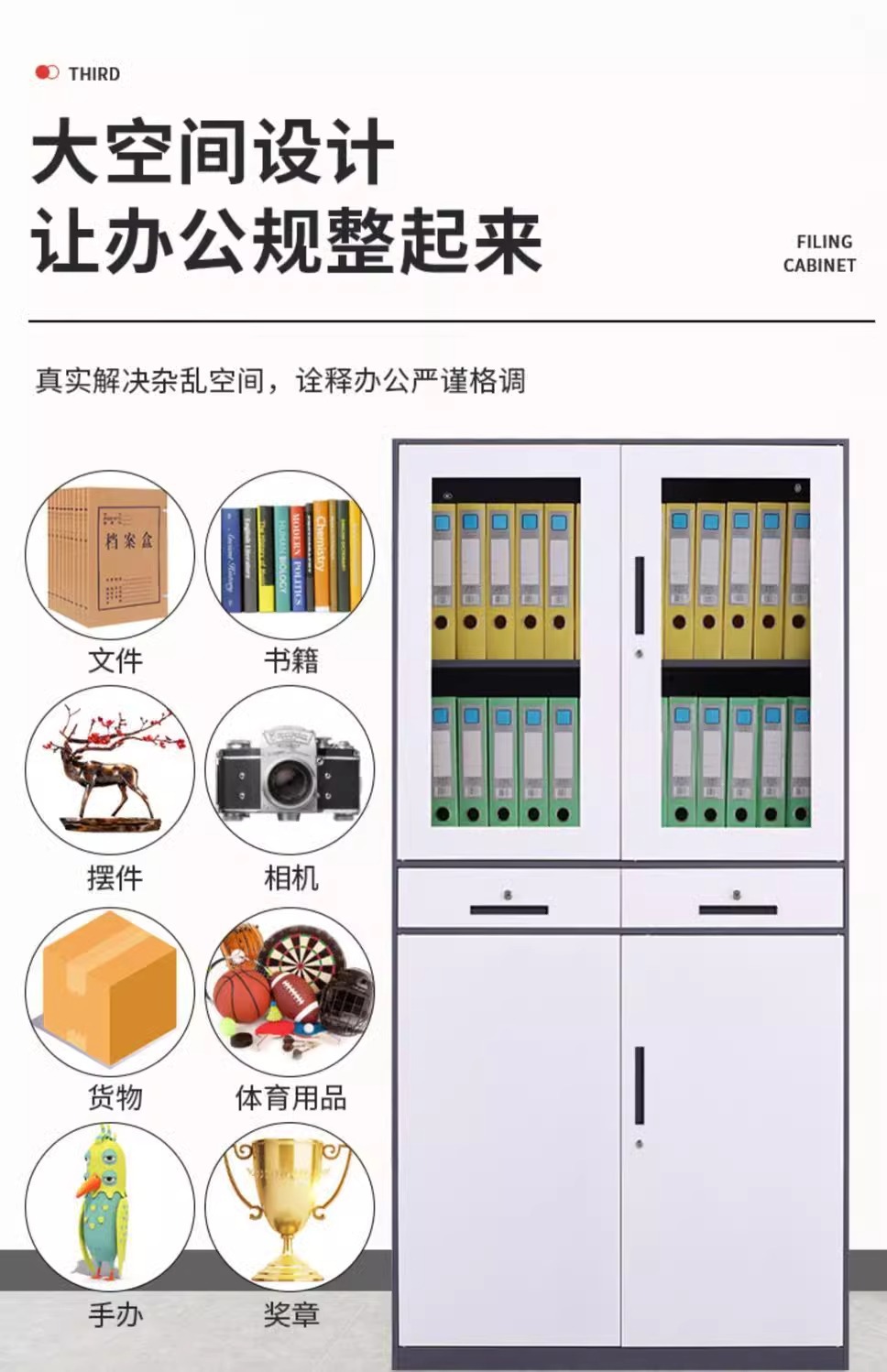 사무실 좁은면 문서 캐비닛 철 파일 캐비닛 유리 책장 서랍 낮은 캐비닛 멀티 도어 스틸 사물함