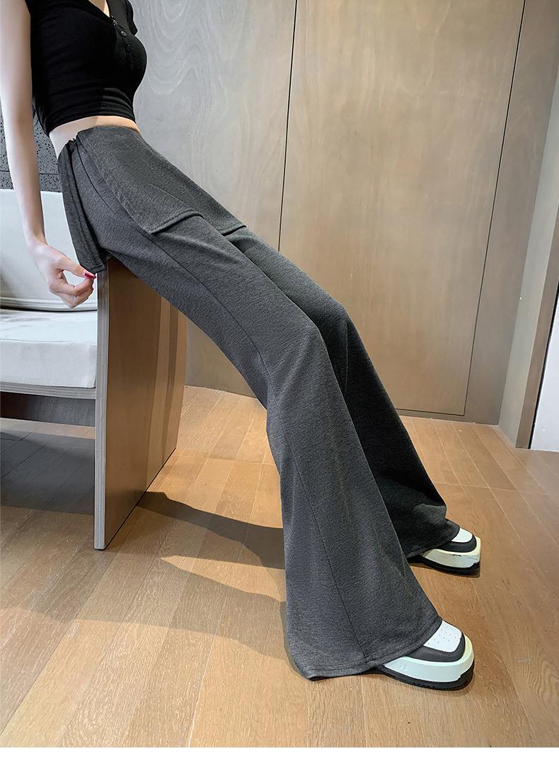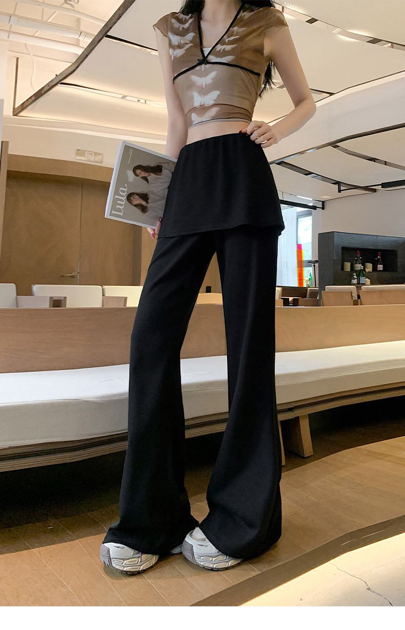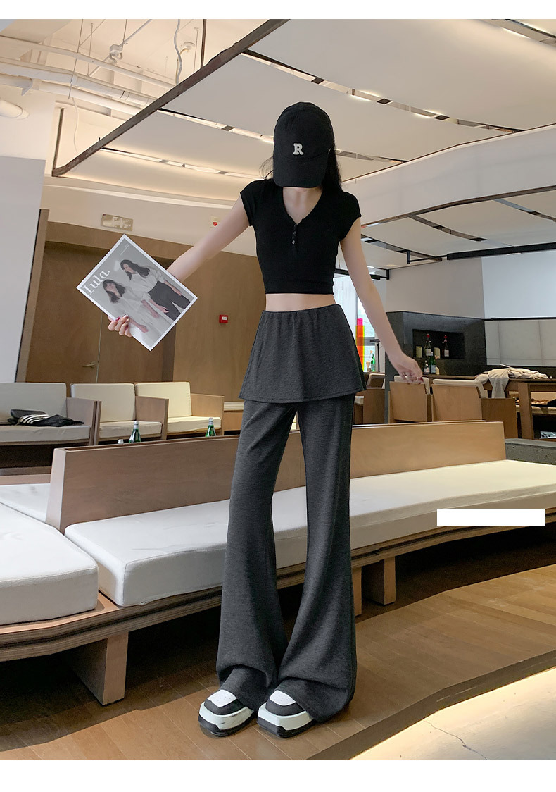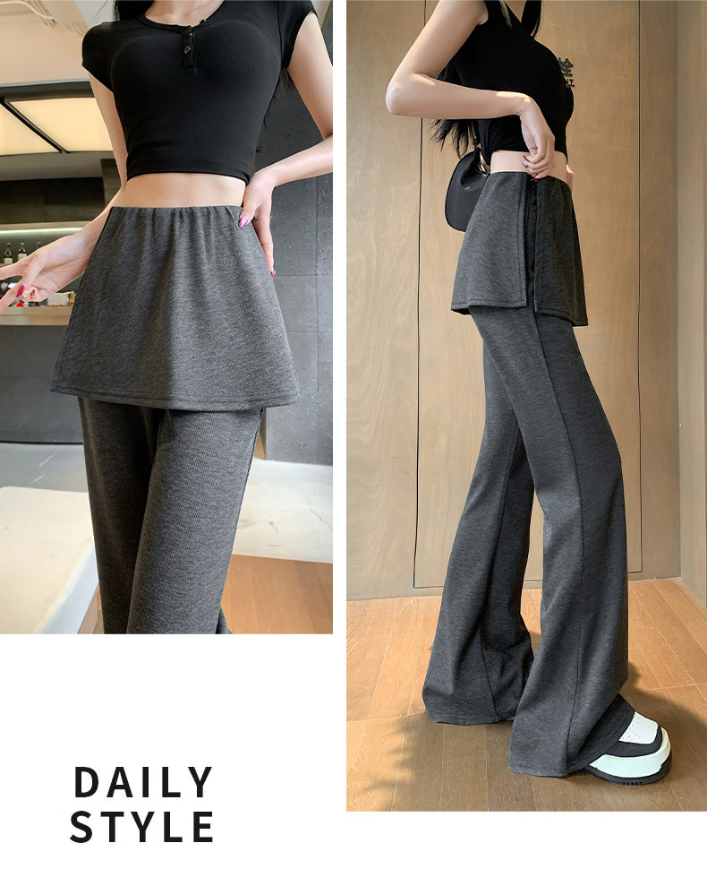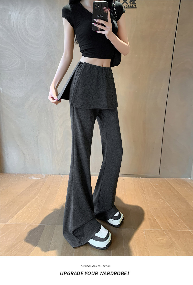 리얼 샷 달콤한 쿨 스파이스 소녀 캐주얼 바지 디자인 센스 그레이 가짜 투피스 혼 바지 여성용 봄 와이드 다리 바지스토어 가기