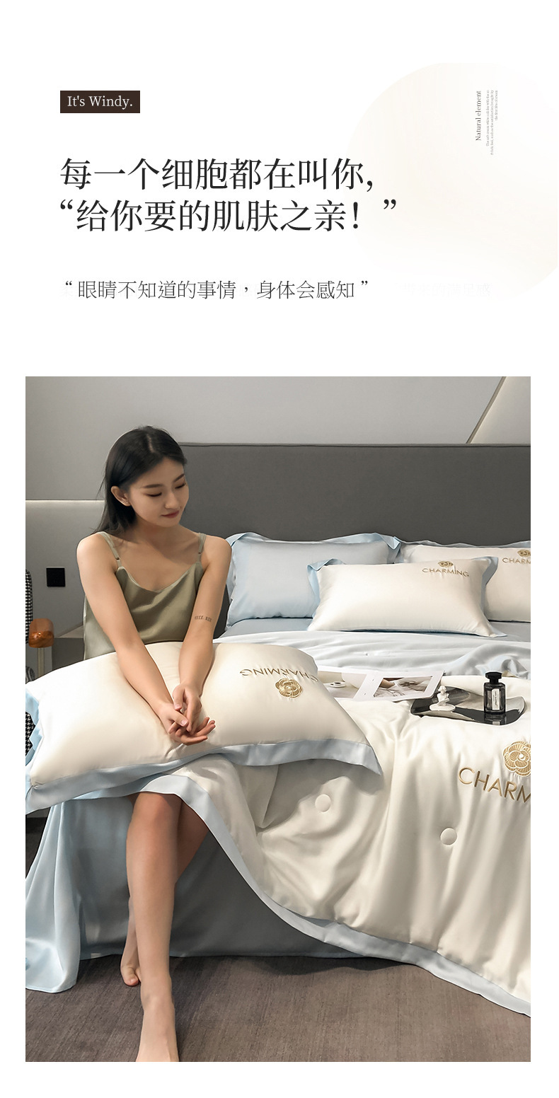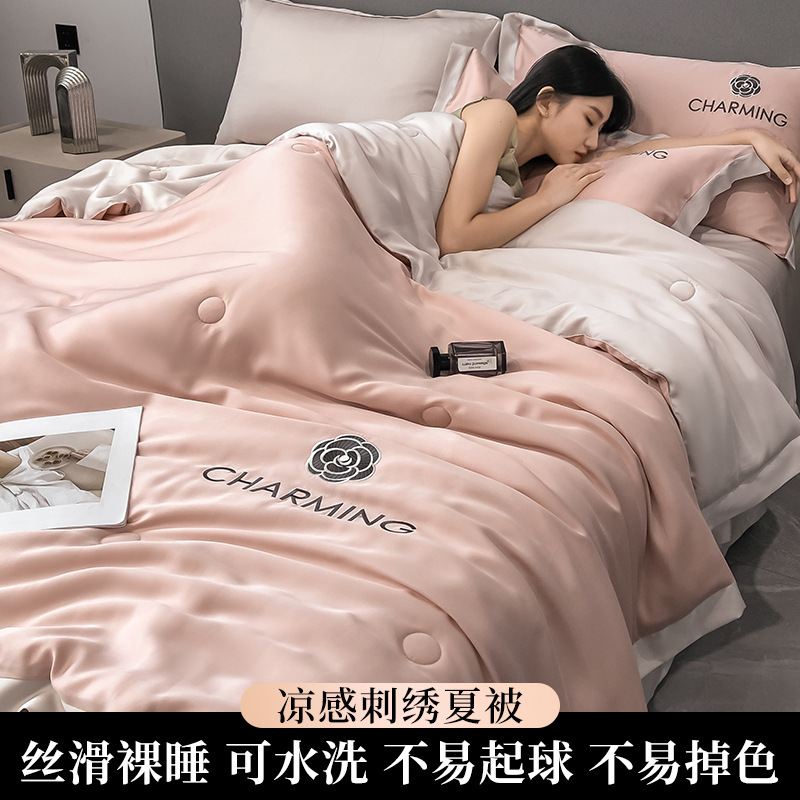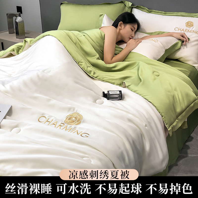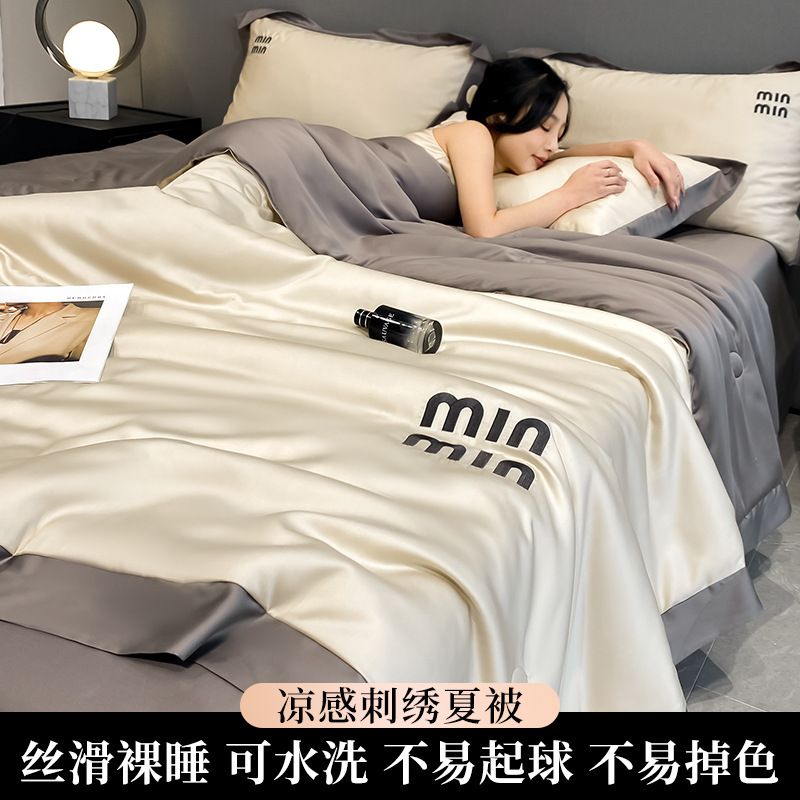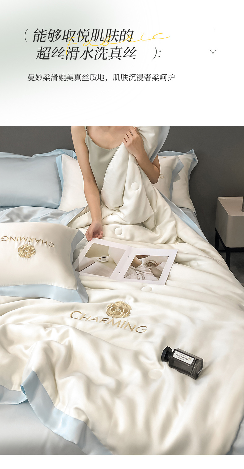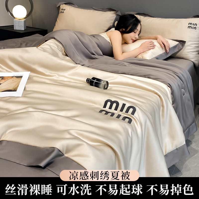 여름 시원한 이불 클래스 모성 및 유아 학년 여름 얼음 실크 에어컨 이불 기계 빨 수있는 4 피스 실크 선물 여름 이불 도매스토어 가기
