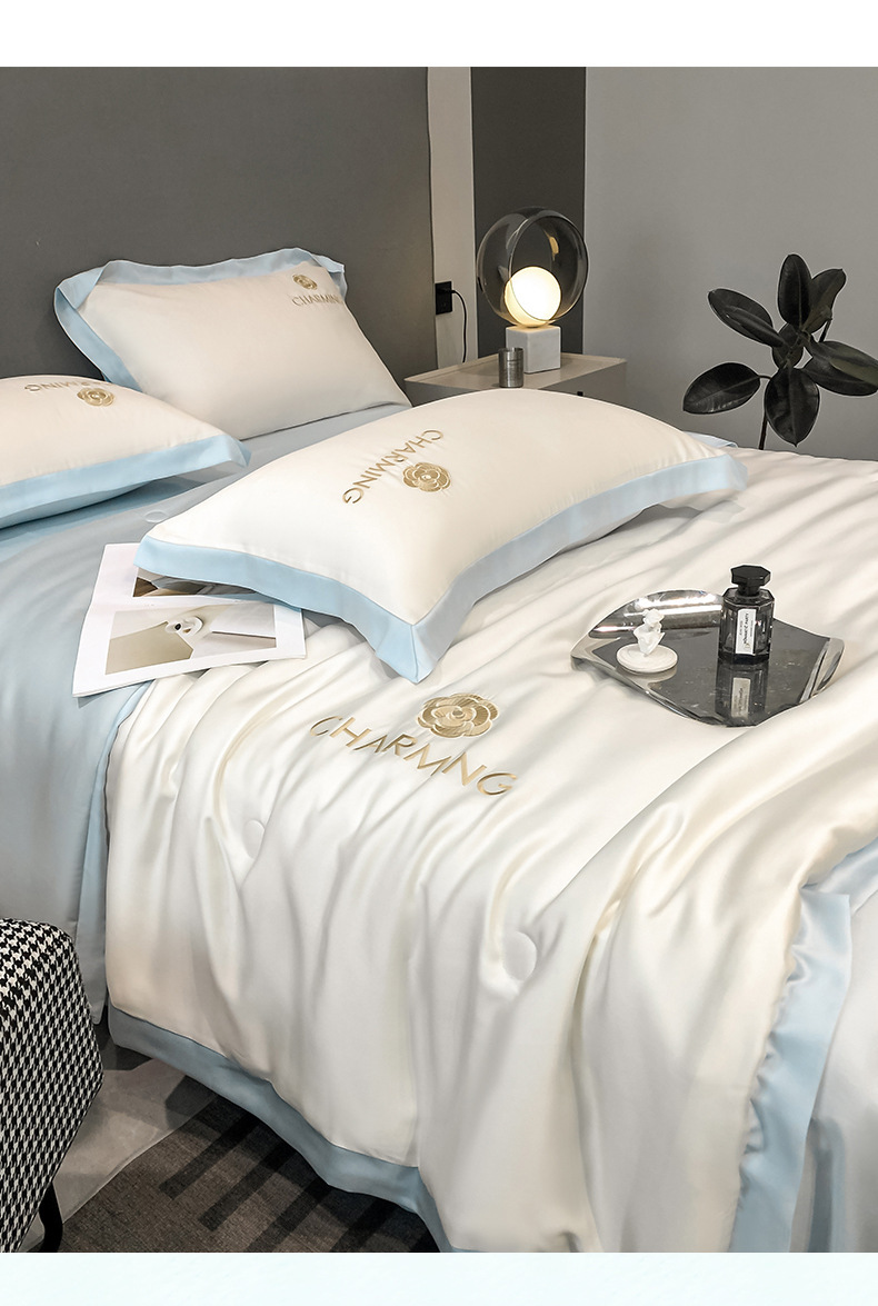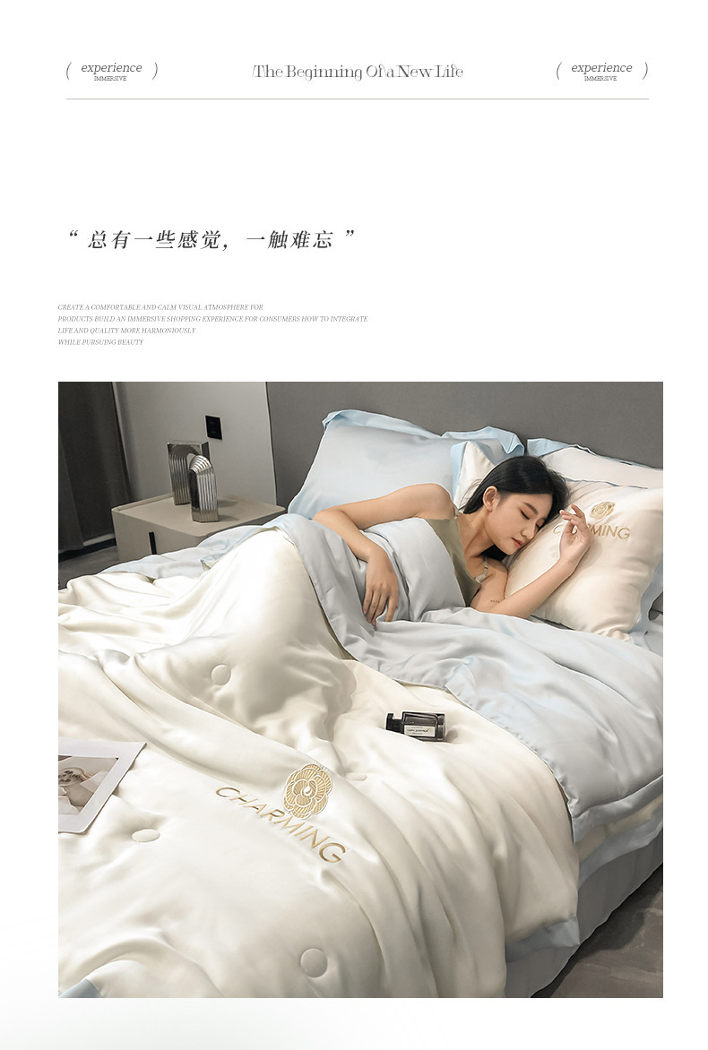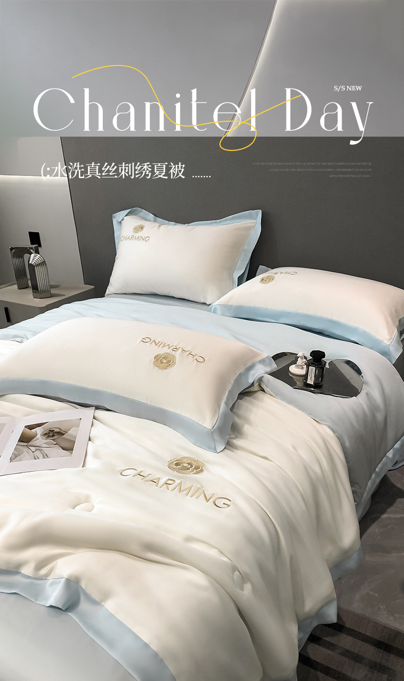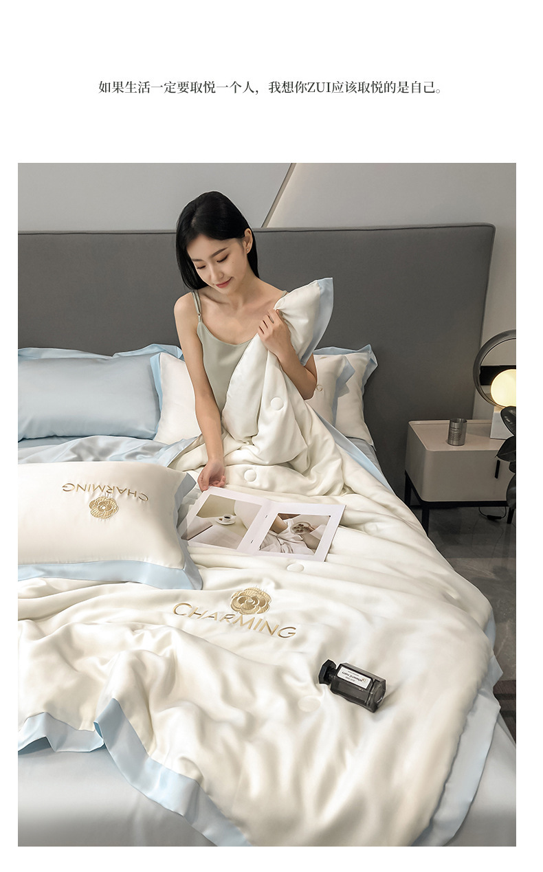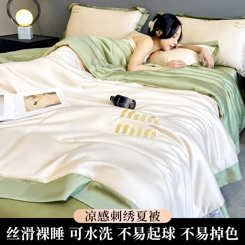 여름 시원한 이불 클래스 모성 및 유아 학년 여름 얼음 실크 에어컨 이불 기계 빨 수있는 4 피스 실크 선물 여름 이불 도매스토어 가기