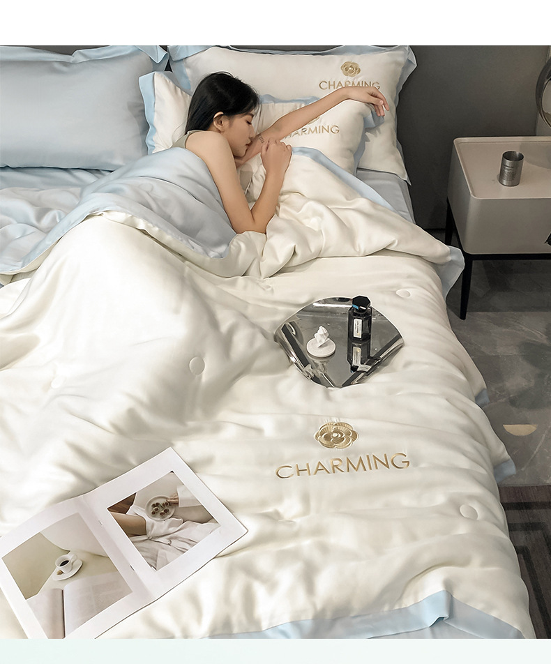 여름 시원한 이불 클래스 모성 및 유아 학년 여름 얼음 실크 에어컨 이불 기계 빨 수있는 4 피스 실크 선물 여름 이불 도매