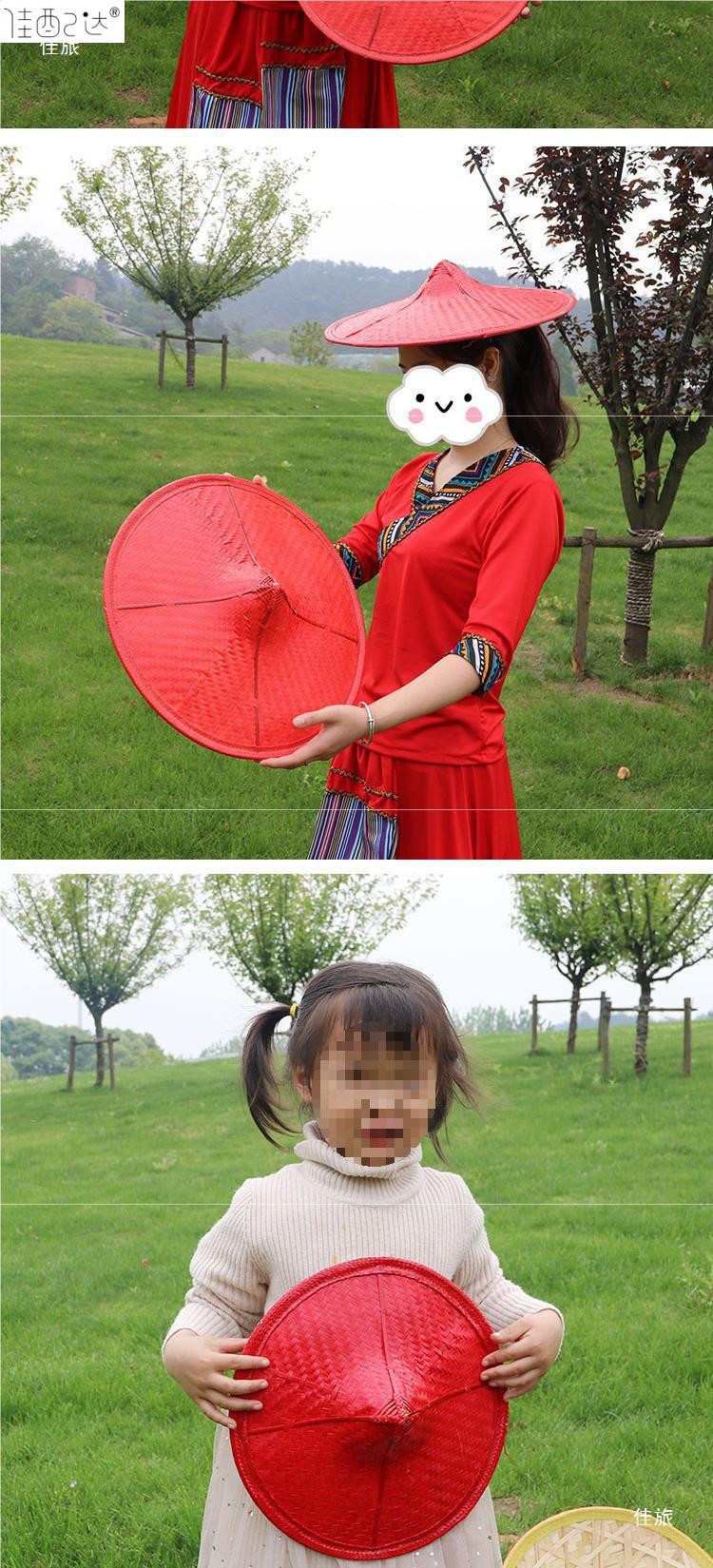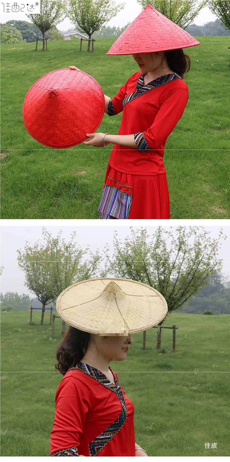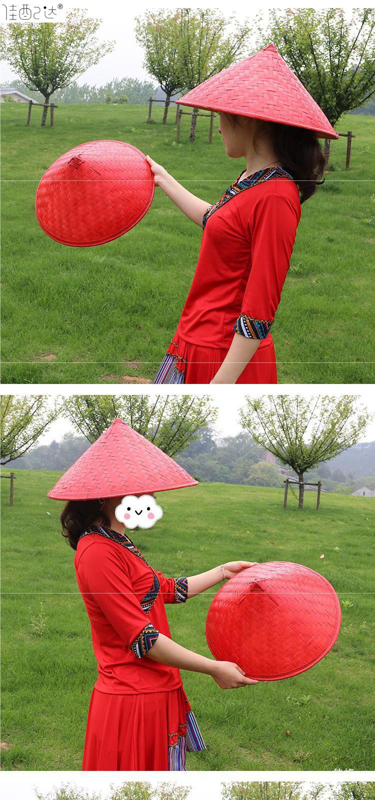 소수 민족 댄스 모자 어린이 공연 소품 대나무 대나무 모자 붉은 꽃 허리 다이 프로그램 6 월 1 일 어린이 날스토어 가기