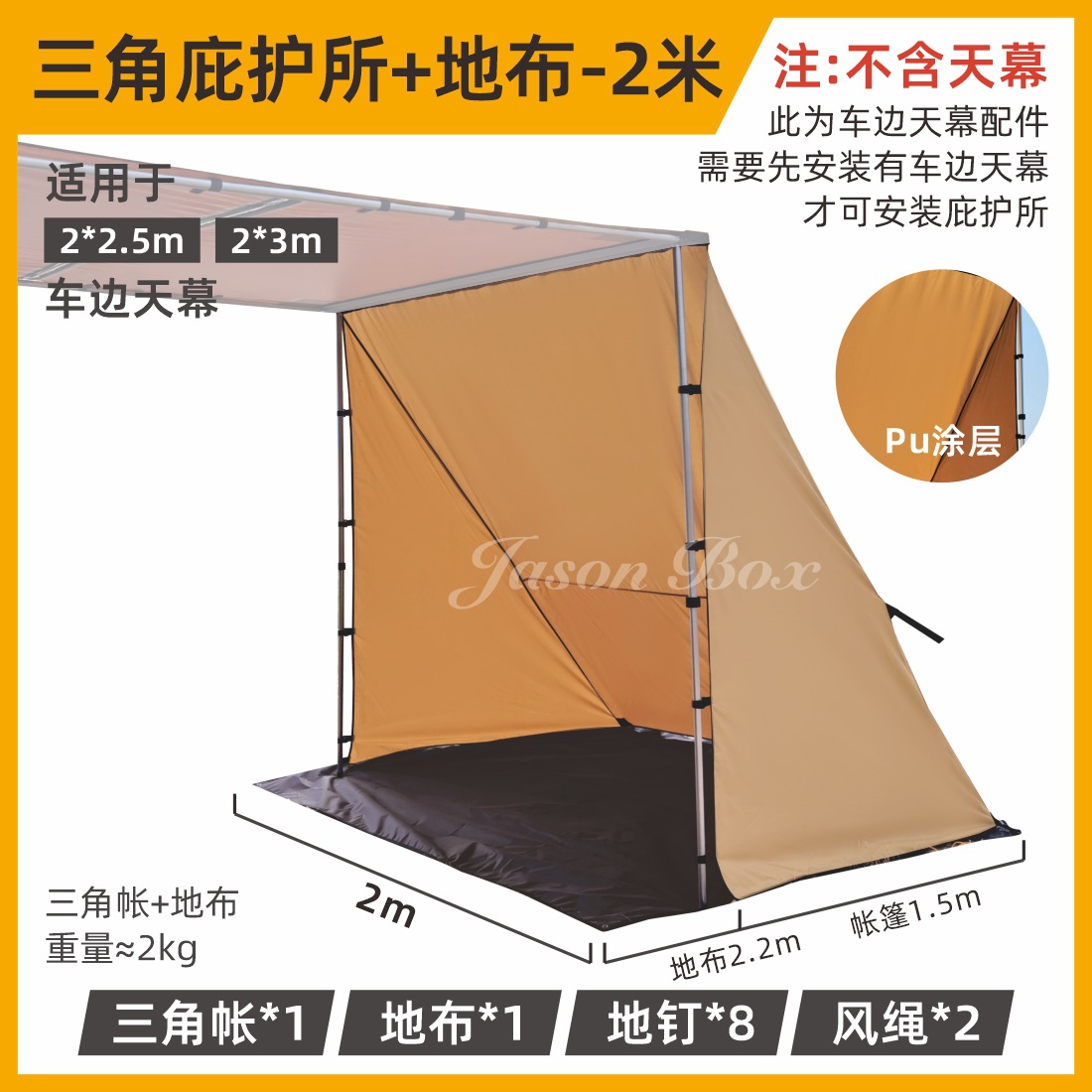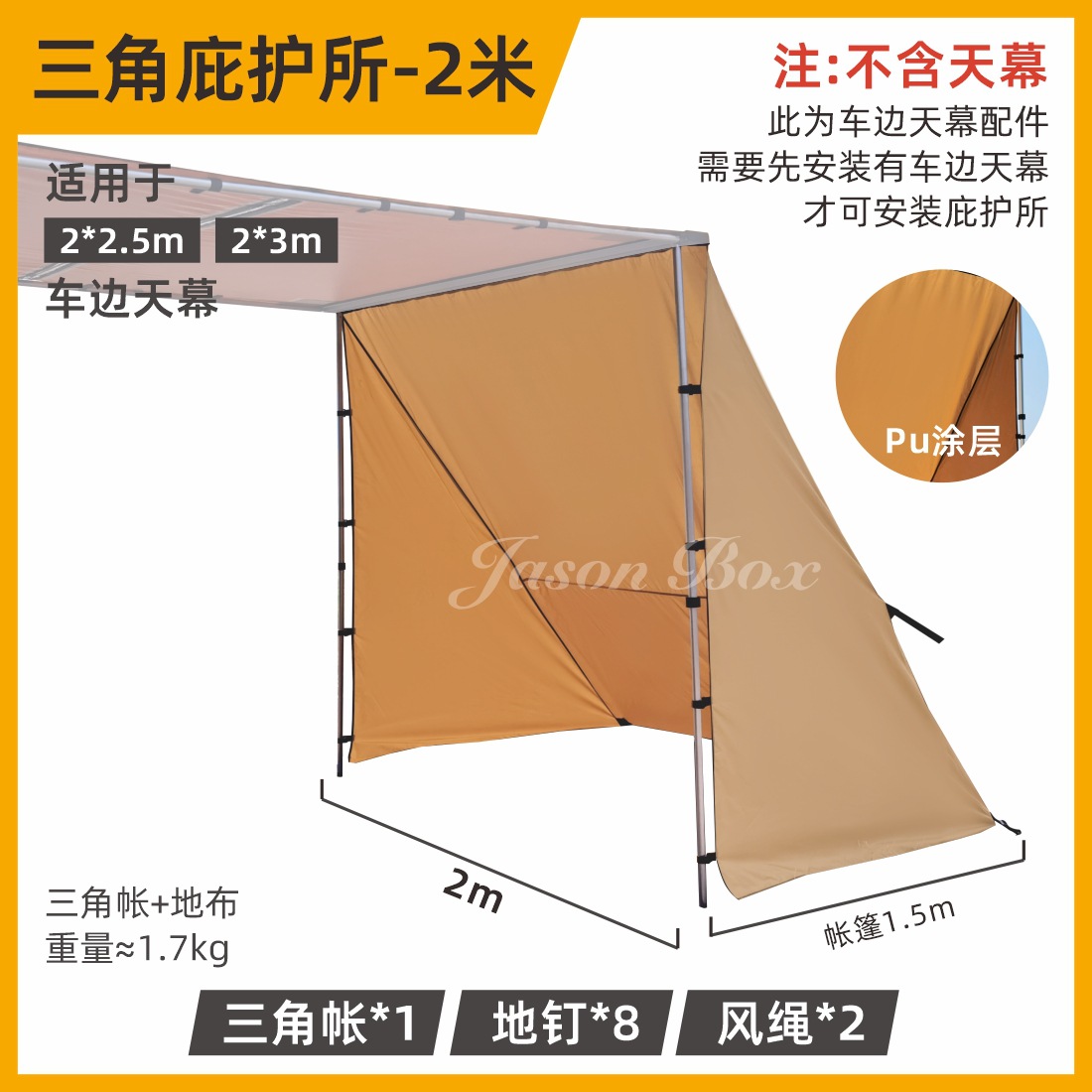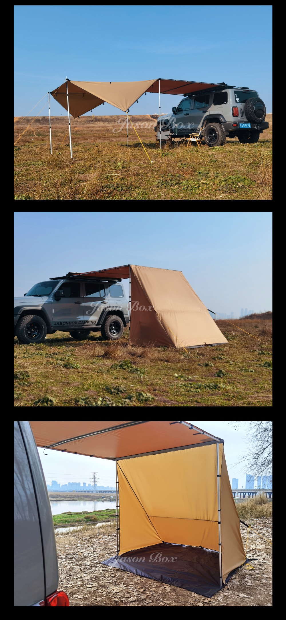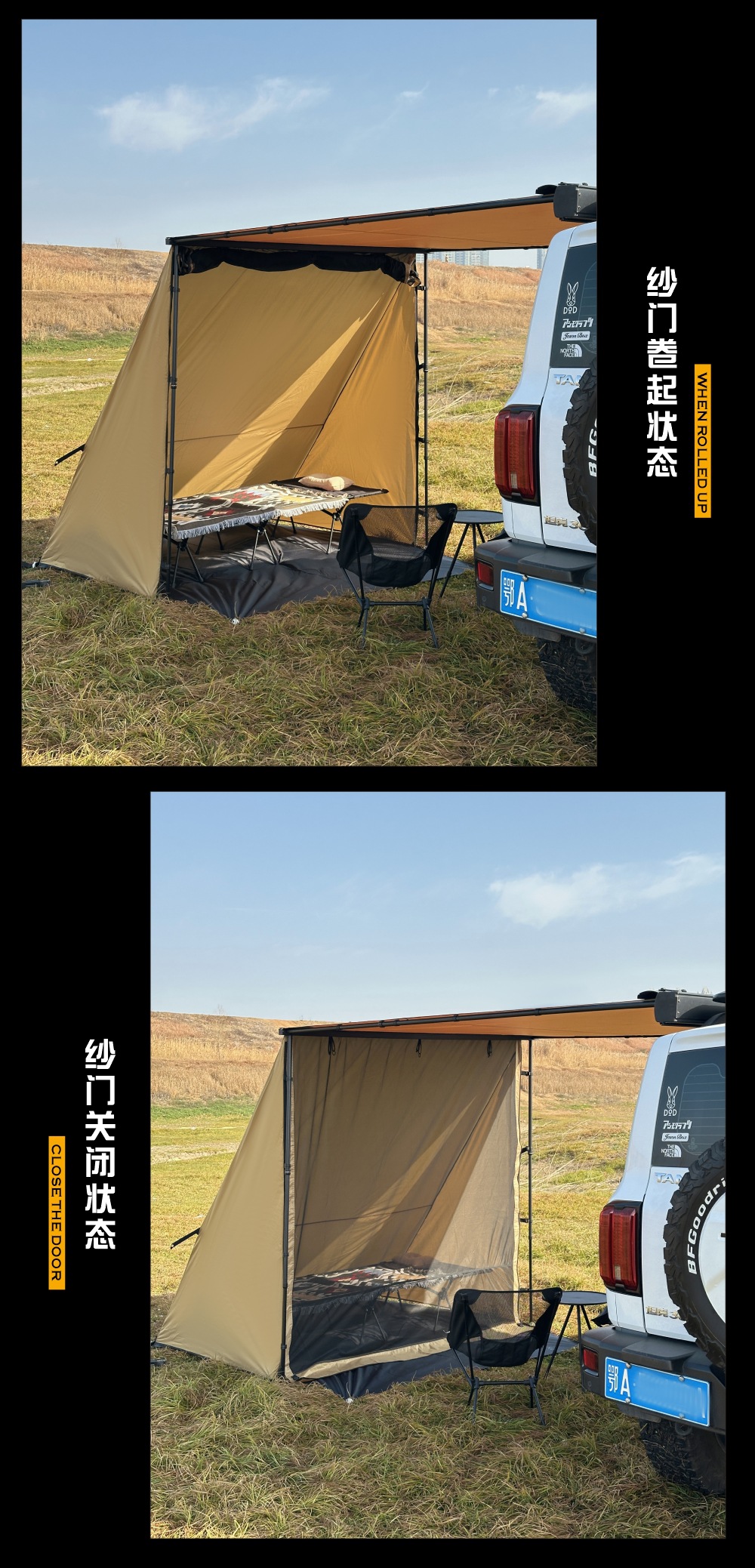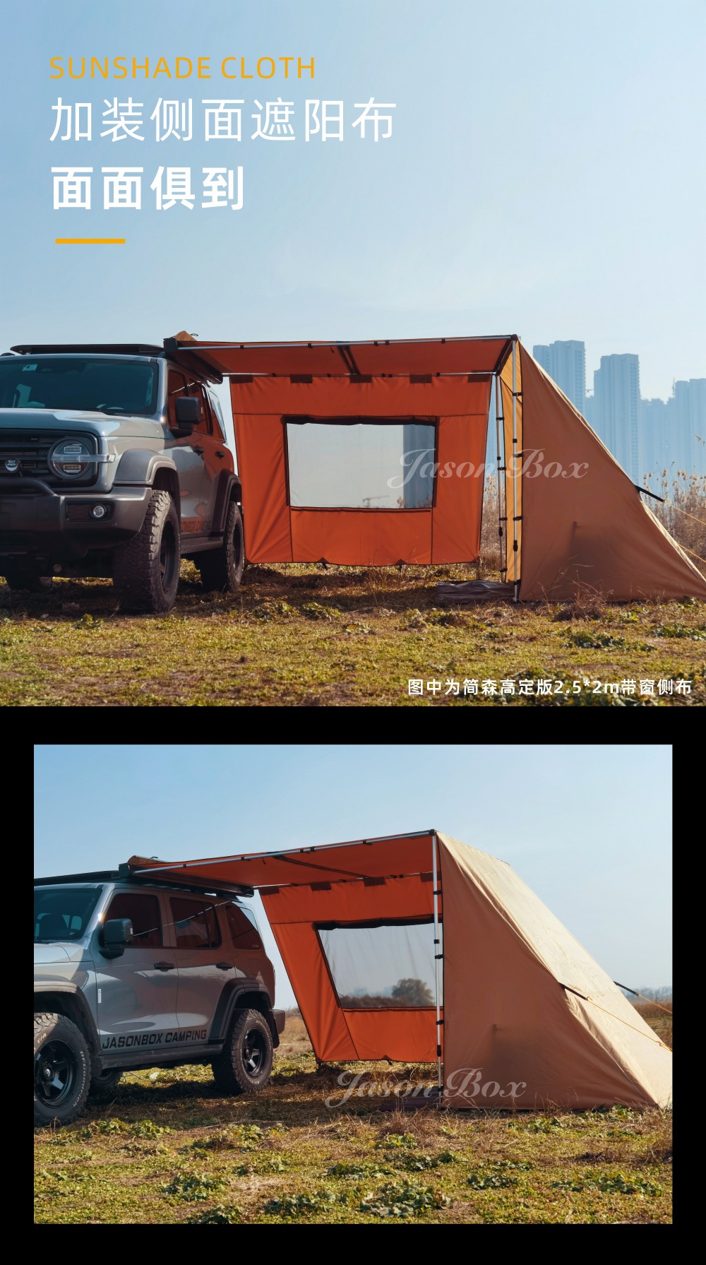 Jensen 야외 자동차 측면 텐트 확장 삼각형 대피소 2 텐트 프로 캐노피 사이드 텐트 곤충 방지 차양 천 스크린 도어