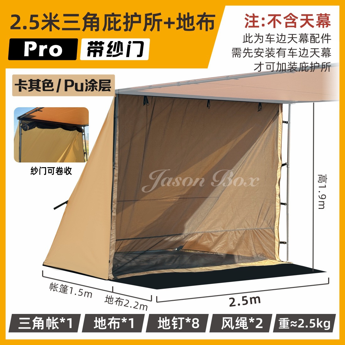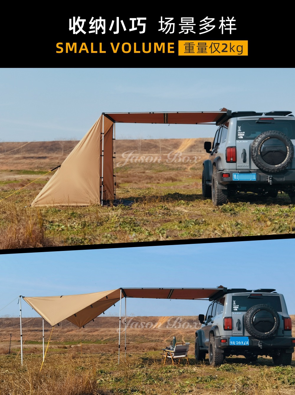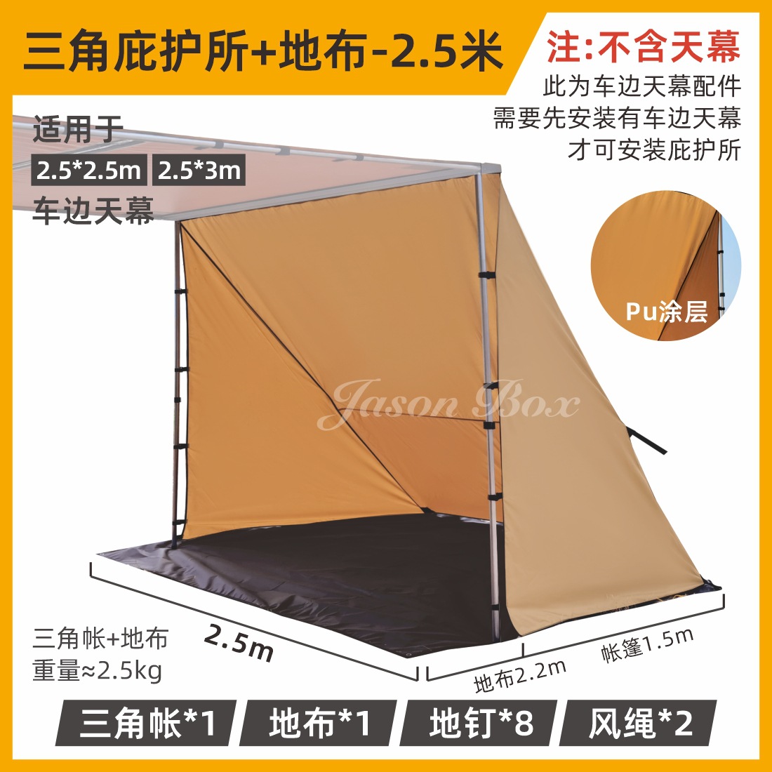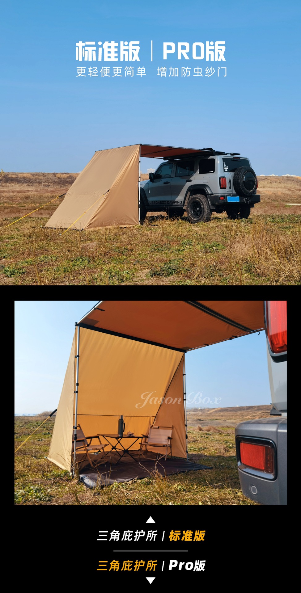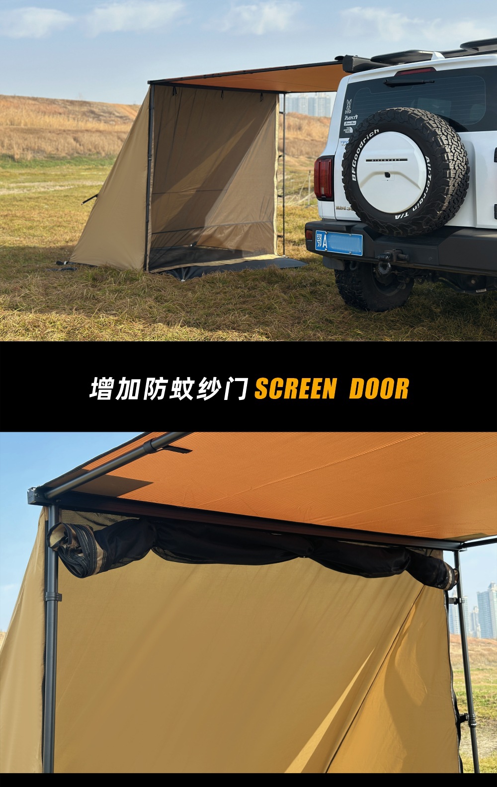 Jensen 야외 자동차 측면 텐트 확장 삼각형 대피소 2 텐트 프로 캐노피 사이드 텐트 곤충 방지 차양 천 스크린 도어