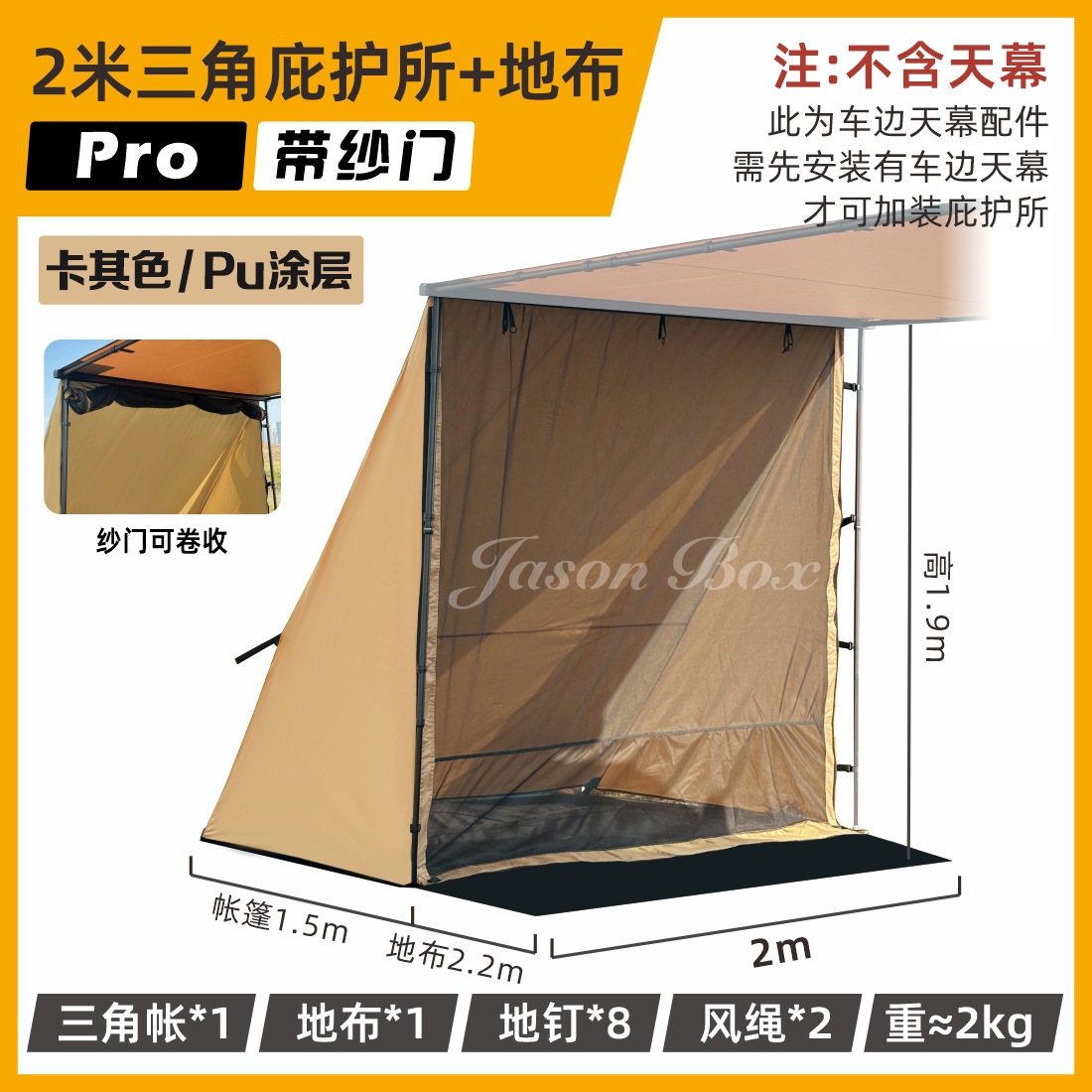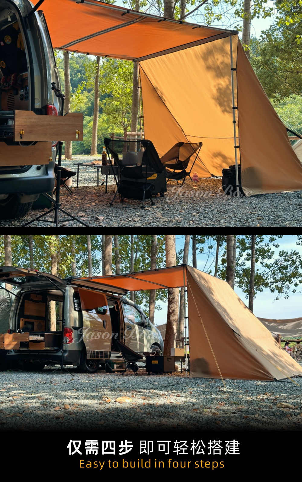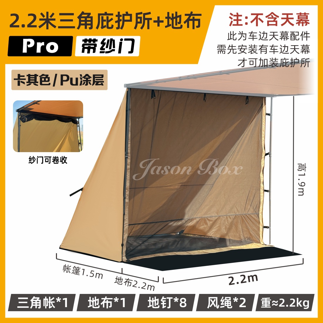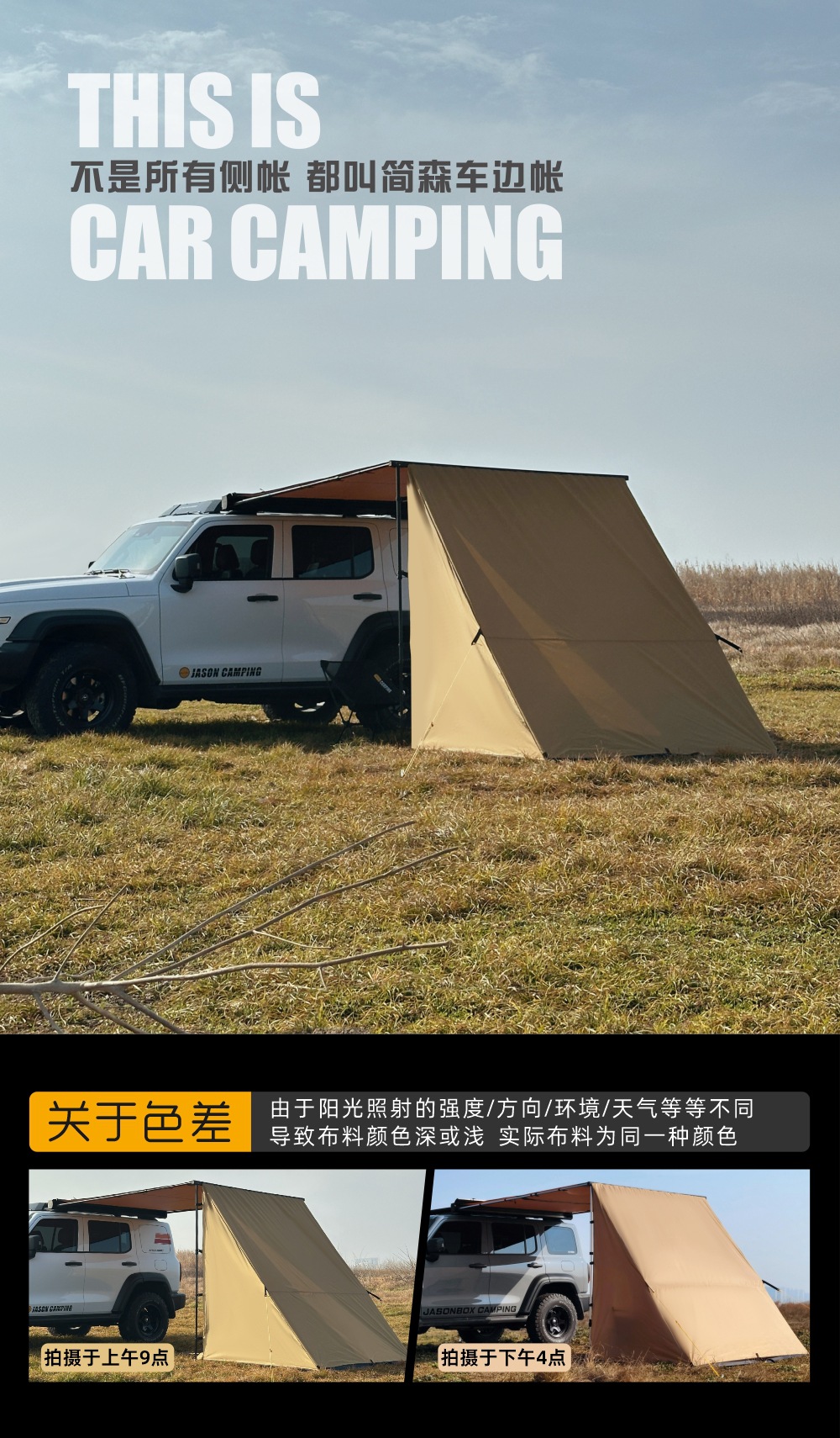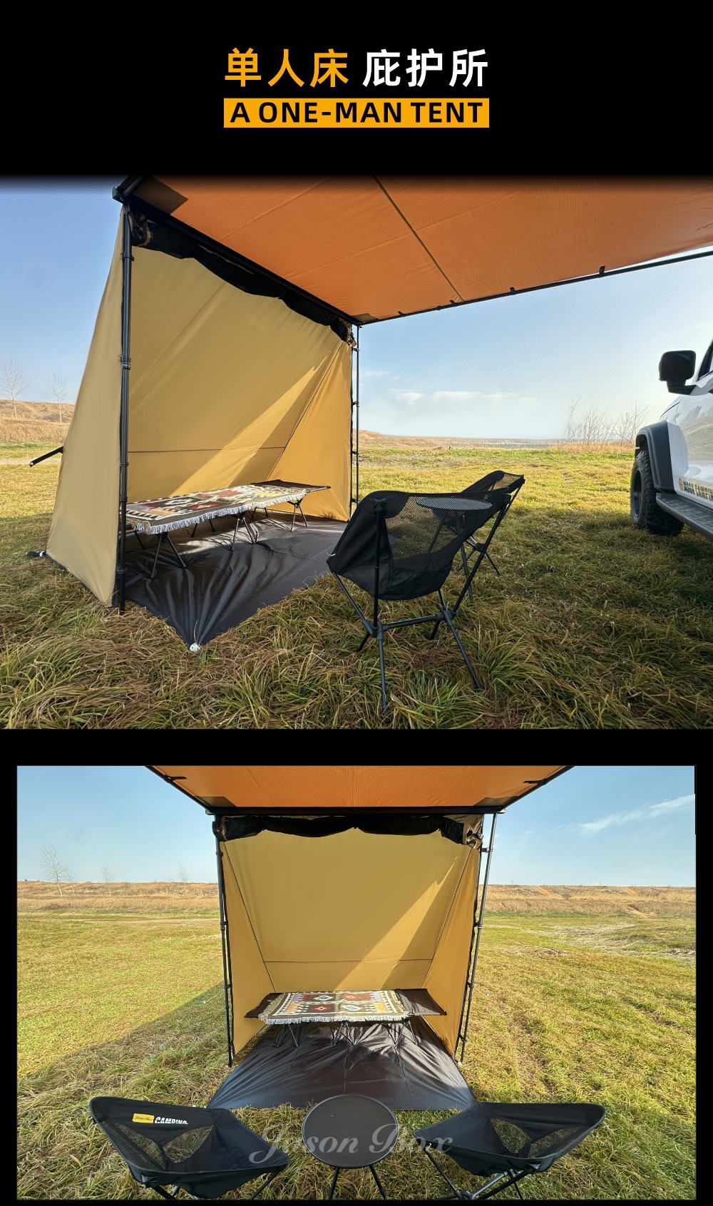 Jensen 야외 자동차 측면 텐트 확장 삼각형 대피소 2 텐트 프로 캐노피 사이드 텐트 곤충 방지 차양 천 스크린 도어