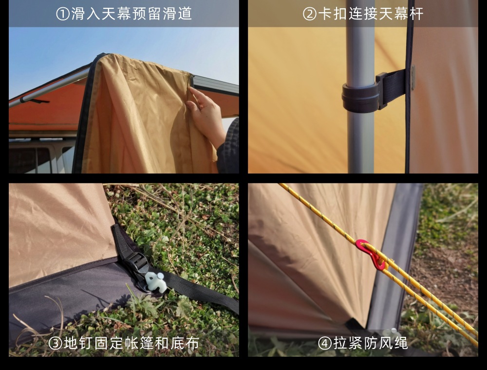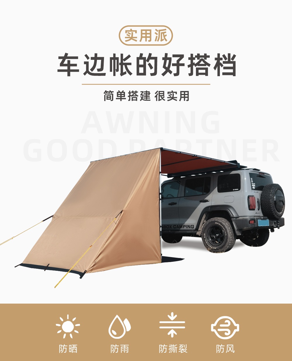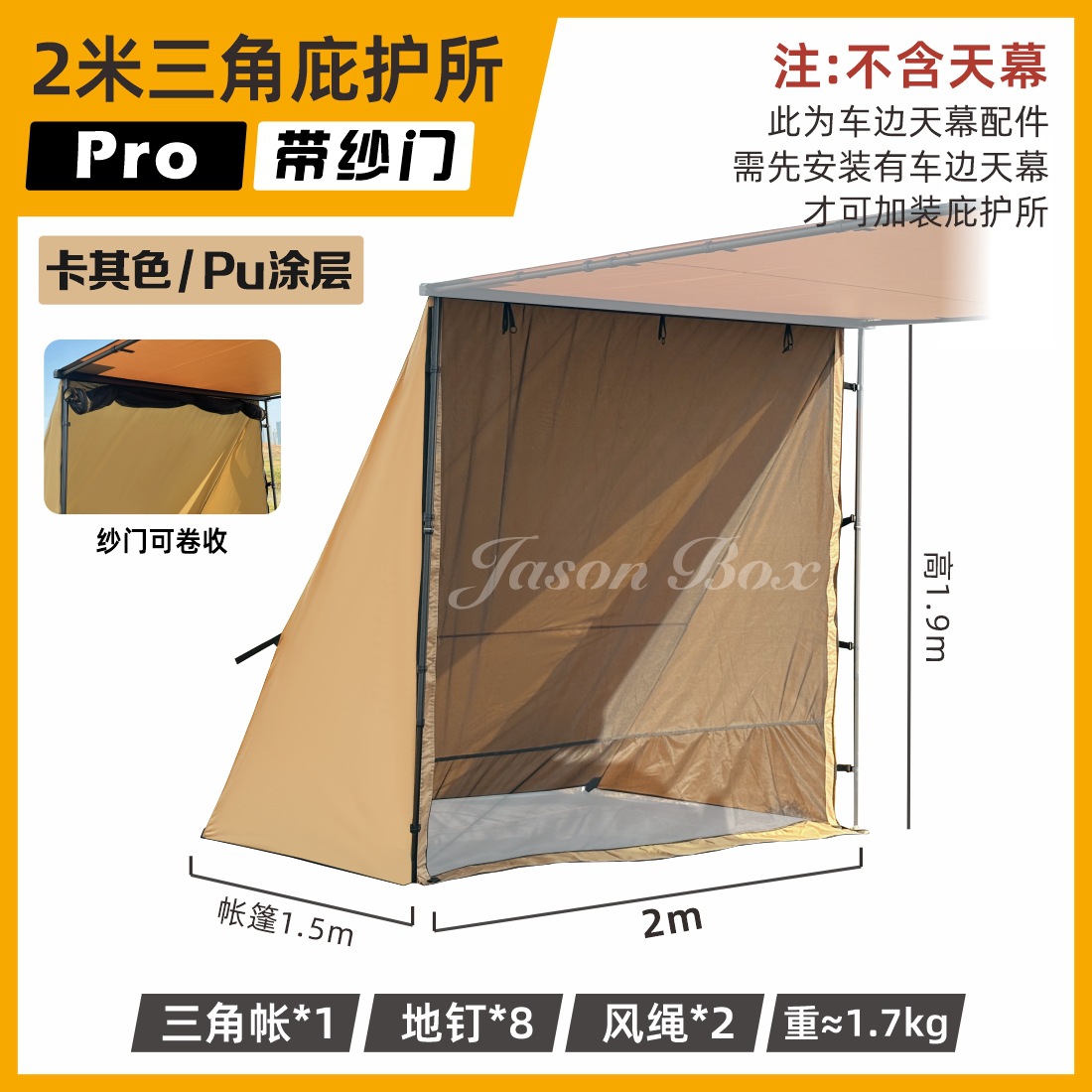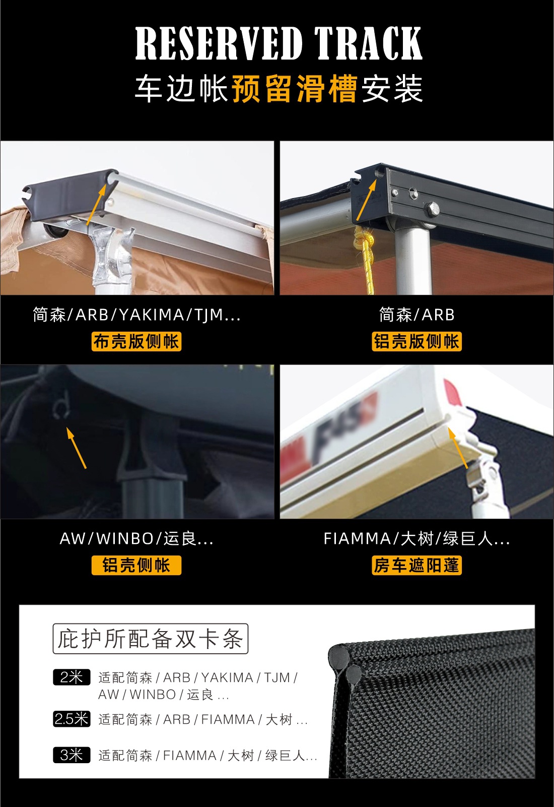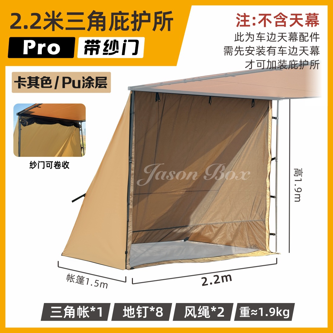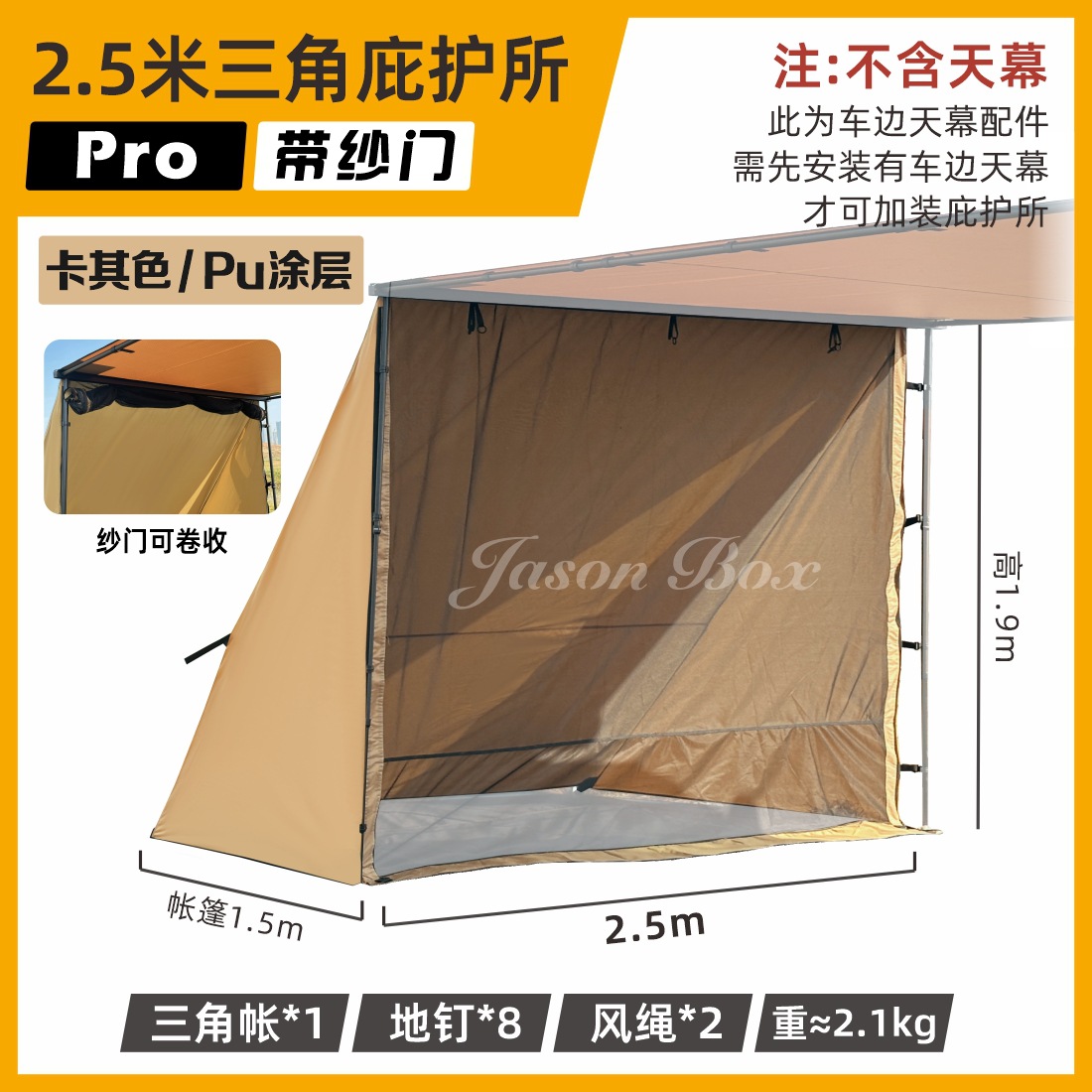 Jensen 야외 자동차 측면 텐트 확장 삼각형 대피소 2 텐트 프로 캐노피 사이드 텐트 곤충 방지 차양 천 스크린 도어