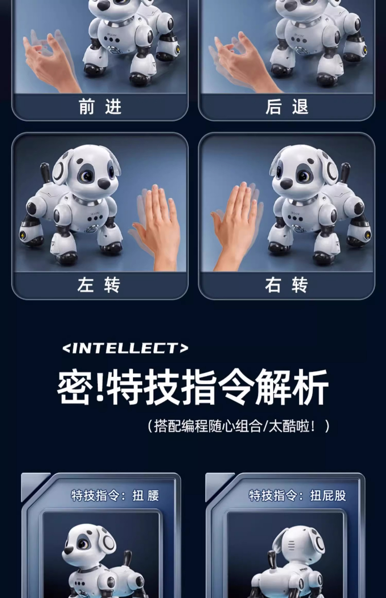 • [업그레이드된 제스처 장애물 회피 버전] 단일 리튬 배터리 기술 흰색 프로그래밍 개/제스처 센서 + 순찰 장애물 회피 + 터치 인터랙션 + 음성 센서 + 스토리 백과사전 + 원격 제어 + 프로그래밍
