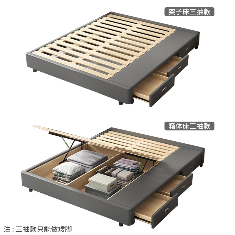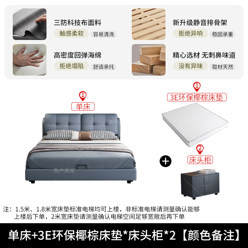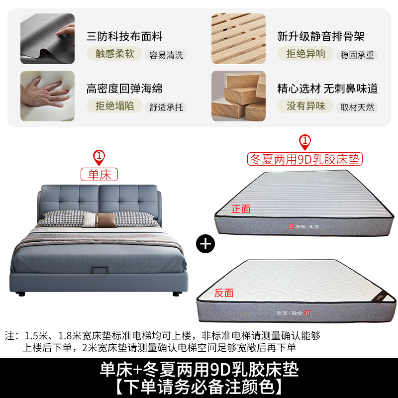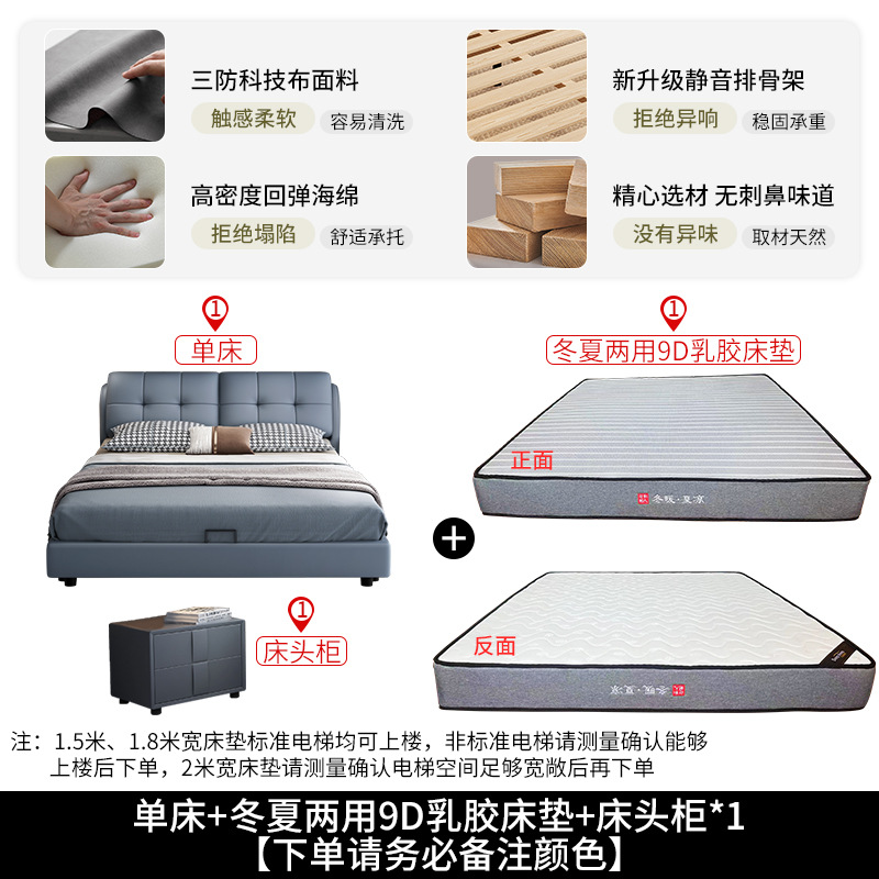 • 가죽 침대 + 겨울 및 여름 아이스 실크 9D 라텍스 매트리스 + 캐비닛 1개(설치 포함)