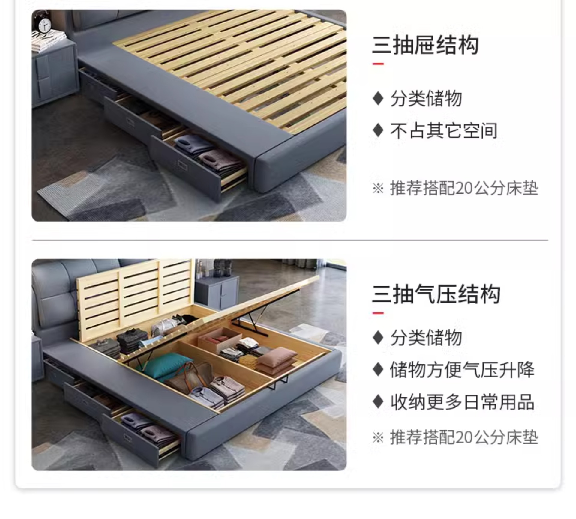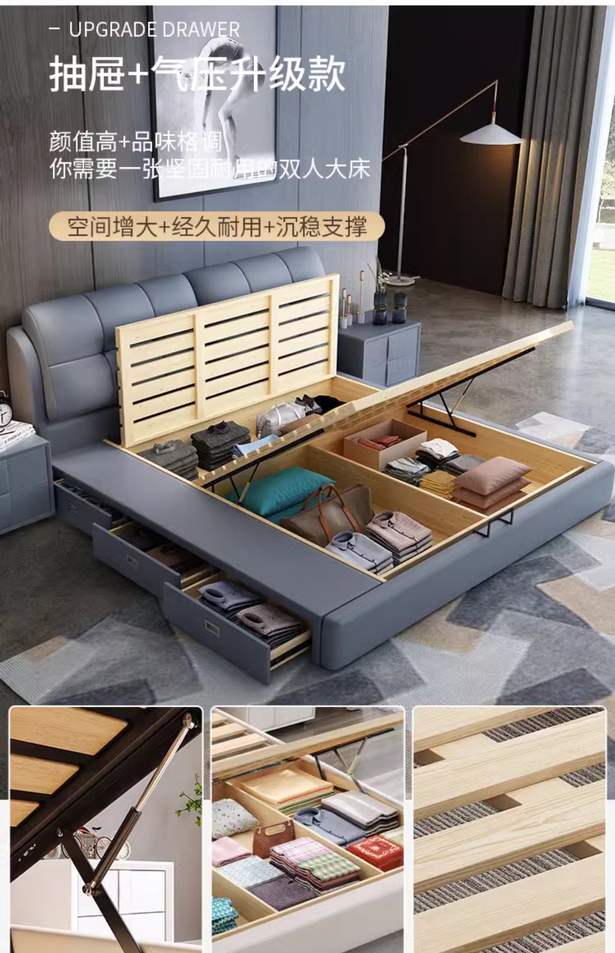 • 가죽 침대 + 캐시미어 독립백 매트리스 + 캐비닛 1개(설치 포함)