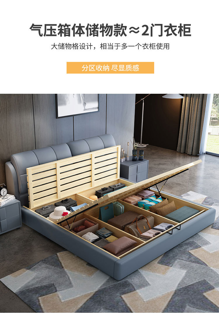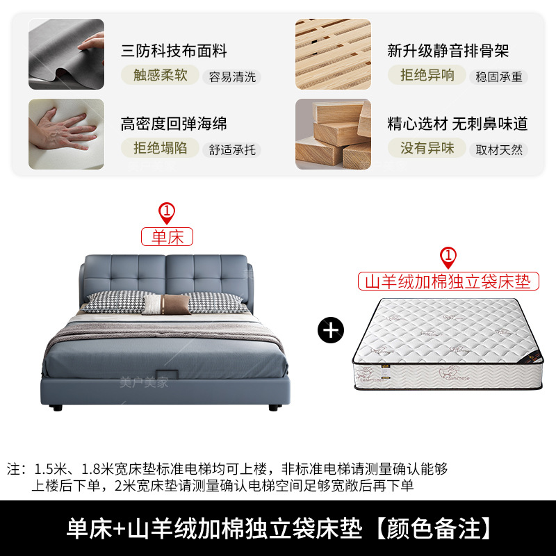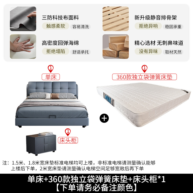 • 가죽 침대 + 360 진정한 독립 포켓 스프링 라텍스 매트리스 + 캐비닛 1개(설치 포함)