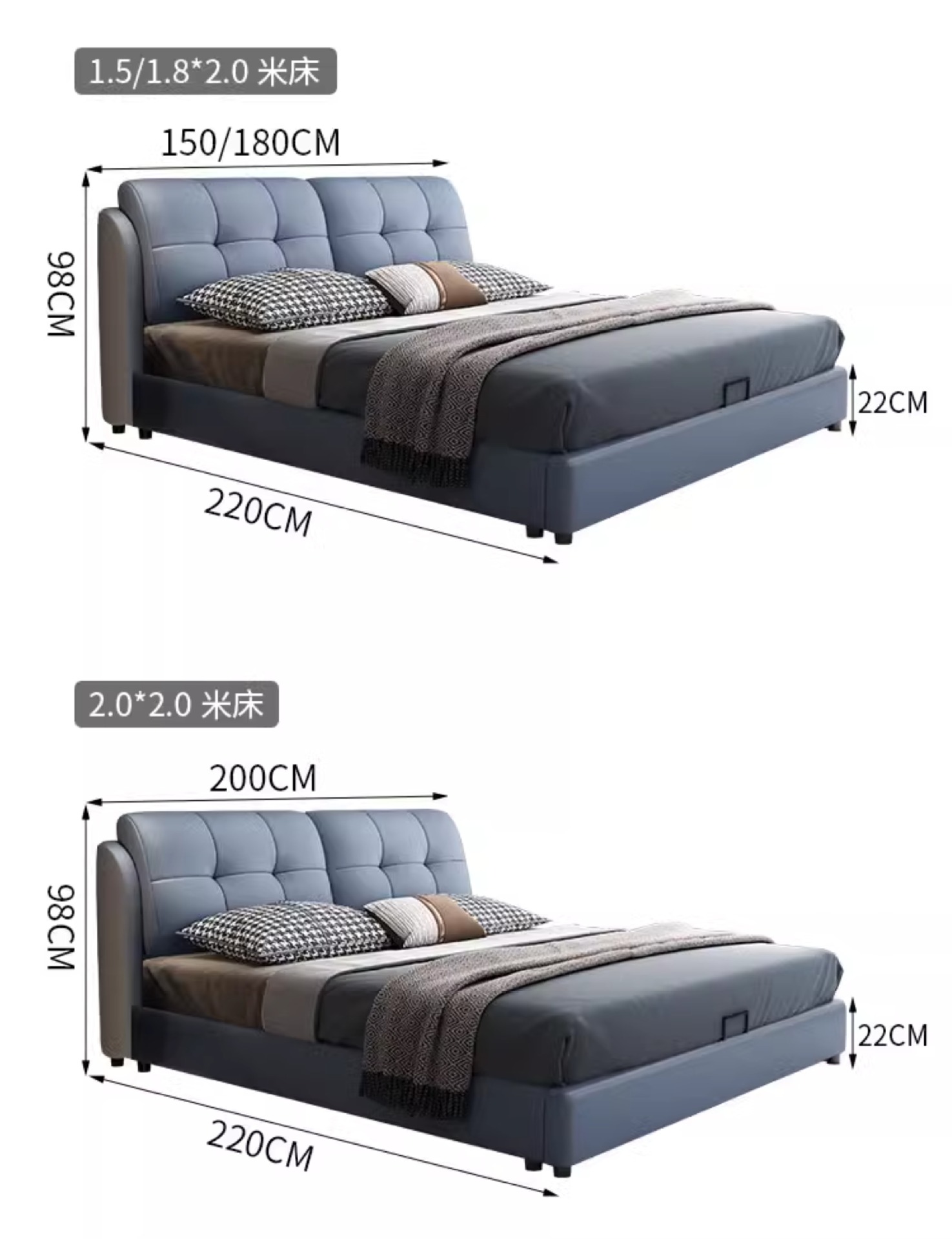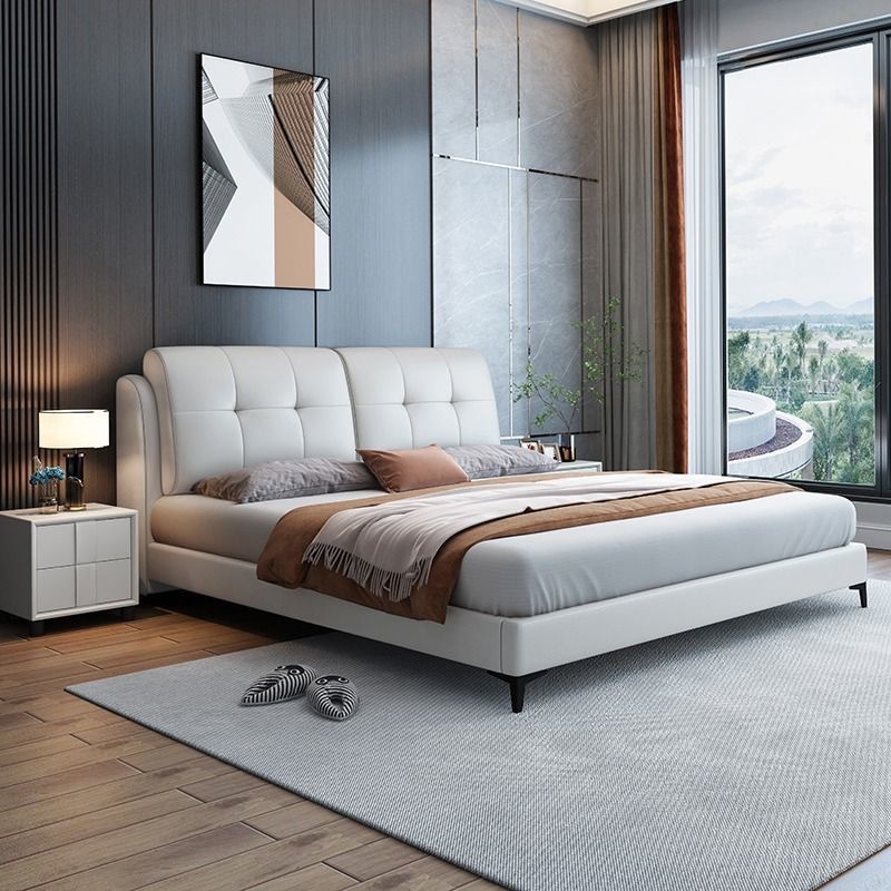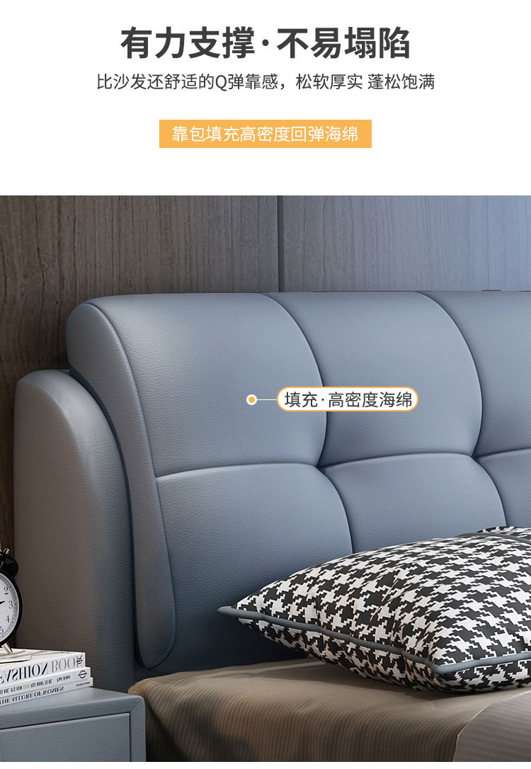 • 가죽 침대 + 캐시미어 독립백 매트리스 (20CM 스프링 매트리스, 패키지 설치)