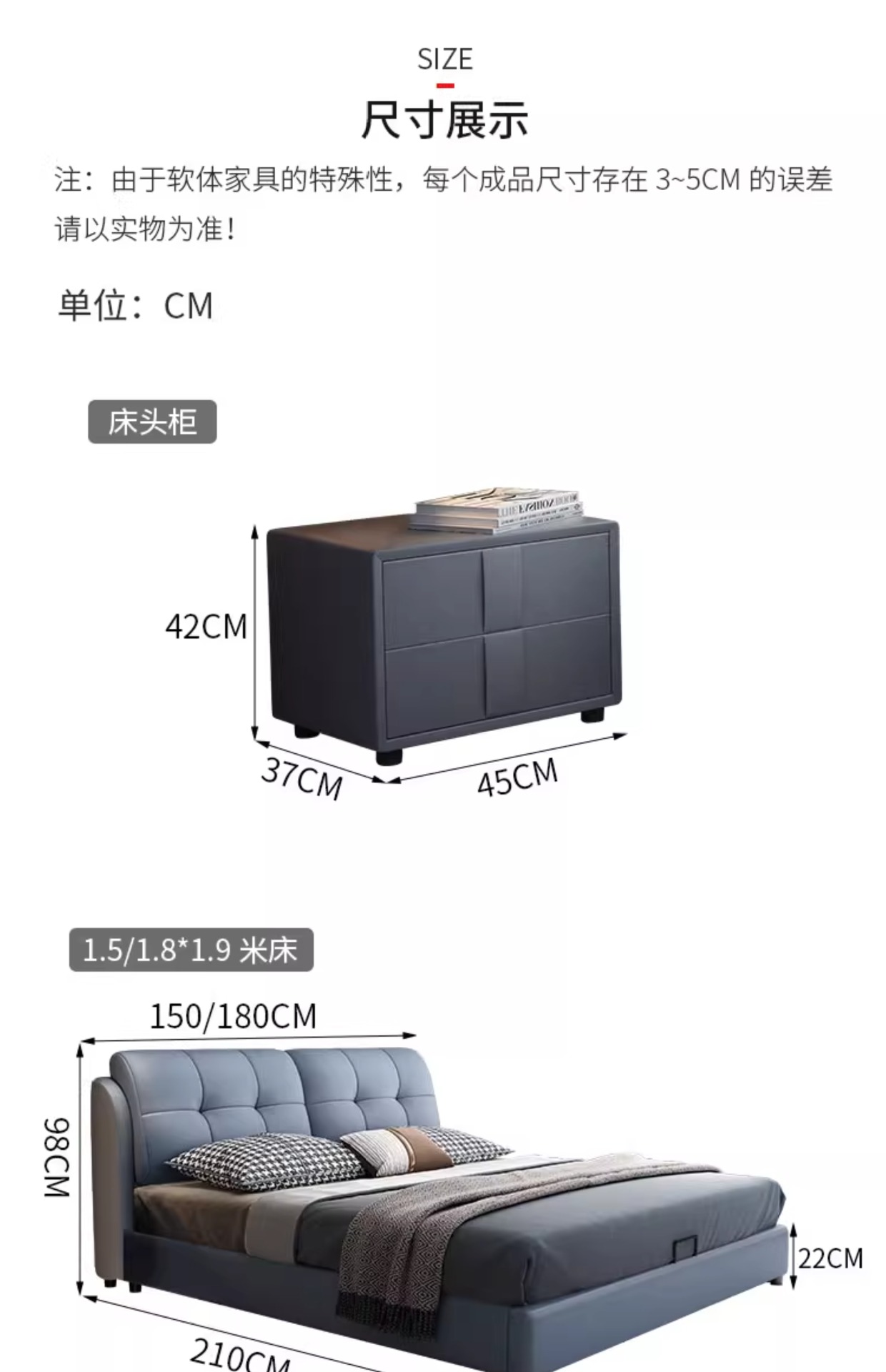 • 가죽 침대 + 9존 5D 라텍스 매트리스 + 캐비닛 1개(설치 포함)
