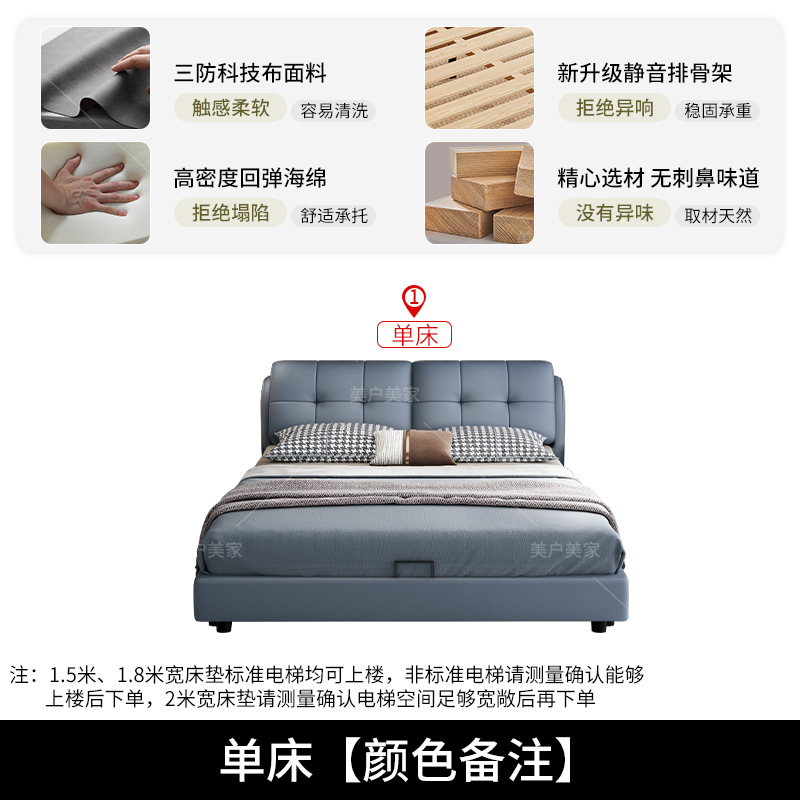 가벼운 고급 현대 간단한 침대 마스터 침실 대기 부드러운 가방 웨딩 침대 1.5 m 1.8 기술 패브릭 더블 침대스토어 가기