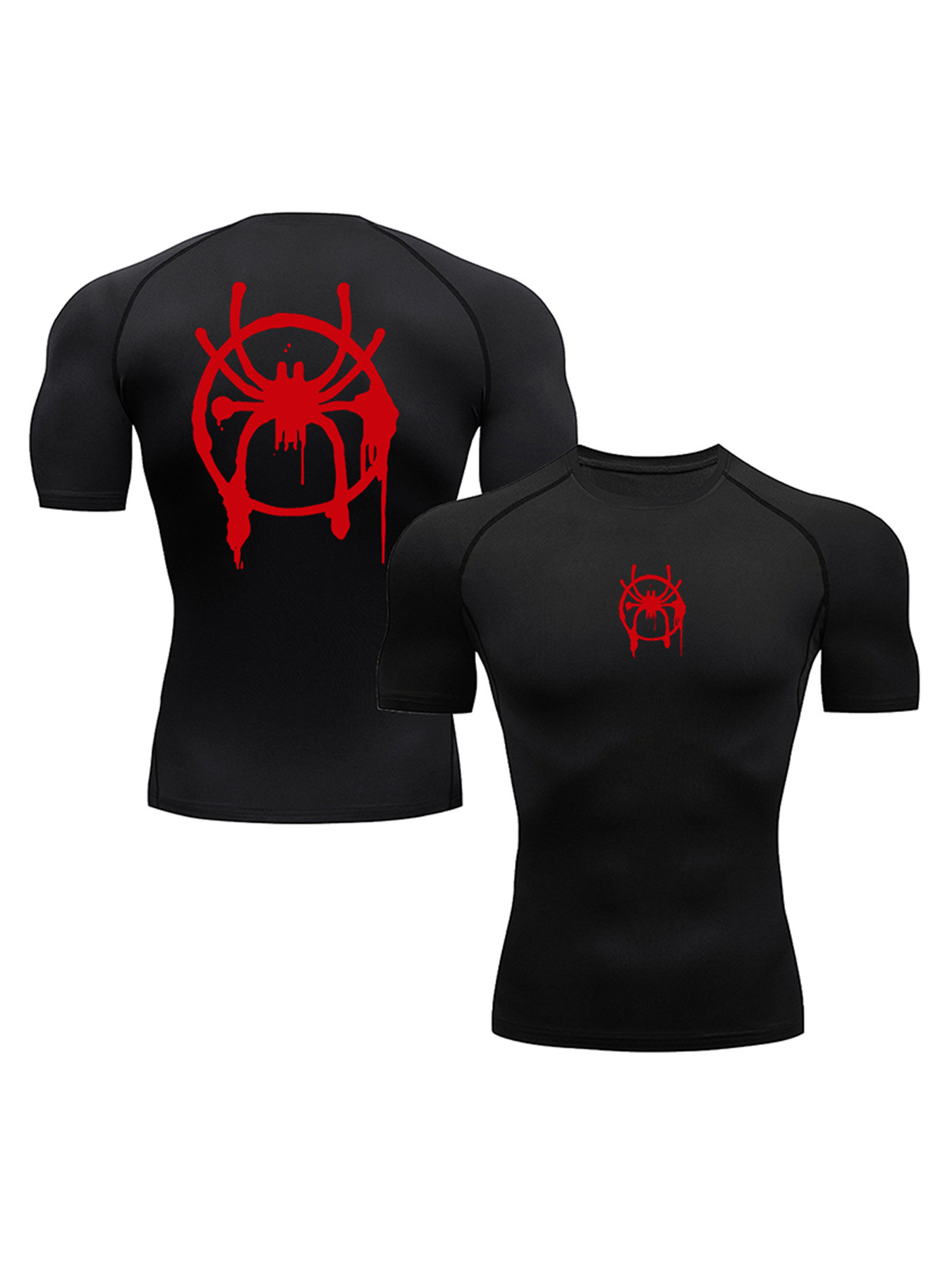 남자 스포츠 티셔츠 피트니스 티셔츠 러닝 티셔츠 타이트 탑 남자 스파이더 맨 프린트 피겨 남자 탑