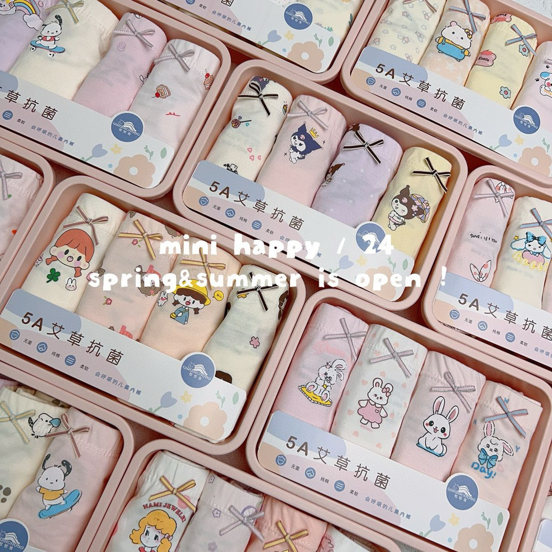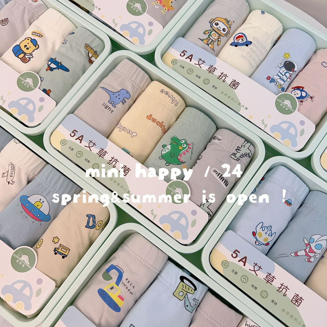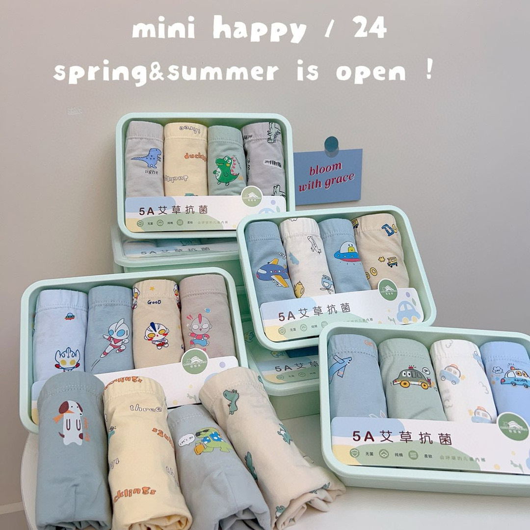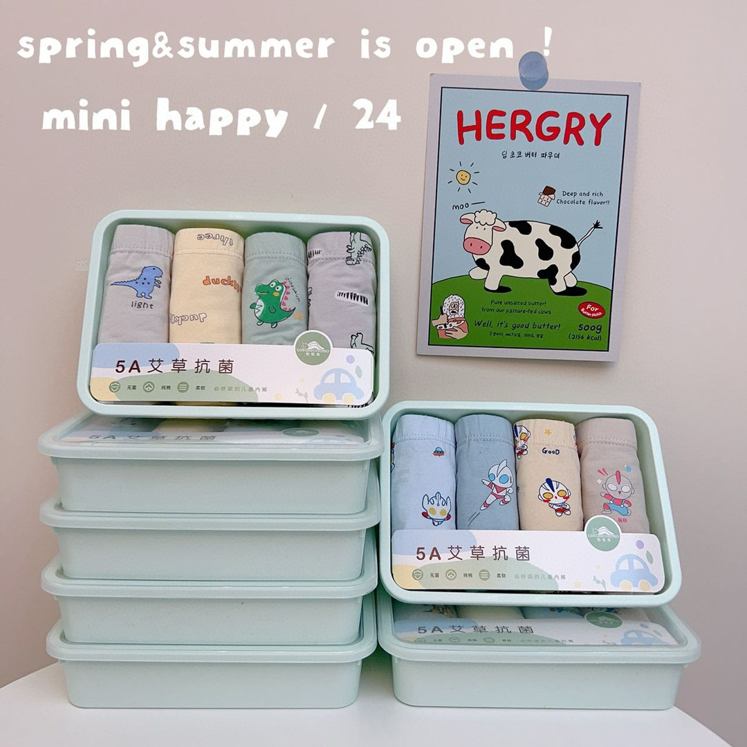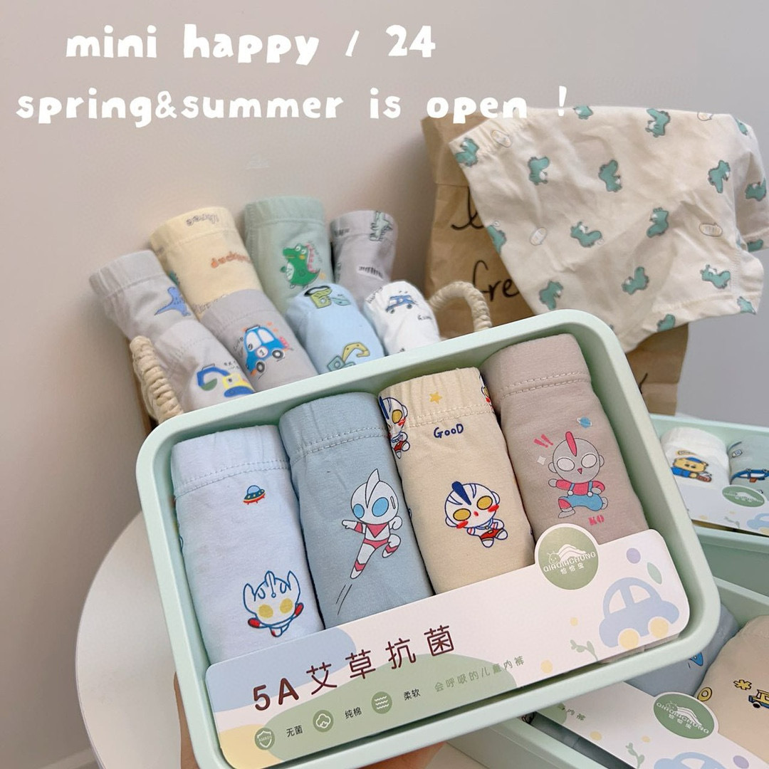어린이용 사각 팬티, 만화 무늬 라이크라 면 4종 세트, 통기성 좋고 피부 친화적, 종합적인 4종 세트, 저렴한 가격