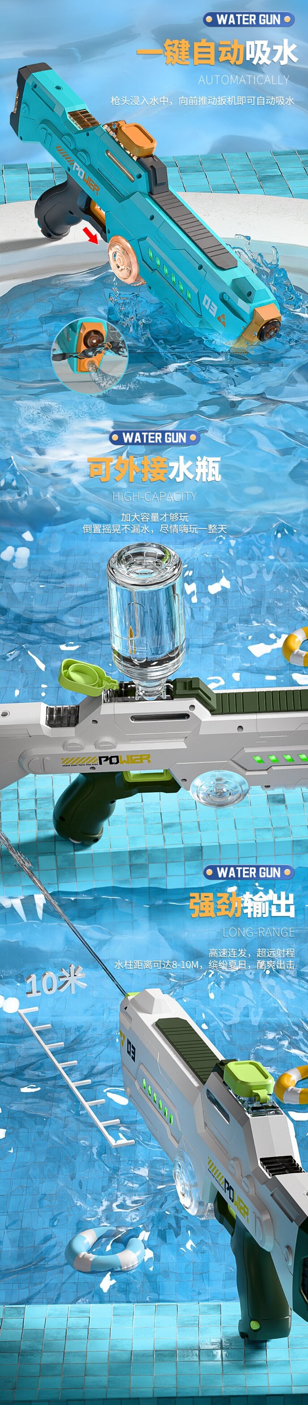 국경 새로운 전기 물총 완전 자동 버스트 물총 전기 버스트 장난감 물총 고압 대용량