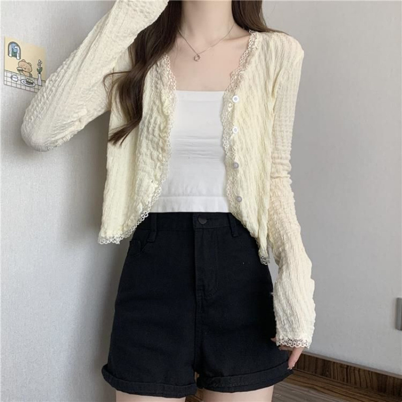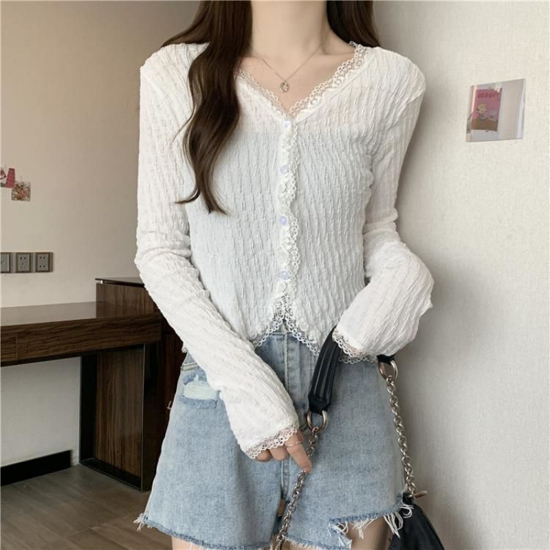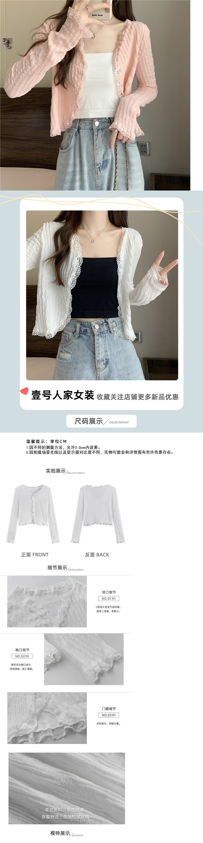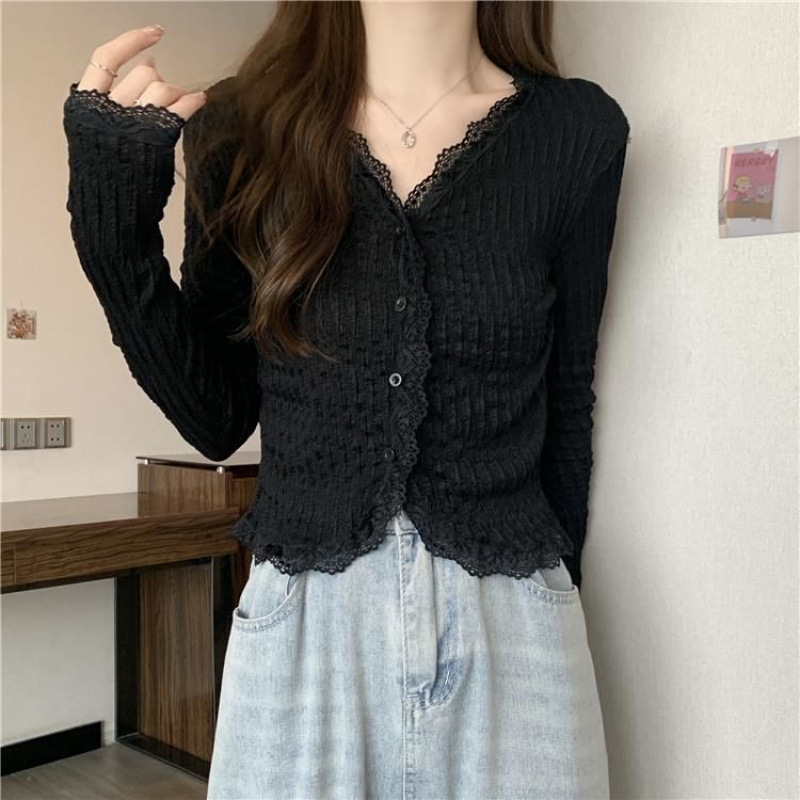 레이스 올 매치 선스크린 니트 카디건 여성 여름 V-넥 디자인 센스 틈새 독특한 세련된 작은 탑스토어 가기