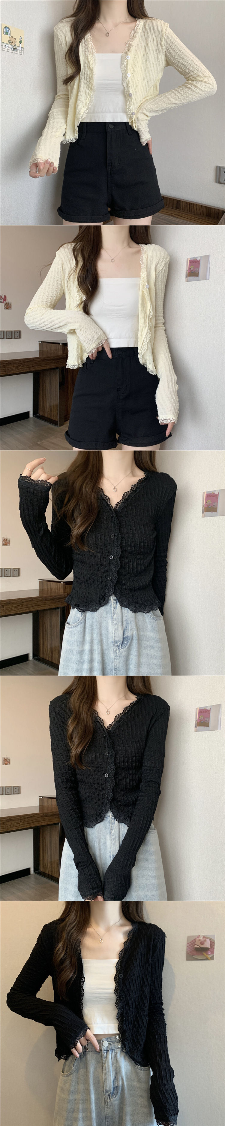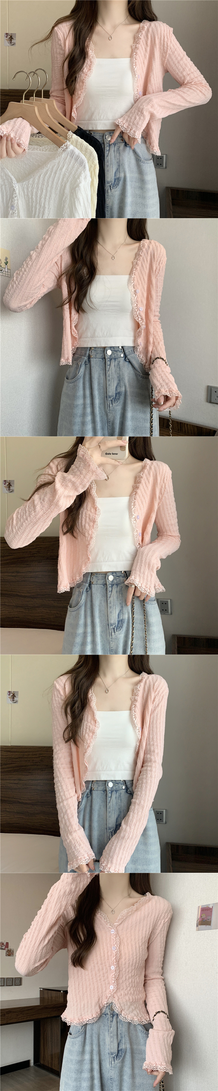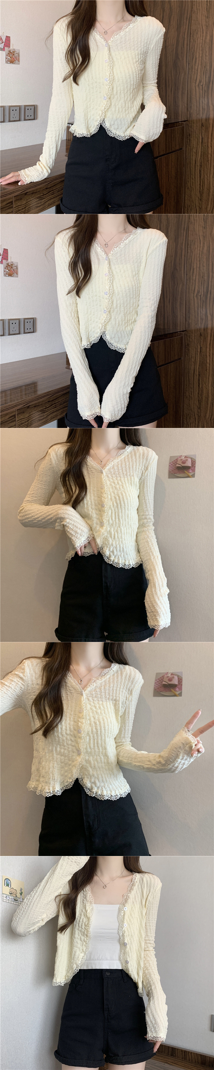 레이스 올 매치 선스크린 니트 카디건 여성 여름 V-넥 디자인 센스 틈새 독특한 세련된 작은 탑스토어 가기
