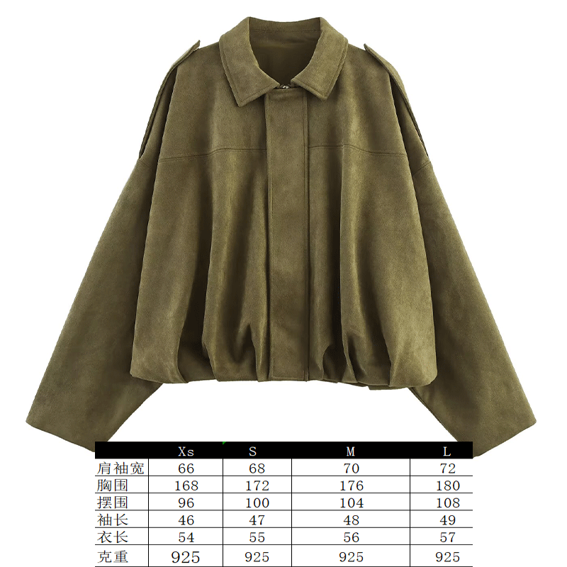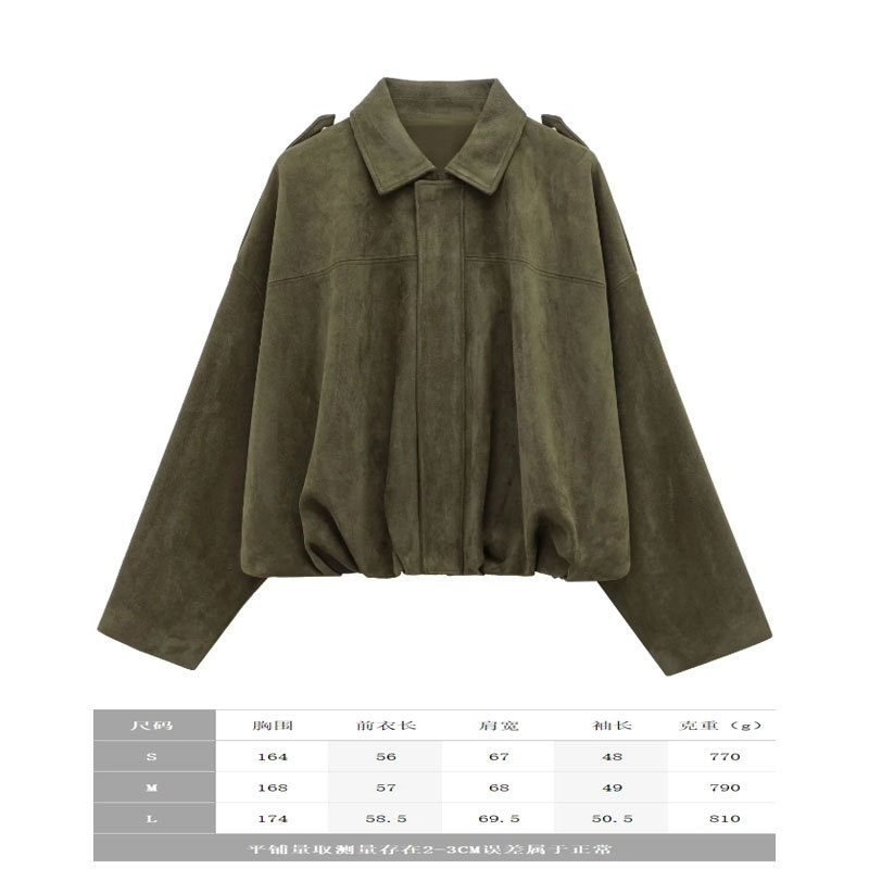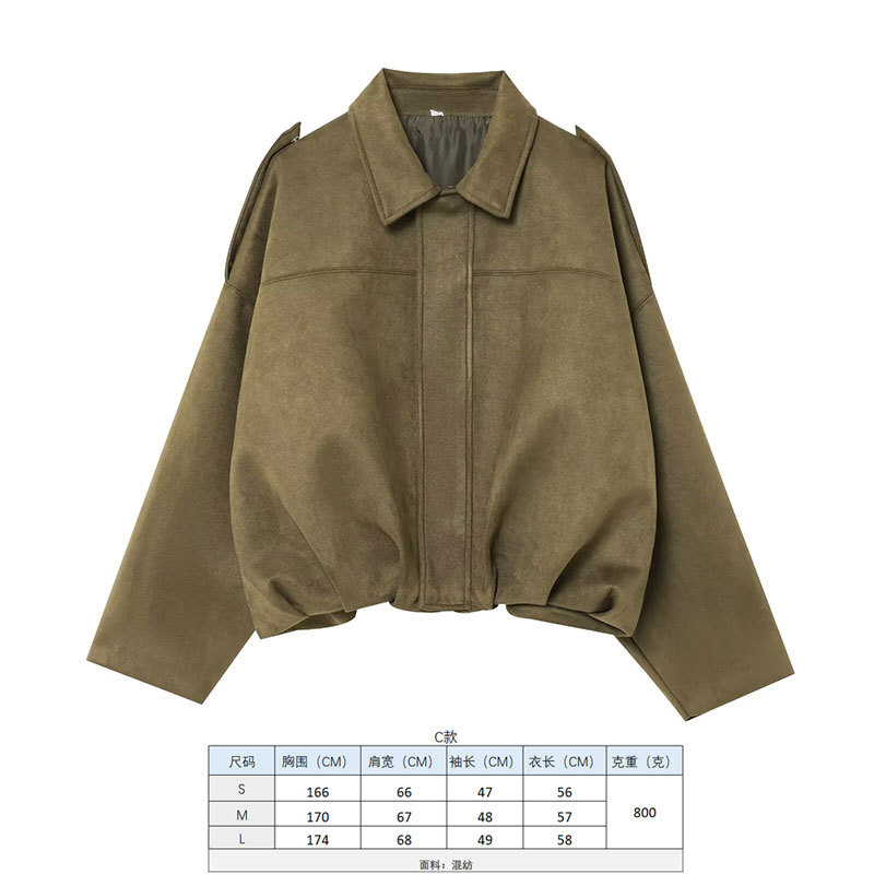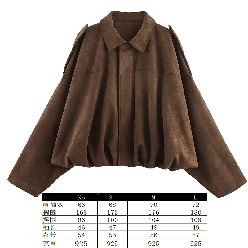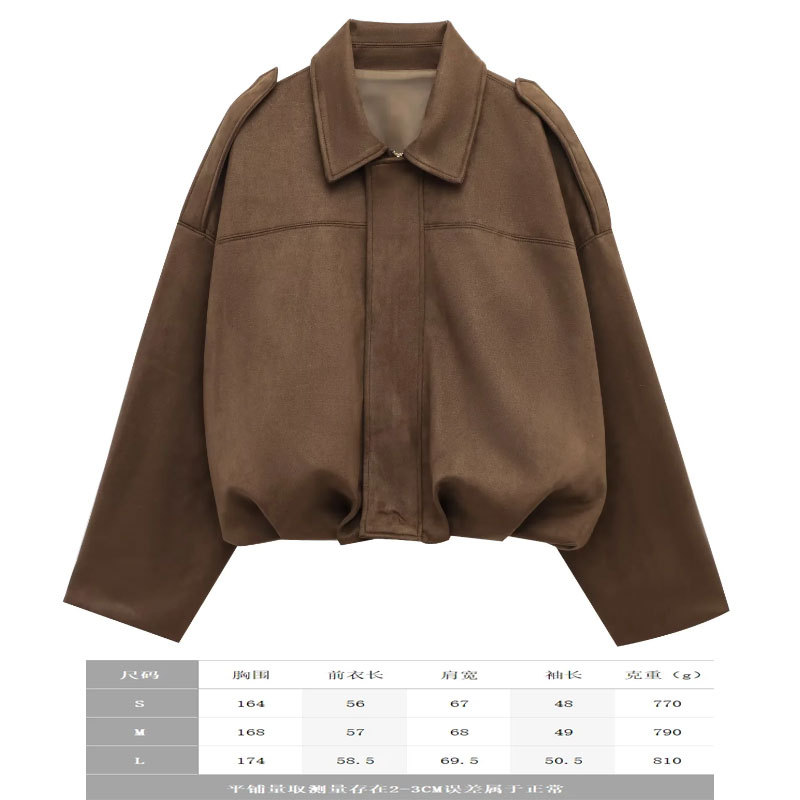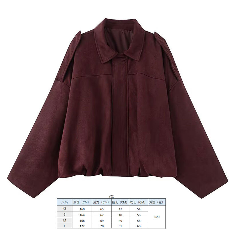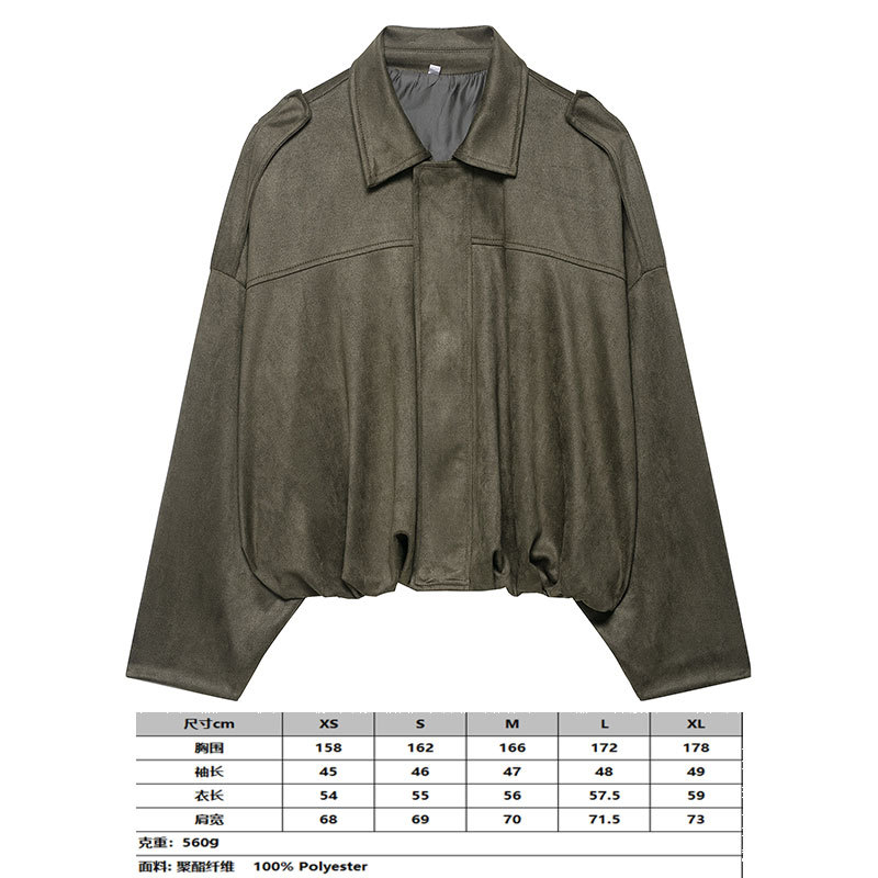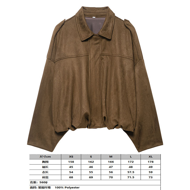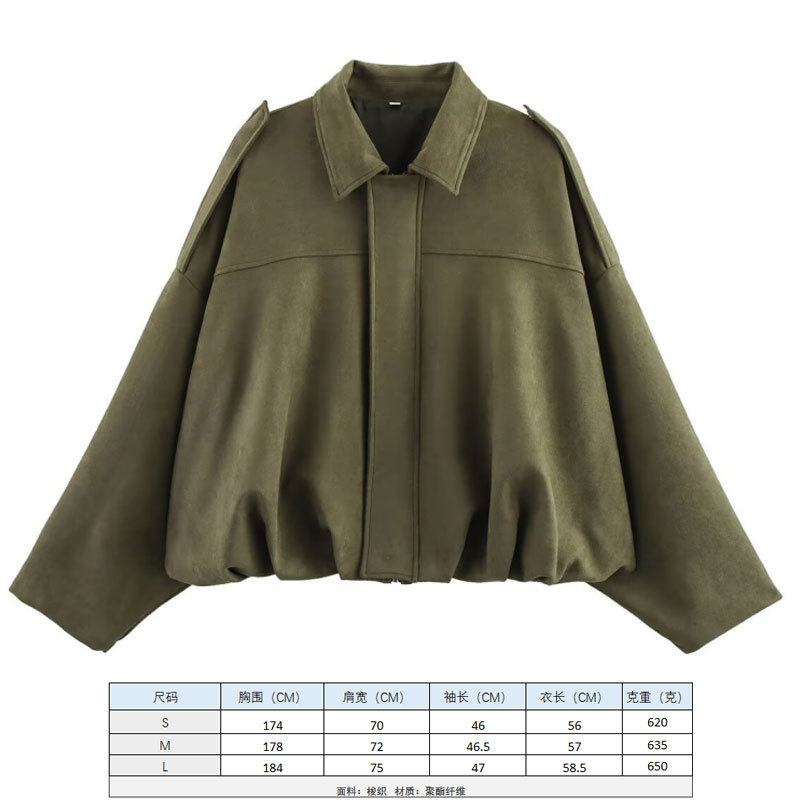 2025 봄 유럽과 미국의 패션 폭격기 재킷 박쥐 소매 지퍼 느슨한 스웨이드 질감 코트 여성 캐주얼 탑