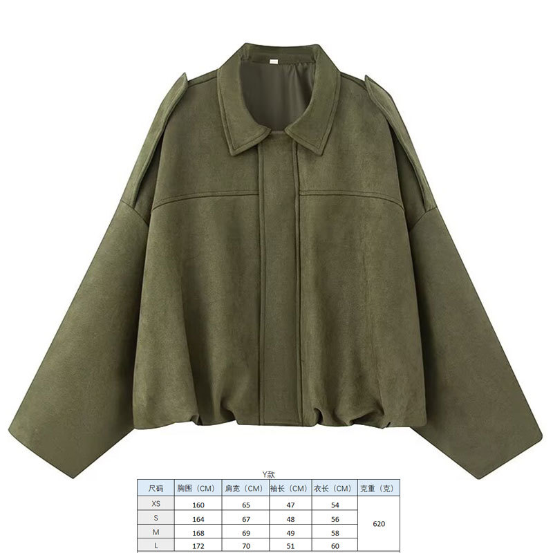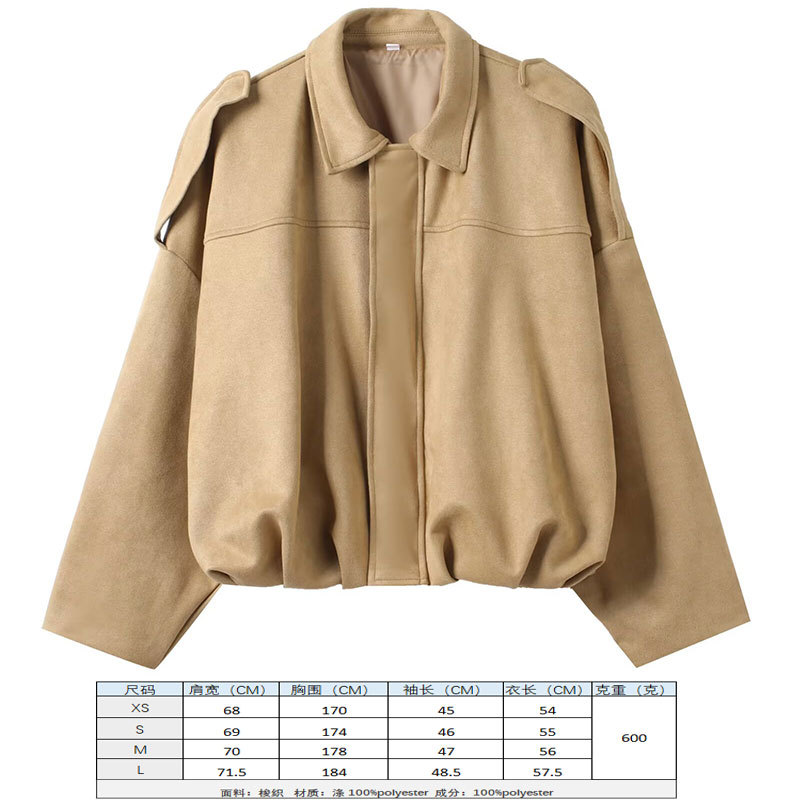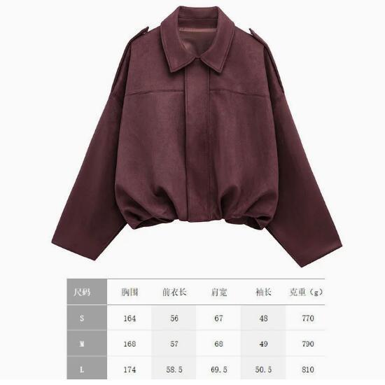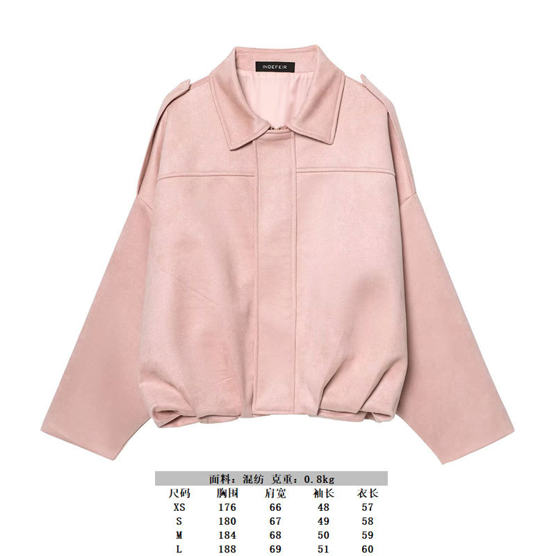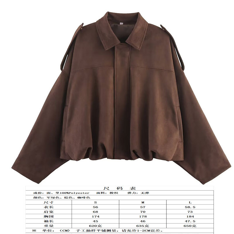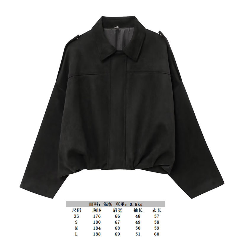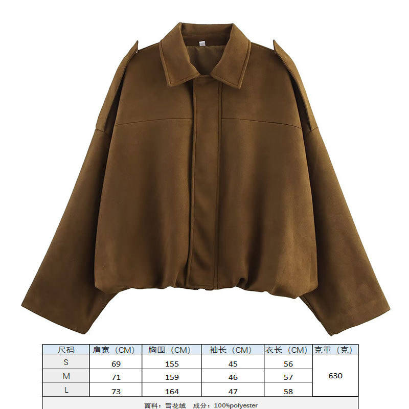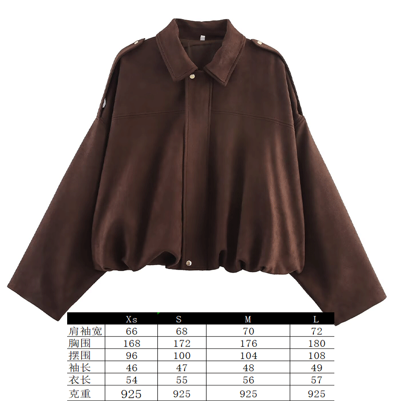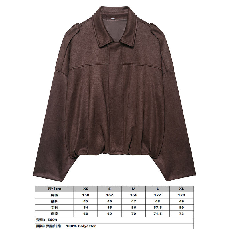 2025 봄 유럽과 미국의 패션 폭격기 재킷 박쥐 소매 지퍼 느슨한 스웨이드 질감 코트 여성 캐주얼 탑