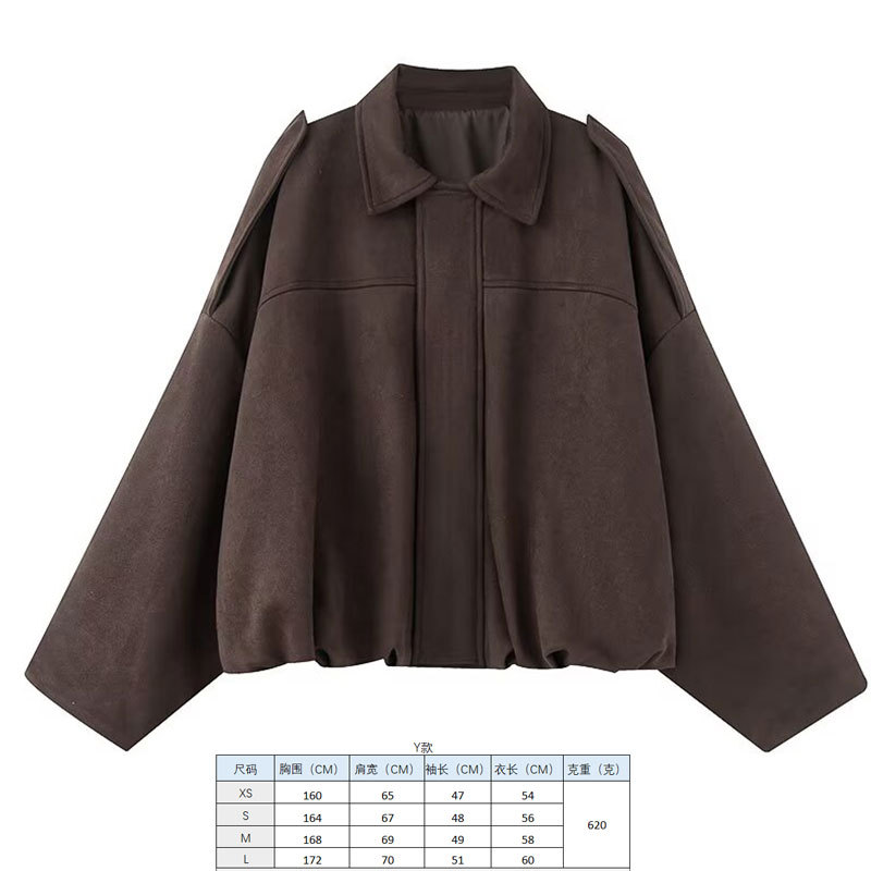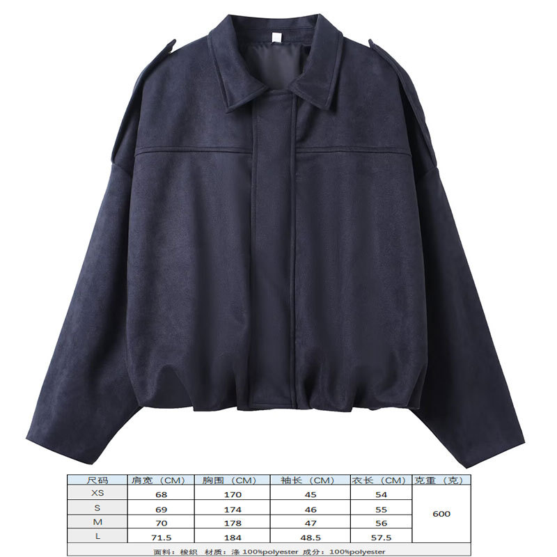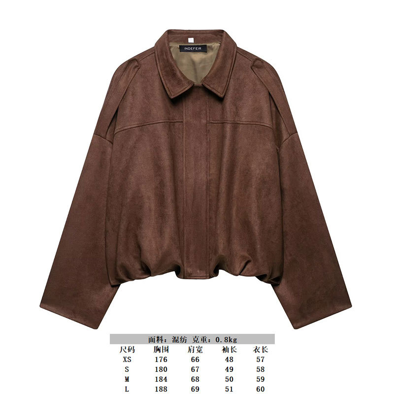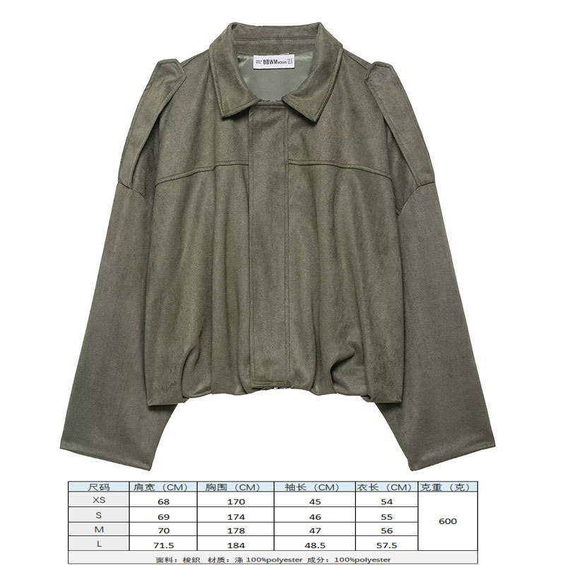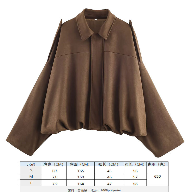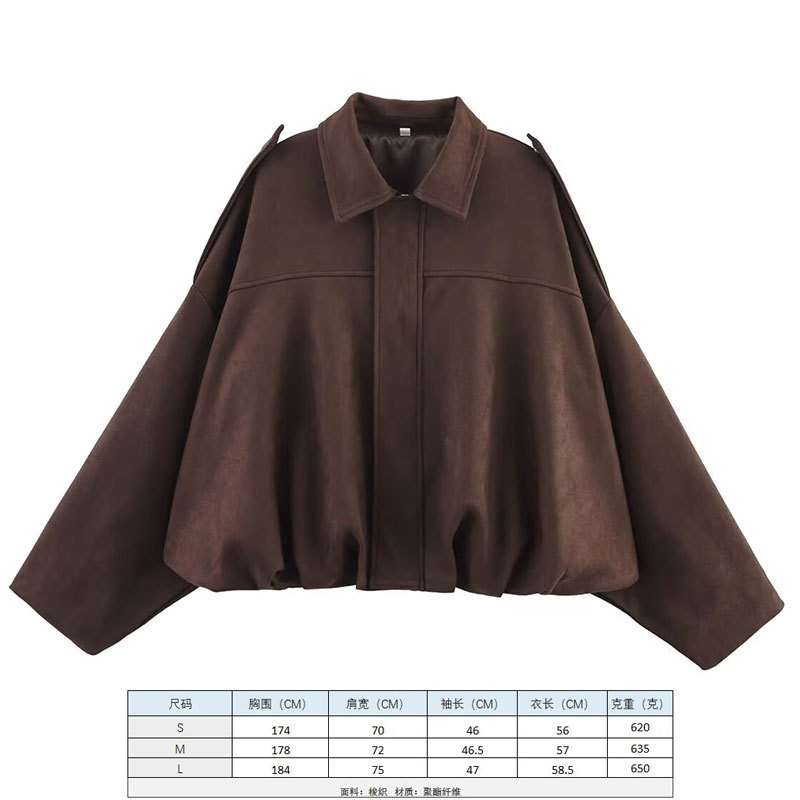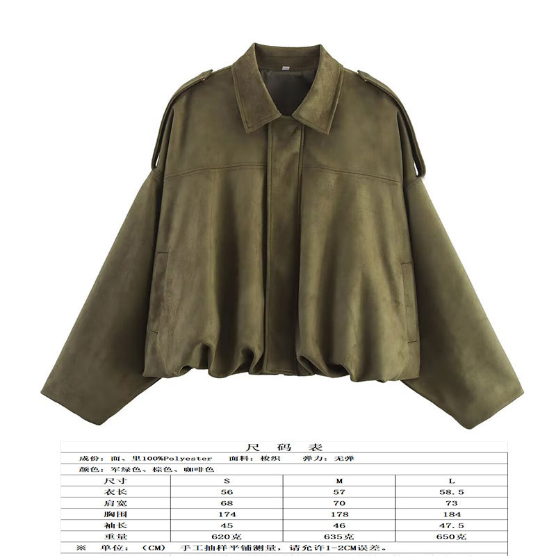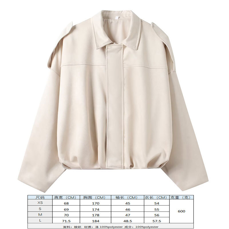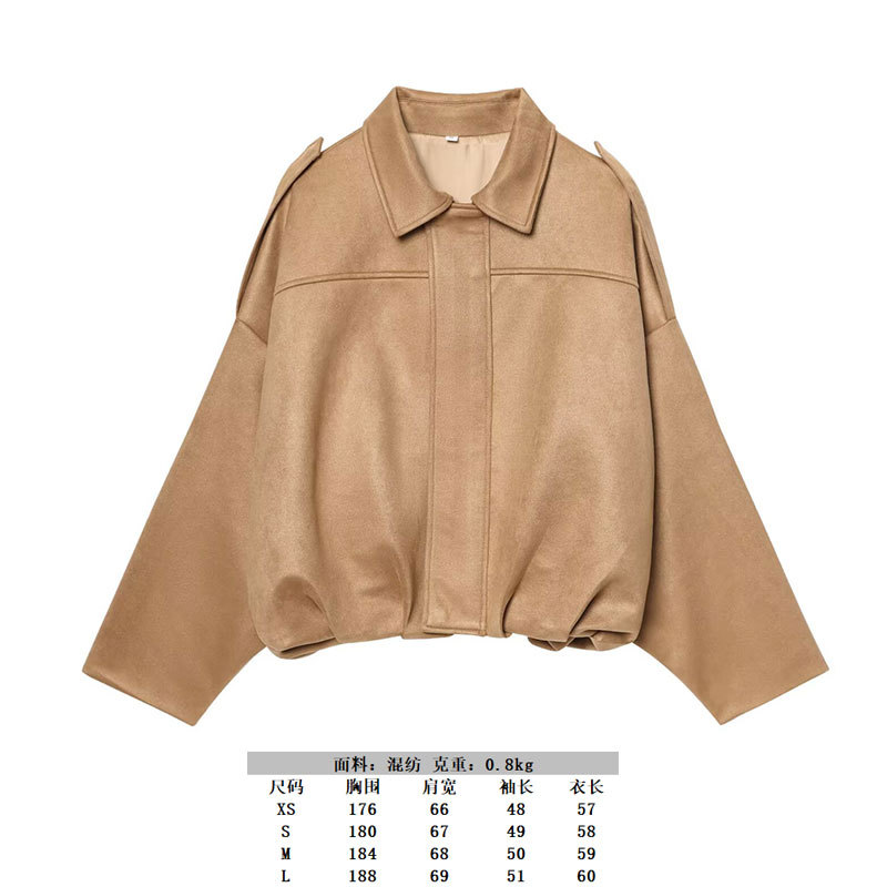 2025 봄 유럽과 미국의 패션 폭격기 재킷 박쥐 소매 지퍼 느슨한 스웨이드 질감 코트 여성 캐주얼 탑