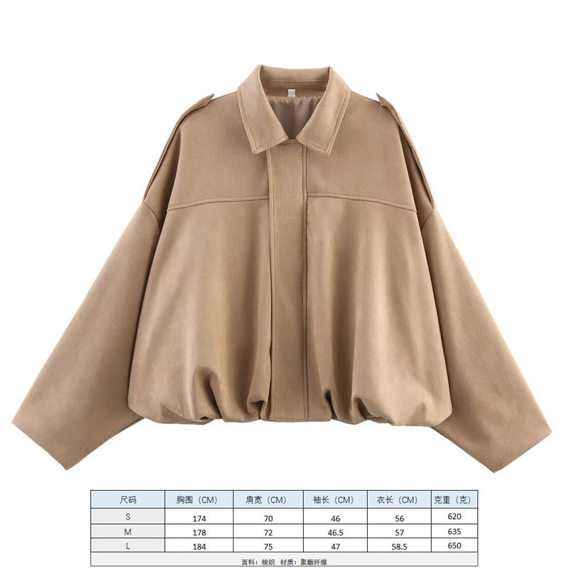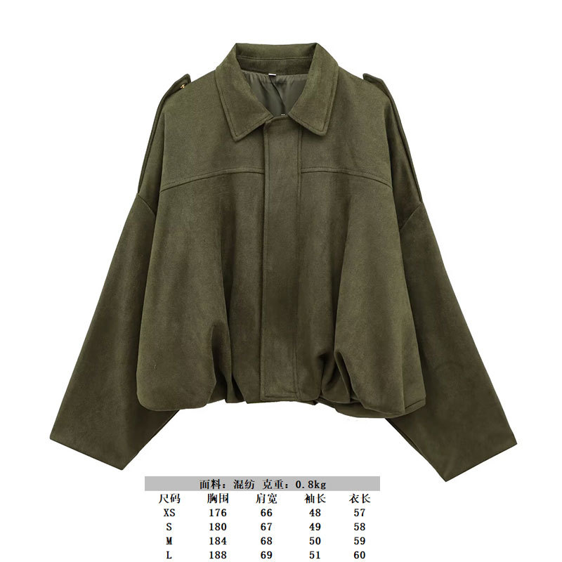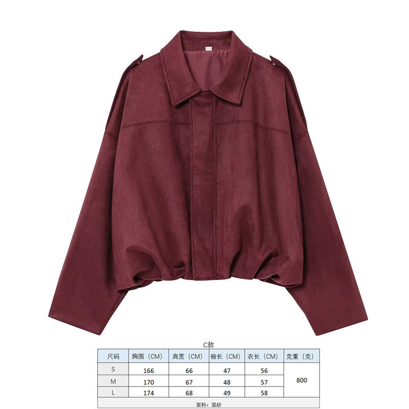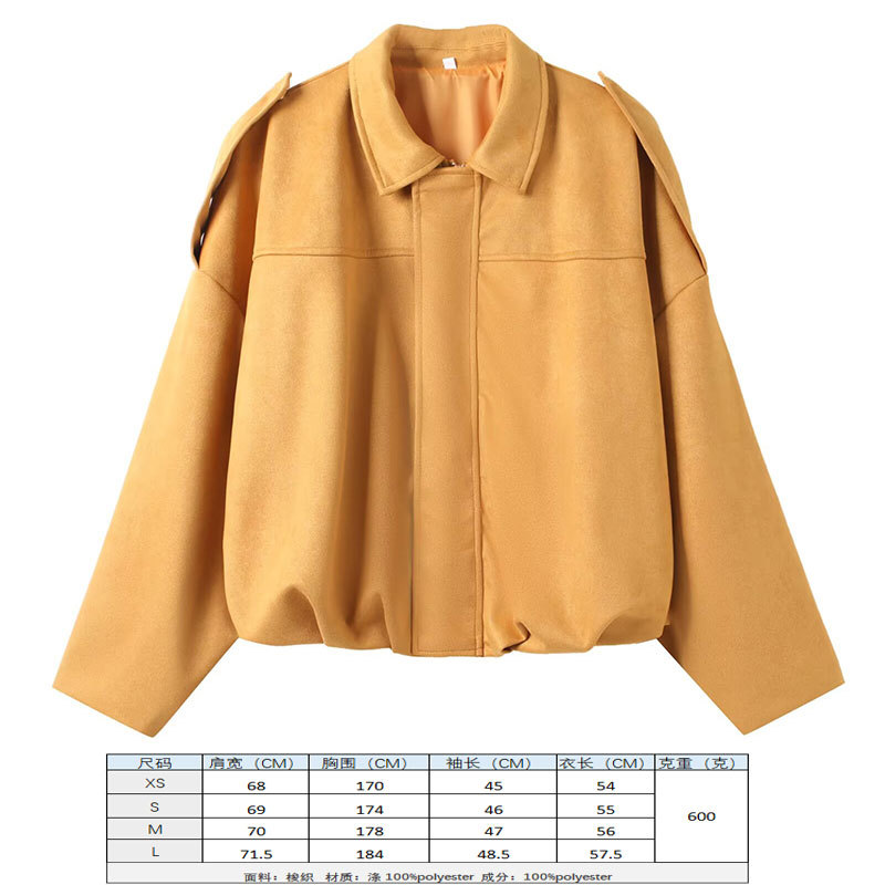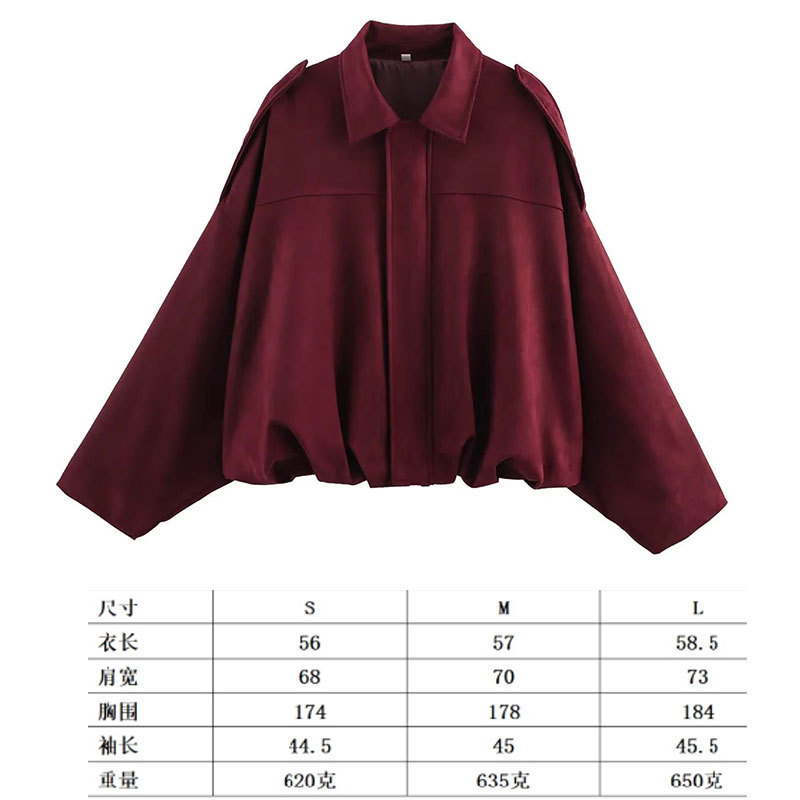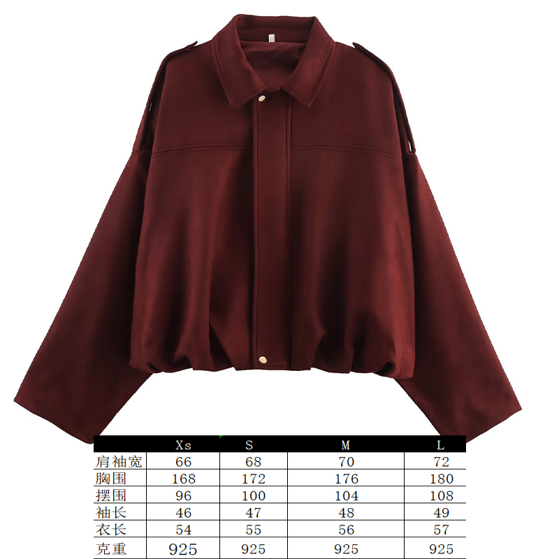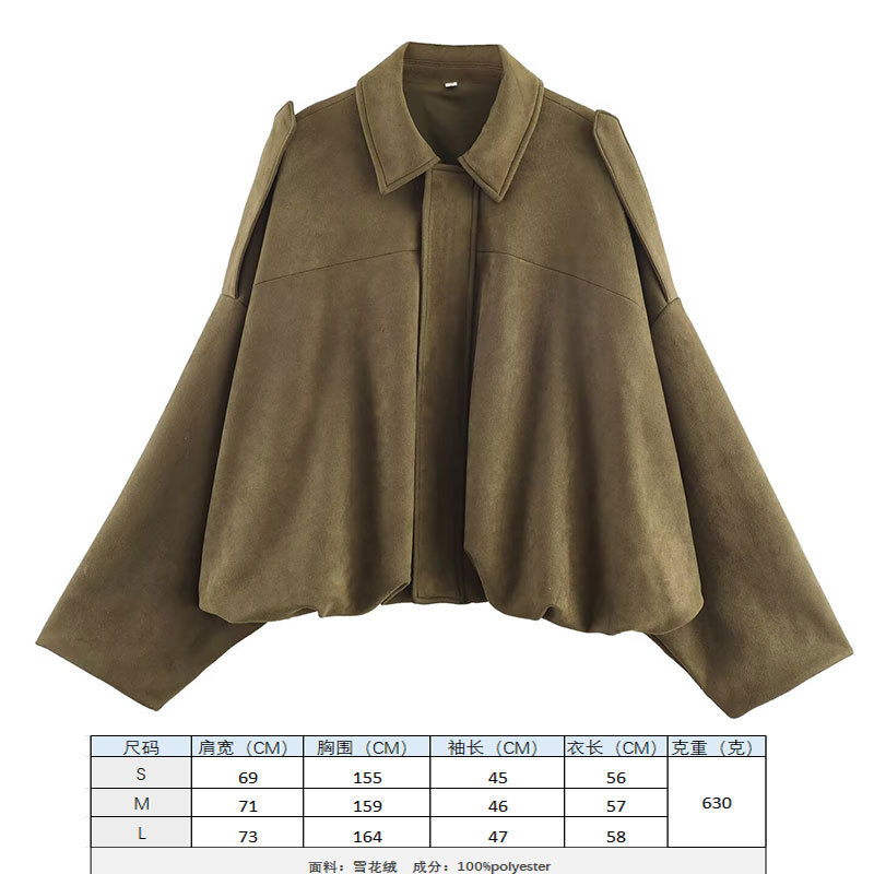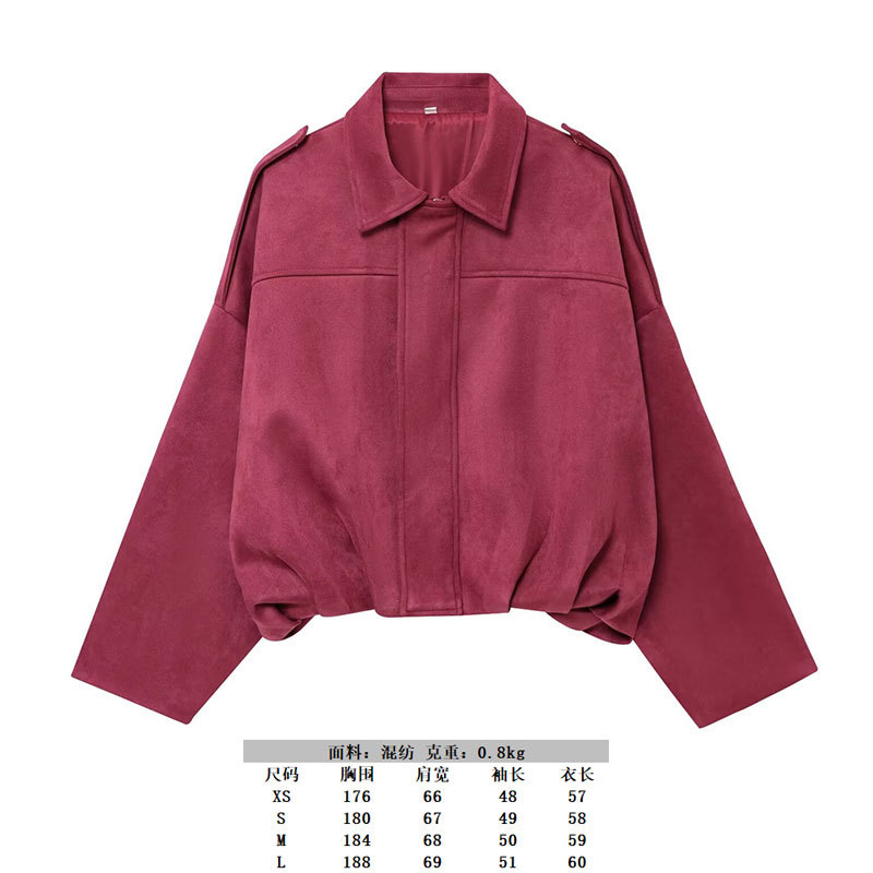 2025 봄 유럽과 미국의 패션 폭격기 재킷 박쥐 소매 지퍼 느슨한 스웨이드 질감 코트 여성 캐주얼 탑