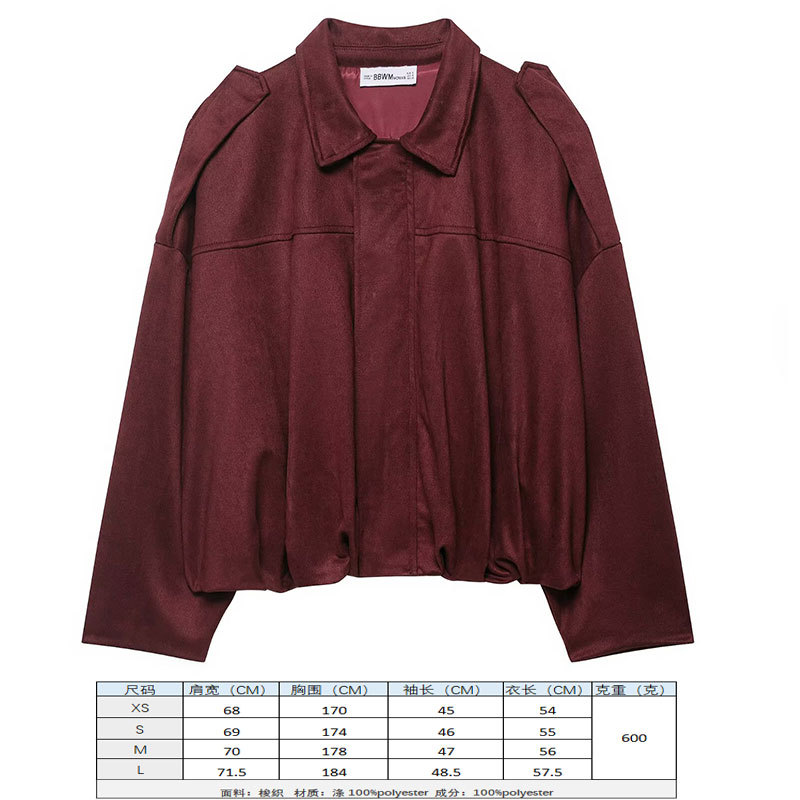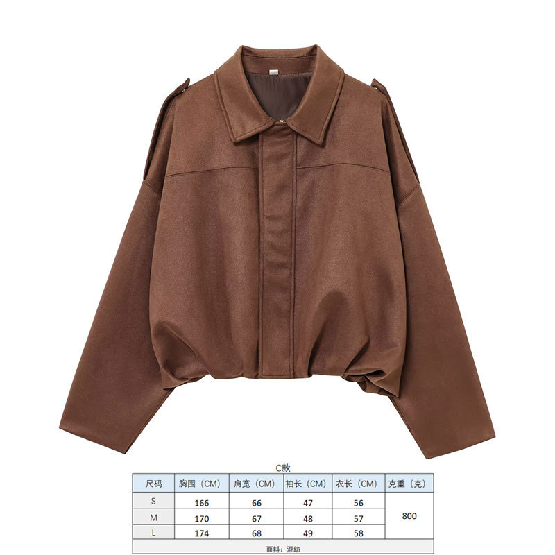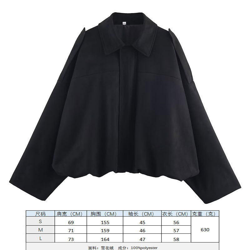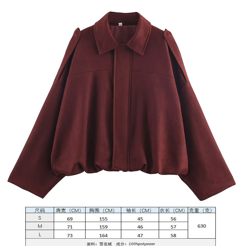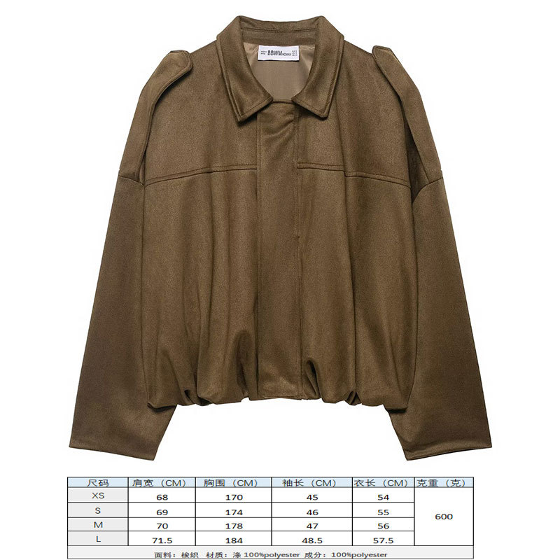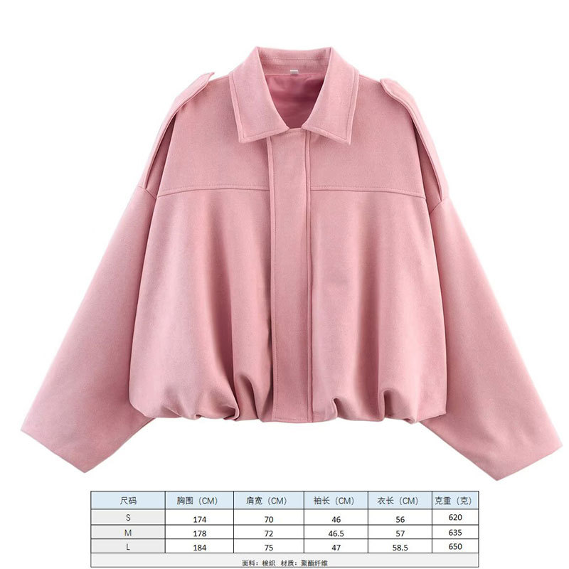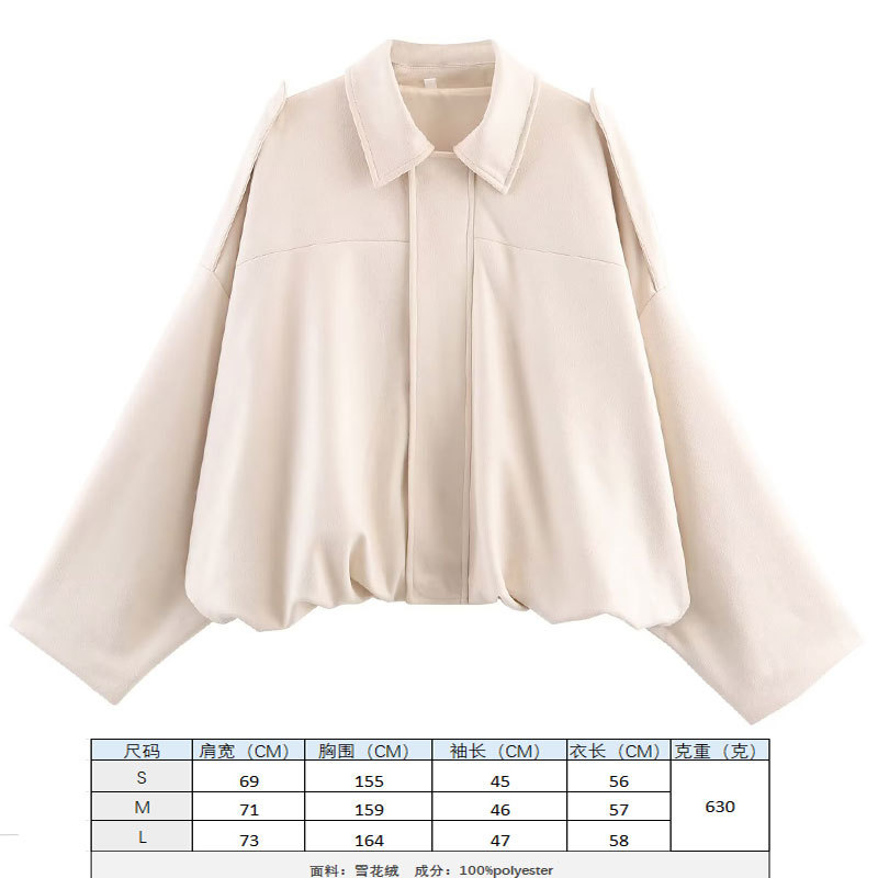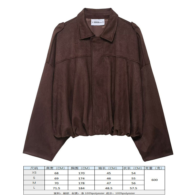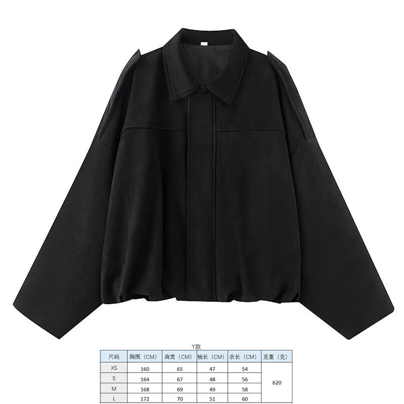 2025 봄 유럽과 미국의 패션 폭격기 재킷 박쥐 소매 지퍼 느슨한 스웨이드 질감 코트 여성 캐주얼 탑