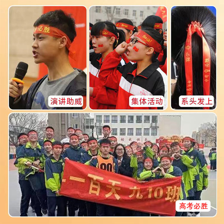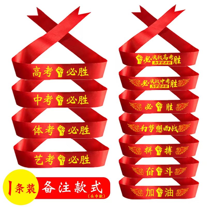 대학 입학 시험을 응원하고, 머리띠, 머리 스카프, 100 일 서약, 손목 밴드, 스포츠 회의, 결정적인 전투, 머리띠 우승, 고등학교 입학 시험, 빨간 리본