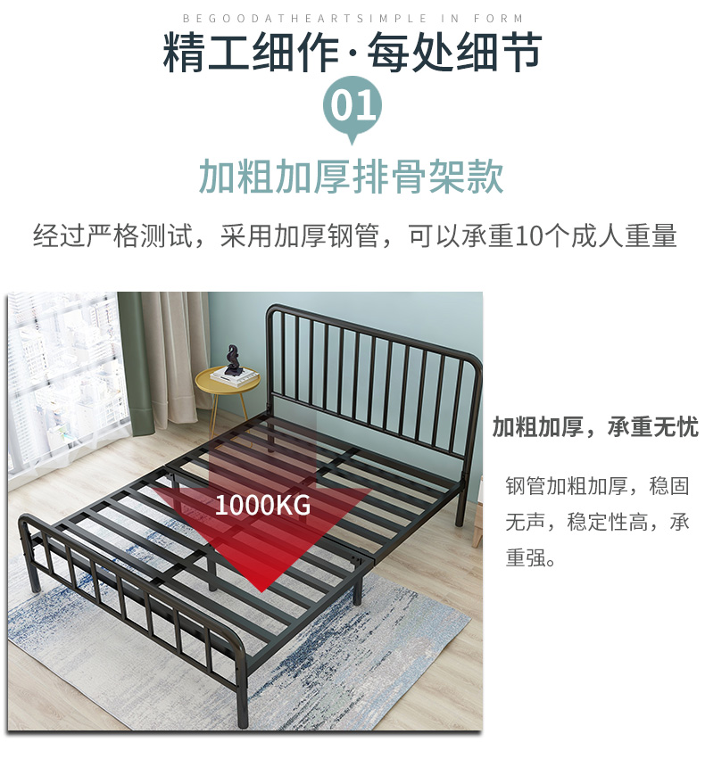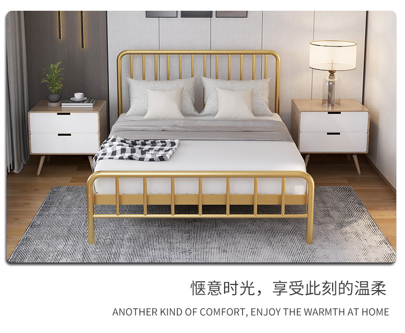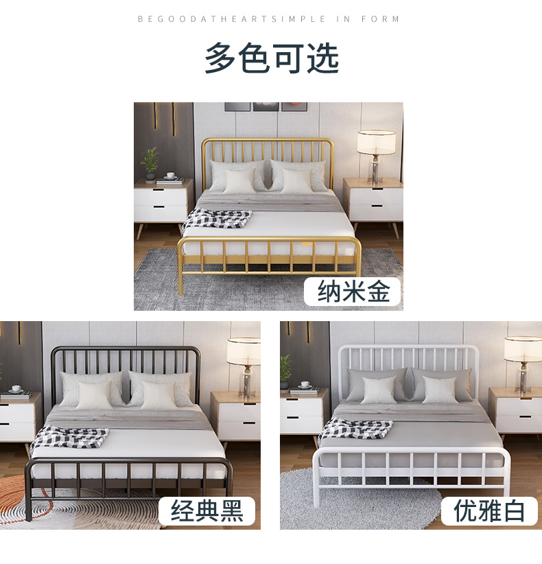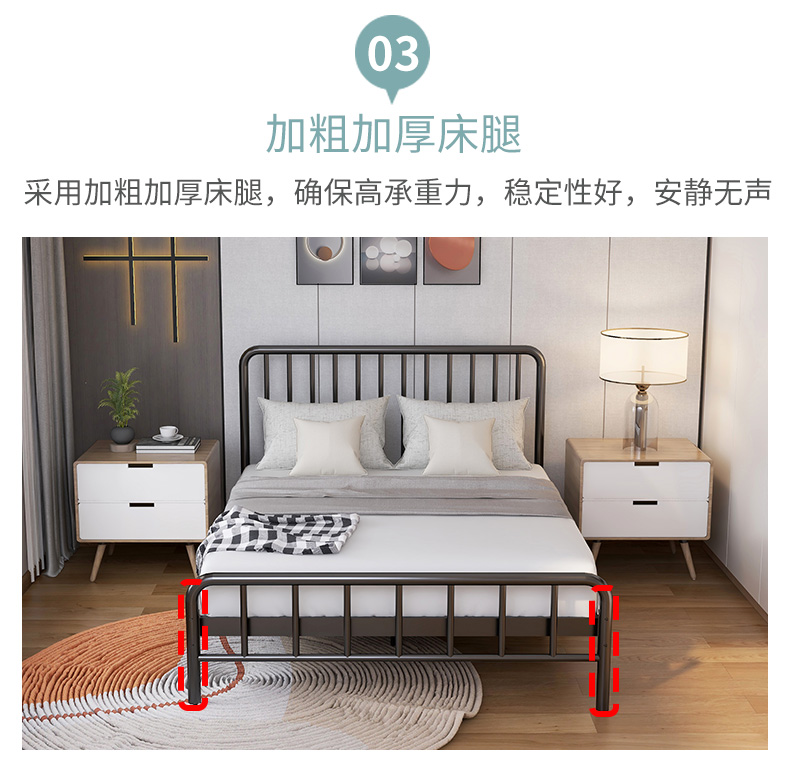 아이언 프레임 노르딕 철공 침대 아이언 침대 더블 침대 현대 단순 두꺼운 쌀 비정상 소리 강화 싱글 침실