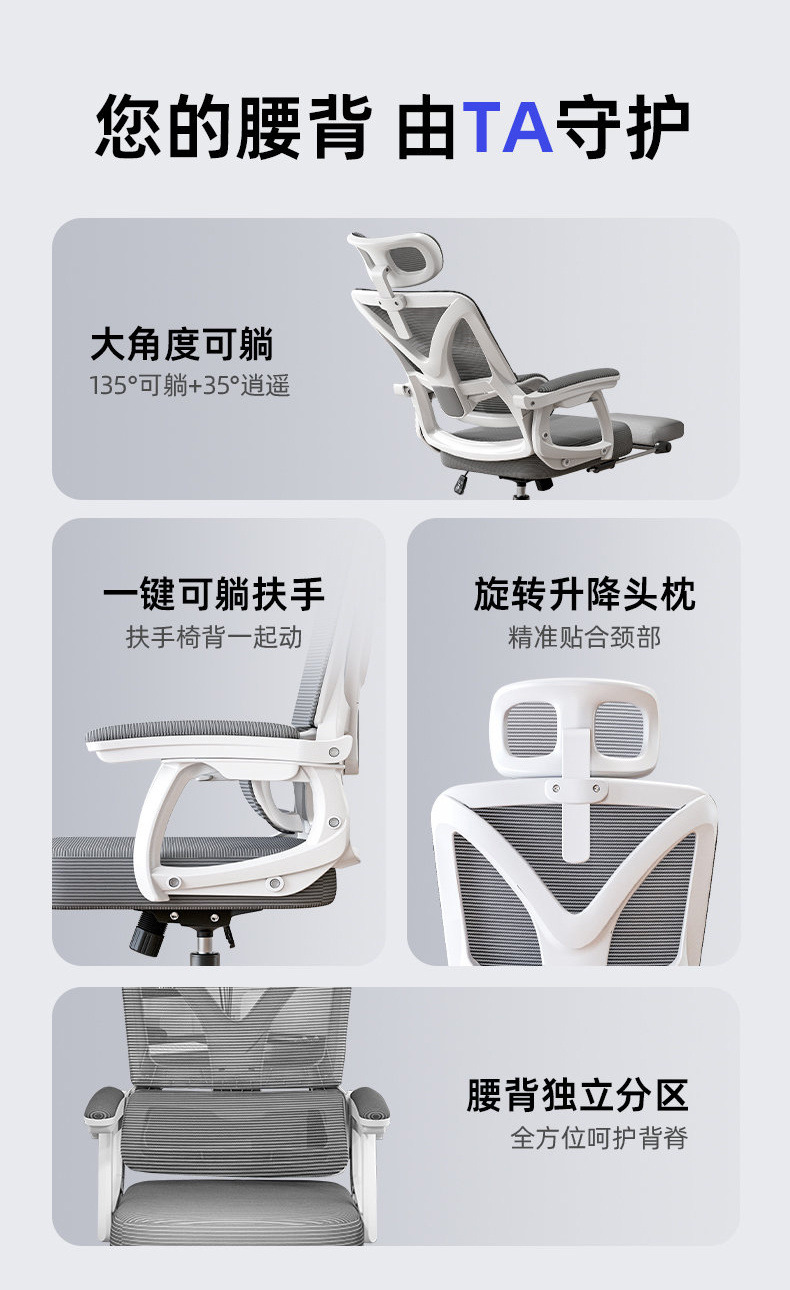 • [리클라이닝/서스펜션 요추받침/3세대] 화이트 그레이-1급 에어로드